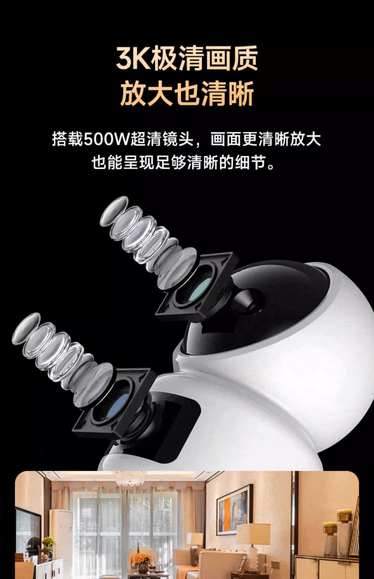 Camera Surveillance for Home Use, Remote 360-Degree No-Blind-Spot Indoor and Outdoor 4K High-Definition Panoramic Smart Monitor g