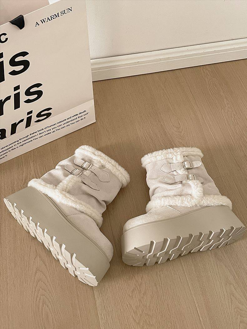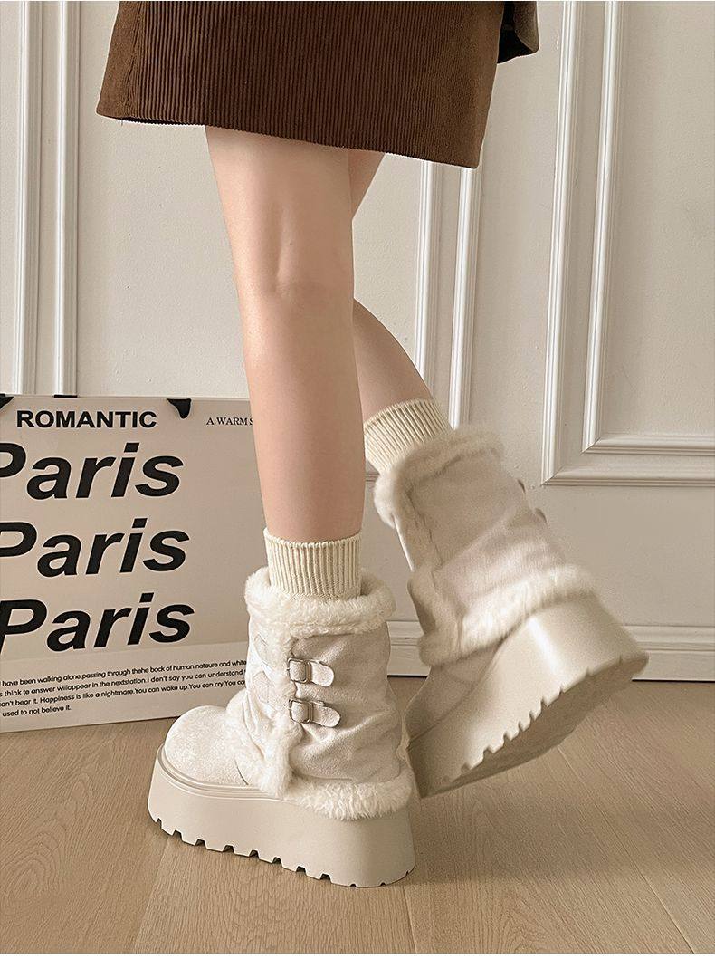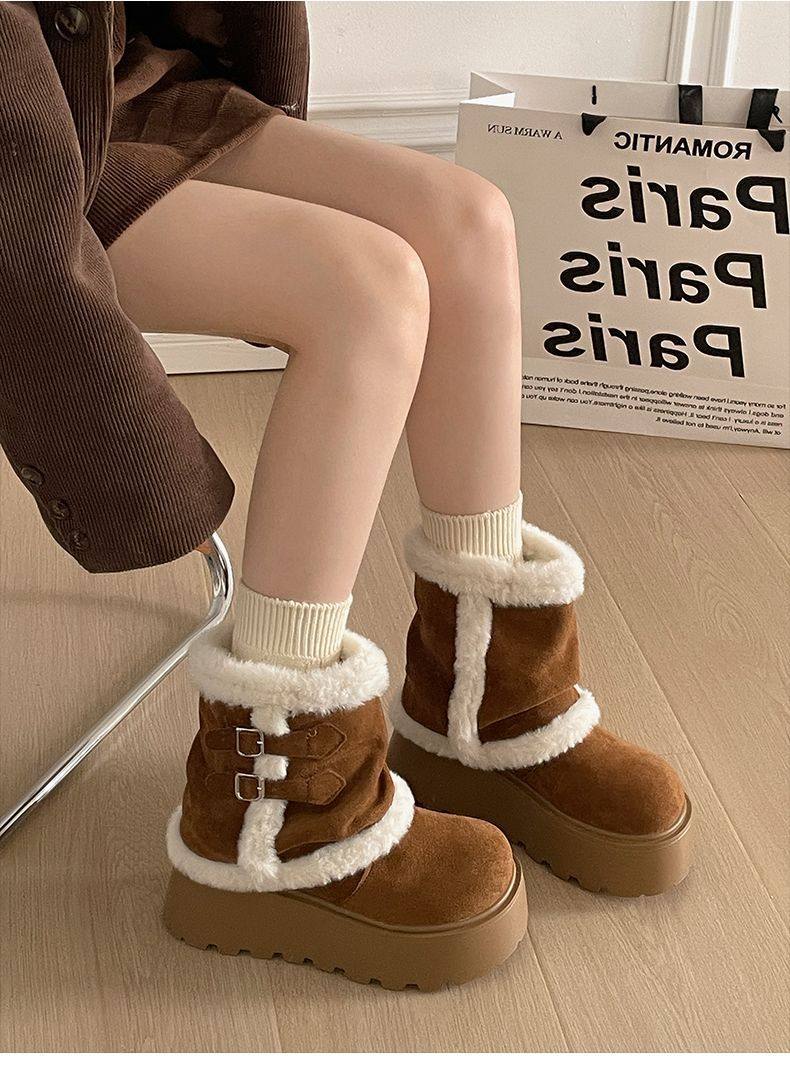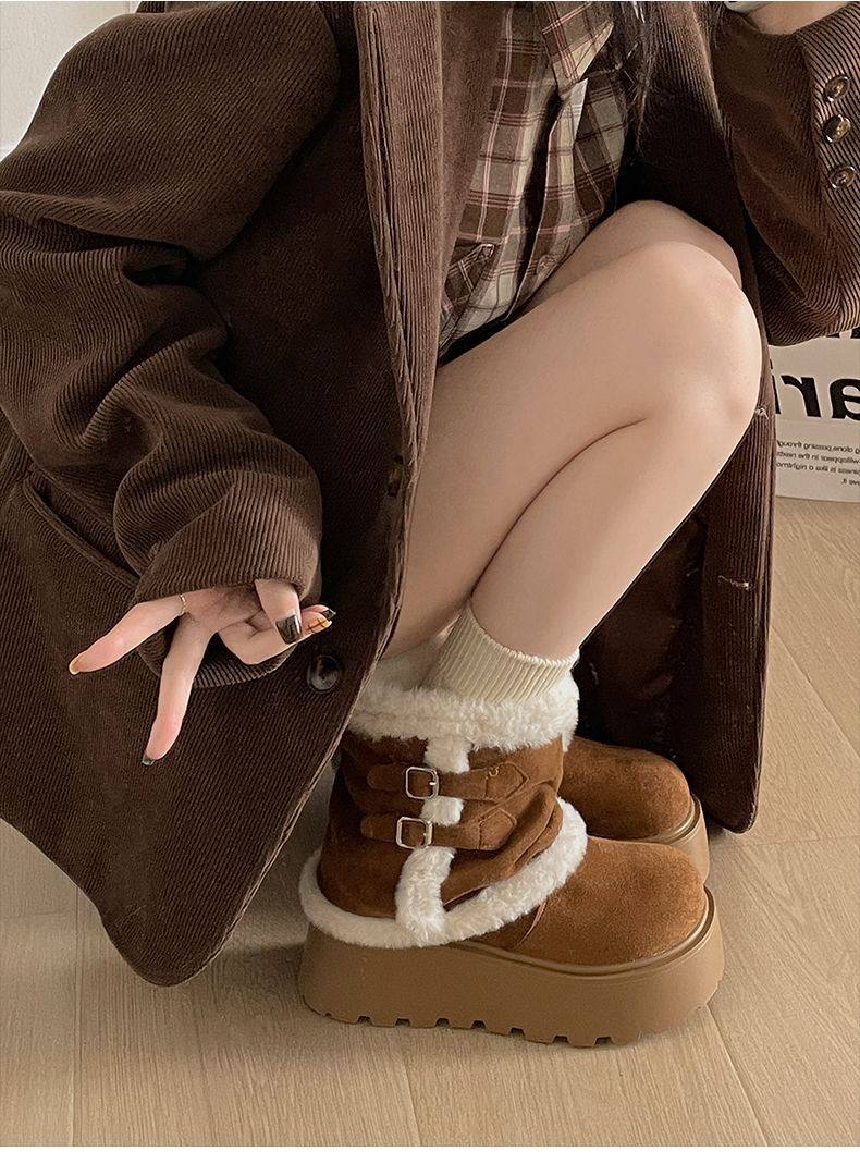 Very Stylish Thick-Soled Height-Increasing Snow Boots for Women, Fleece-Lined Warm Short Boots, 2025 Autumn and Winter New Versatile Cotton Boots