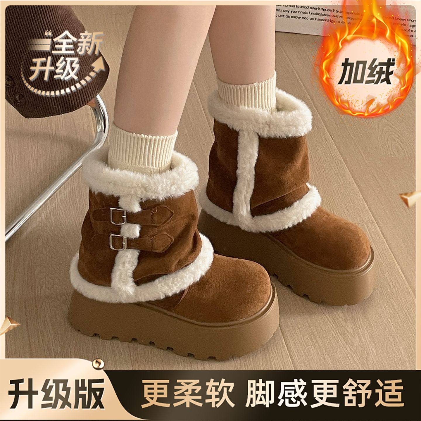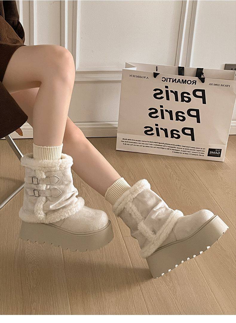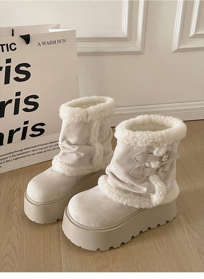 Very Stylish Thick-Soled Height-Increasing Snow Boots for Women, Fleece-Lined Warm Short Boots, 2025 Autumn and Winter New Versatile Cotton Boots
