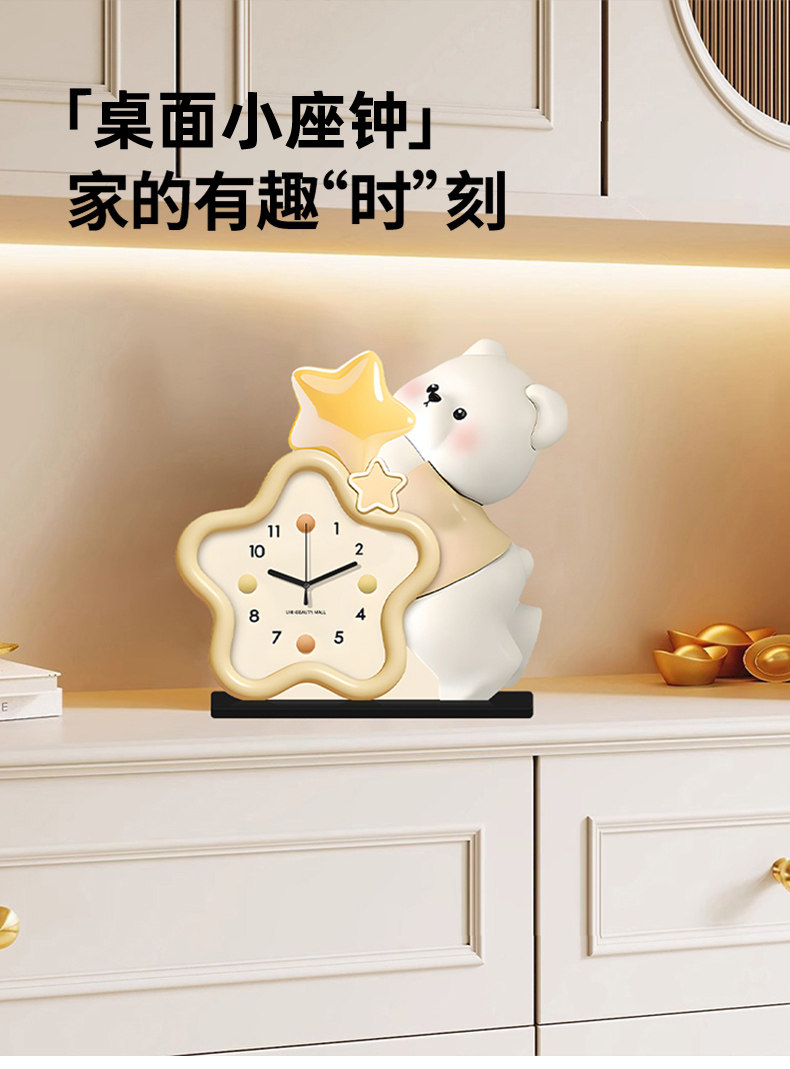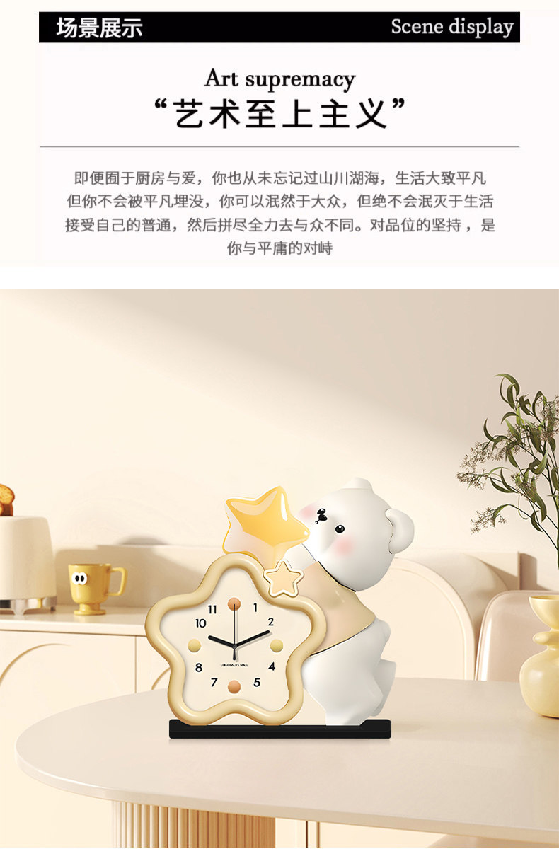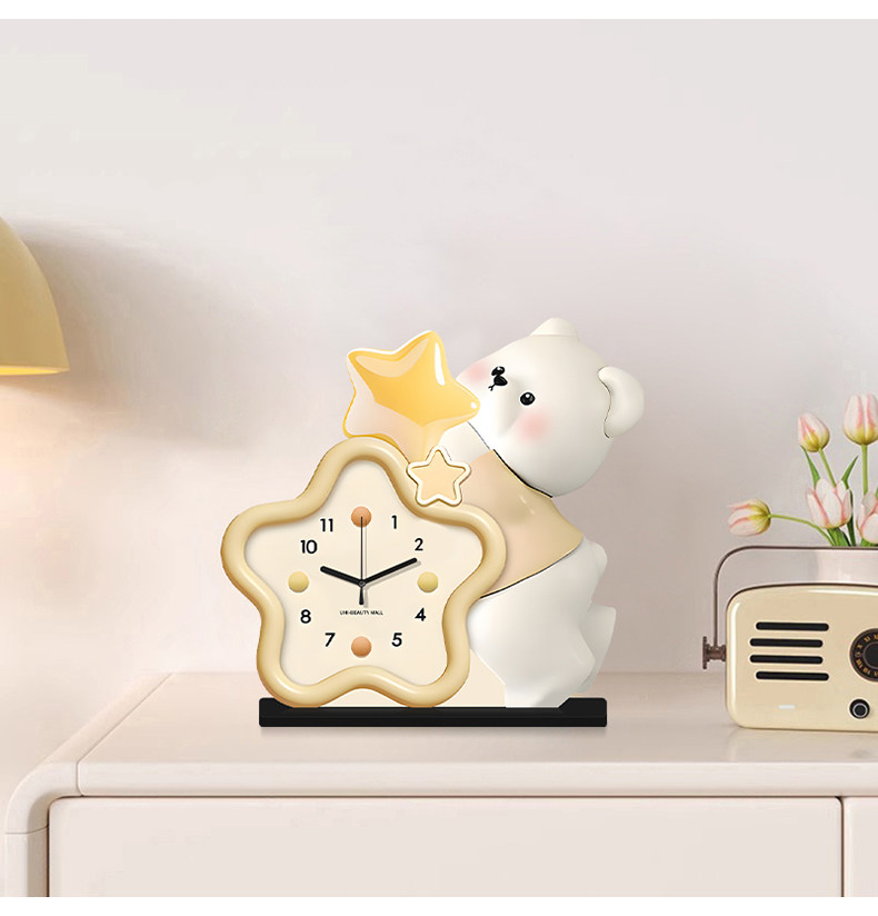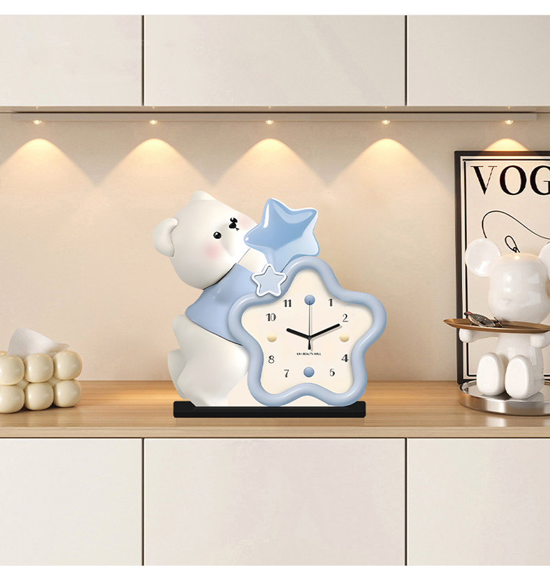 Cream-Style Living Room Decorative Clock, Modern Minimalist Dining Room Bear Art Clock, 2025 New Model, Punch-Free Table Clock