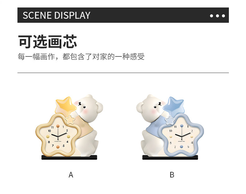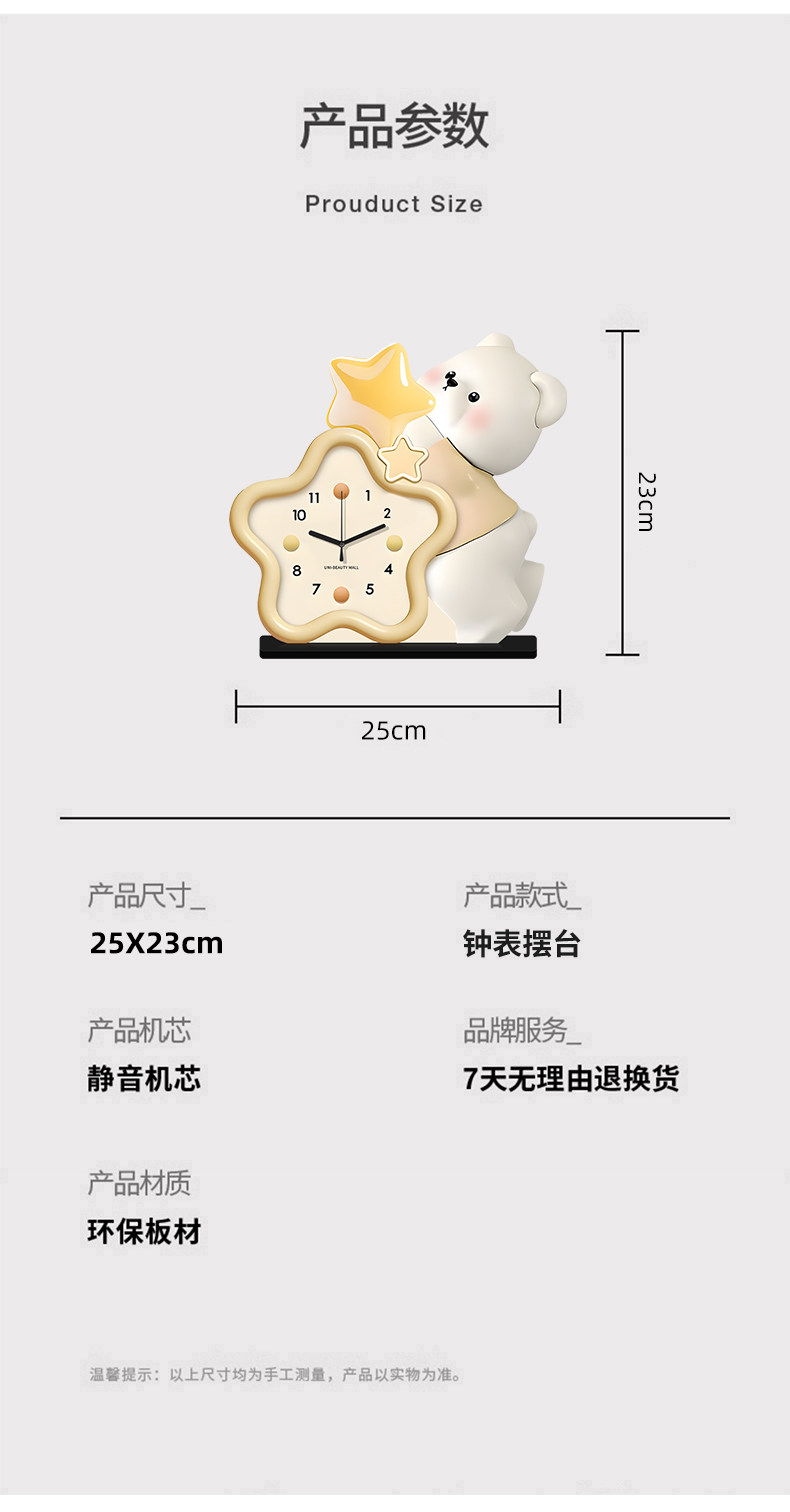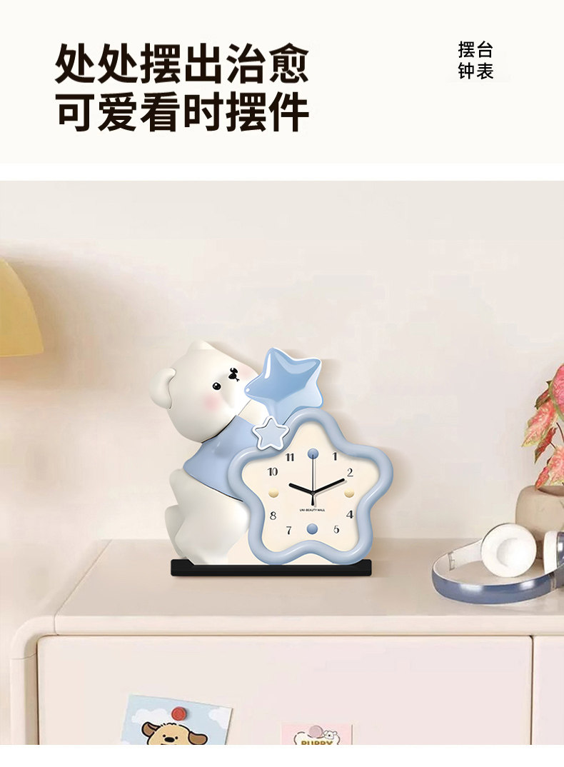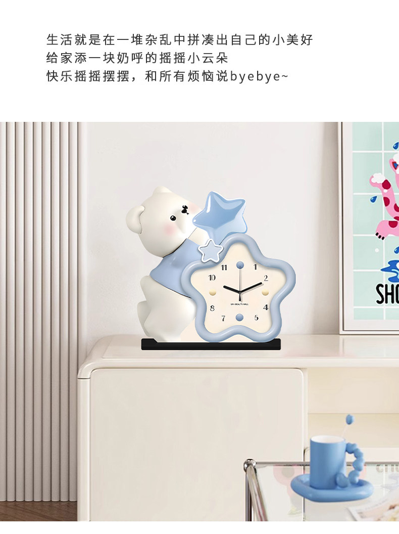 Cream-Style Living Room Decorative Clock, Modern Minimalist Dining Room Bear Art Clock, 2025 New Model, Punch-Free Table Clock