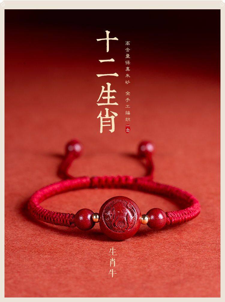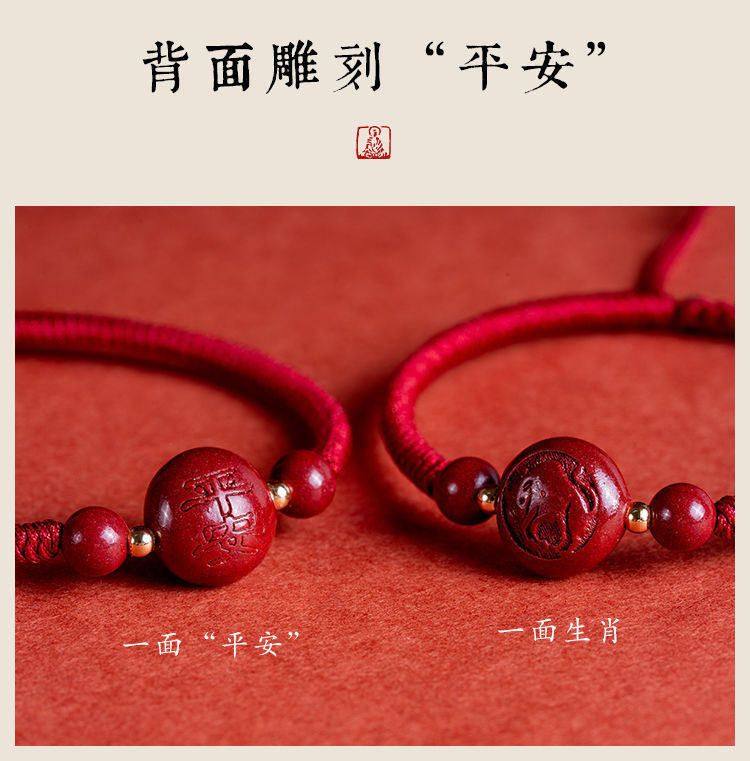 Popular 2025 Cinnabar Zodiac Red String Bracelet for Couples, Birth Year Lucky Bead, Buddhist Beads for Men and Women Born in the Year of the Tiger