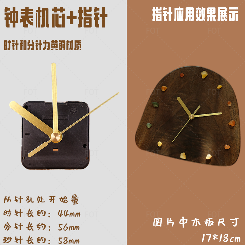 Wall Clock Mechanism with Short Copper Hands, Clock Movement with Hook, Vintage Style Black Walnut Wood Clock DIY Accessories, Multi-Axis Long