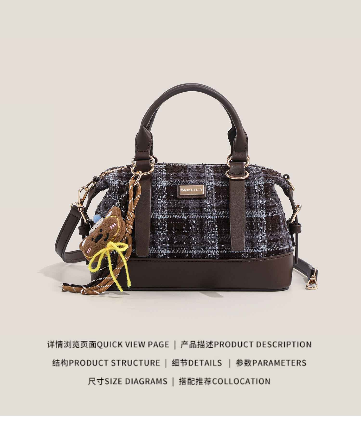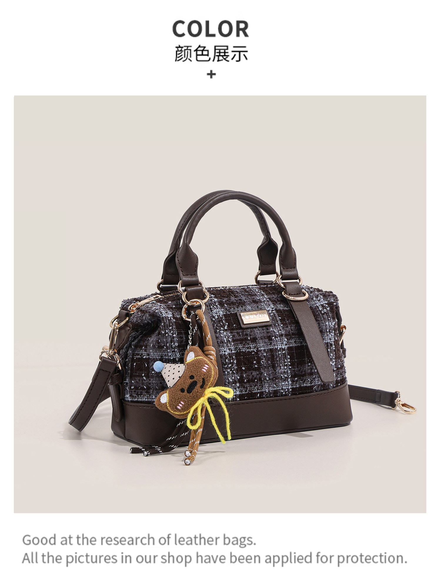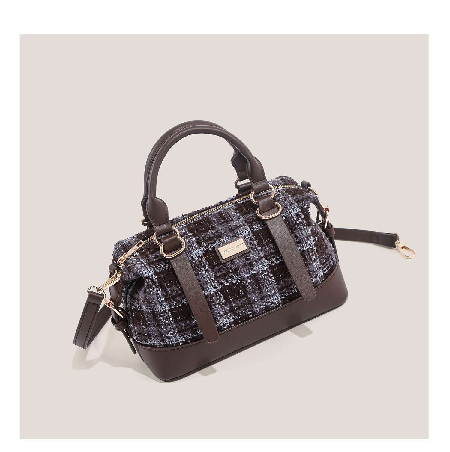Ctlnokegin Light Retro Jacquard Boston Bag Women's New Bowling Bag Hand-Held Crossbody Bag Pillow Bag