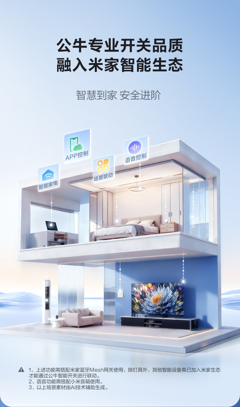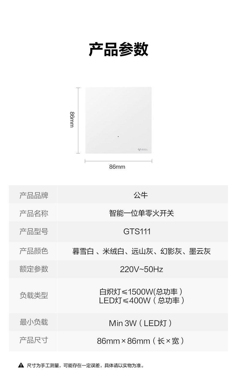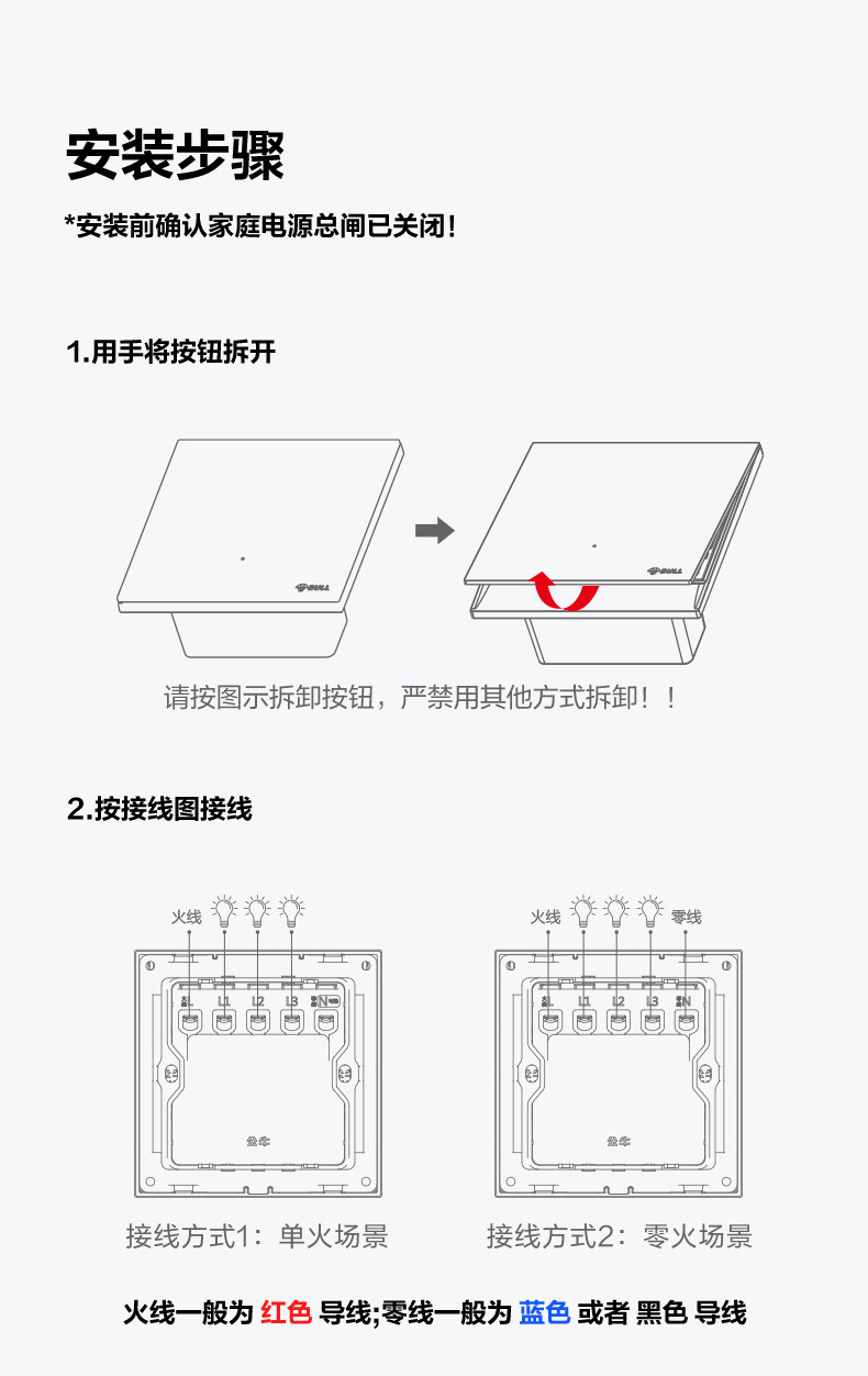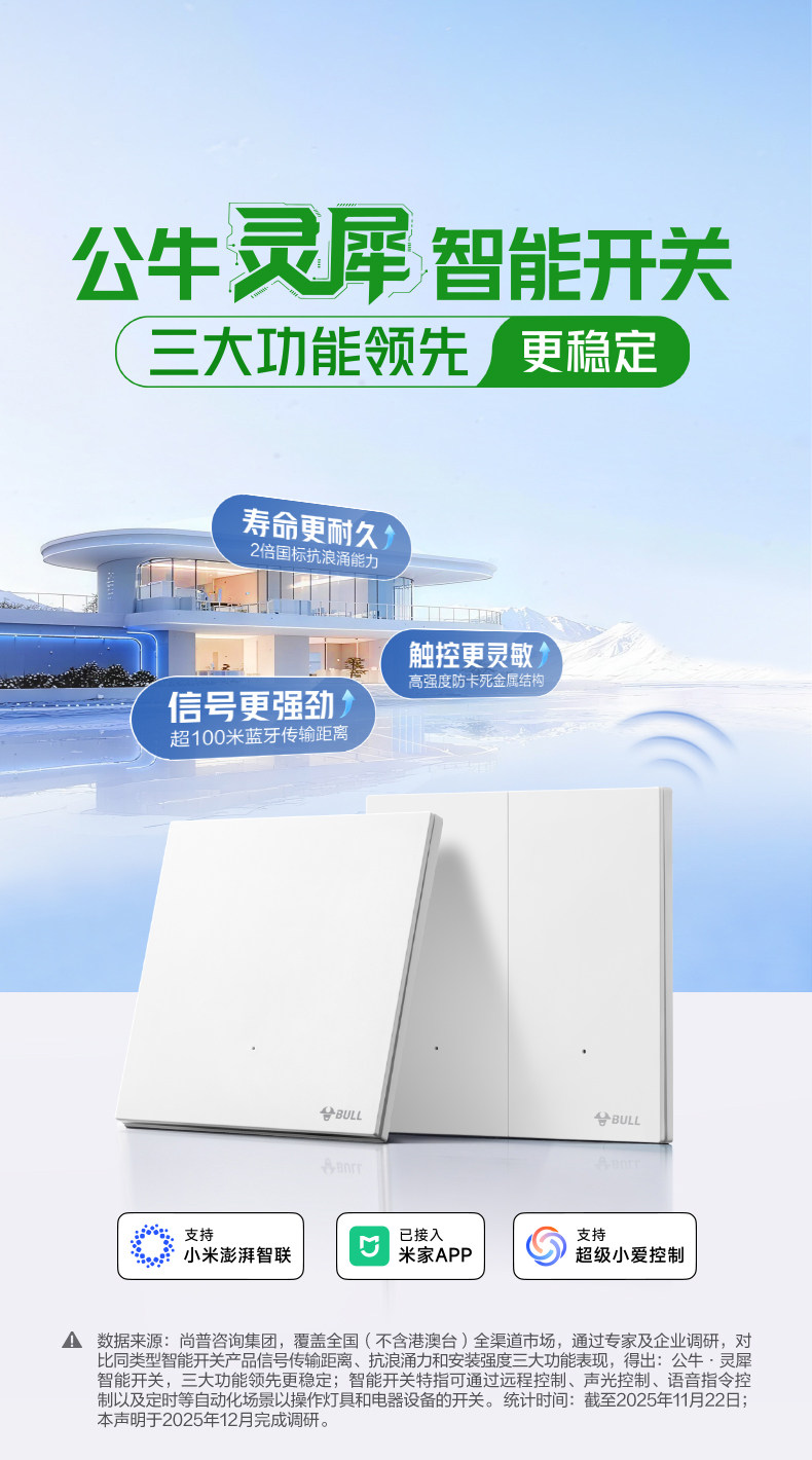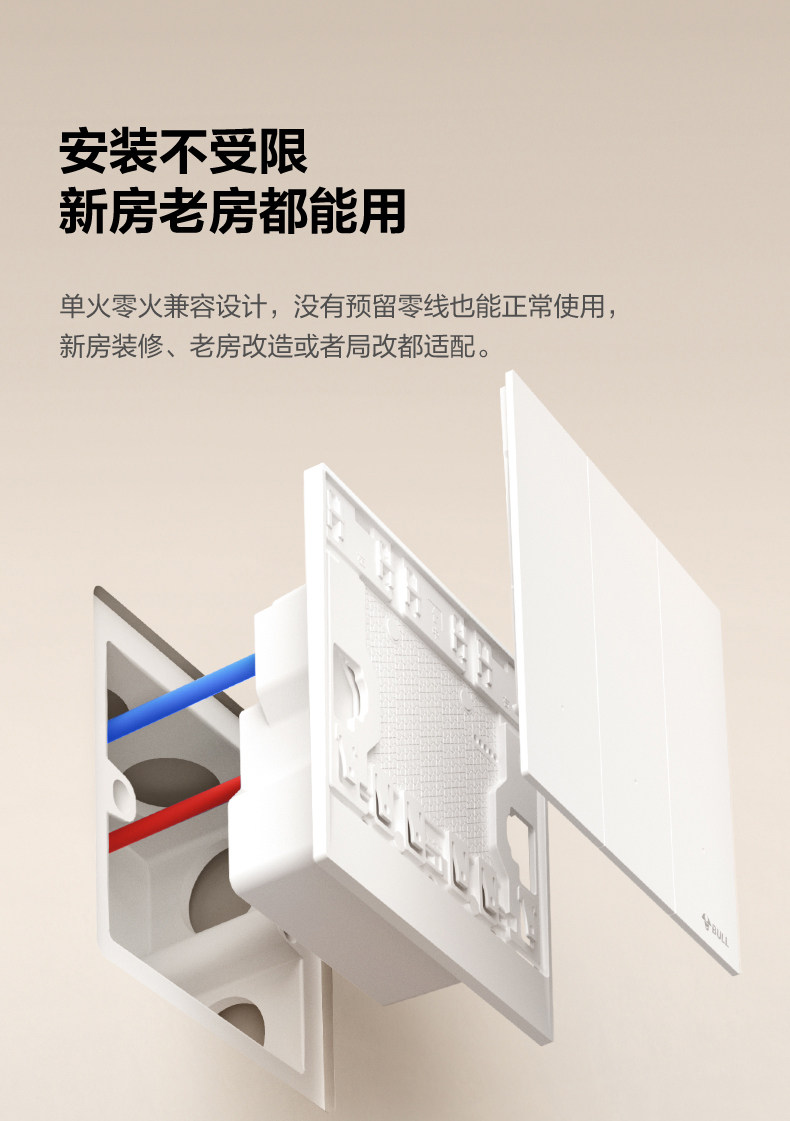 Bull Smart Switch Panel Xiaomi Home App Remote Control Wireless Smart Link Xiaoai Voice Control Single Live Wire Ultra-Thin