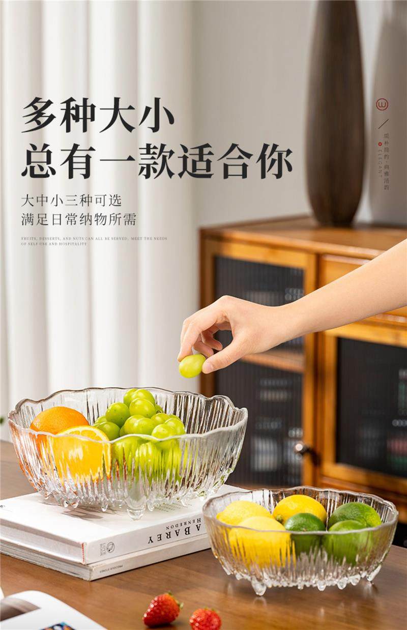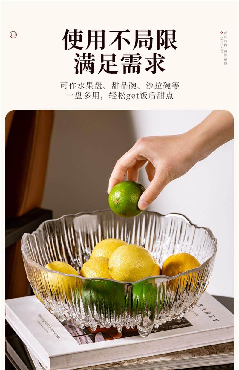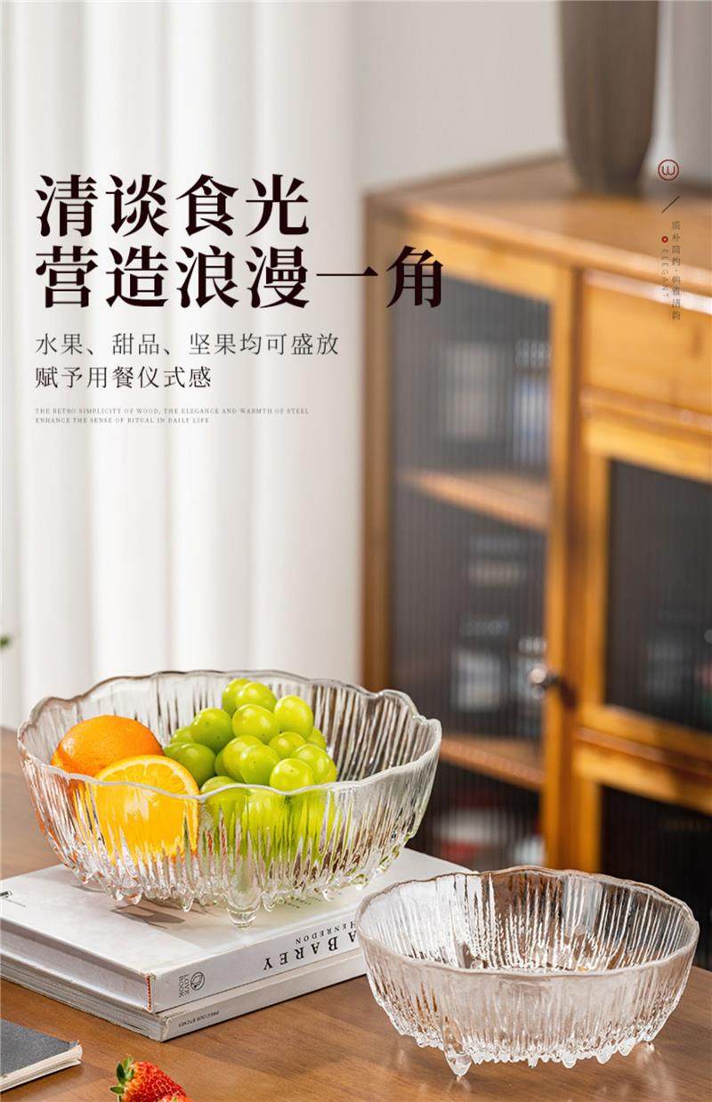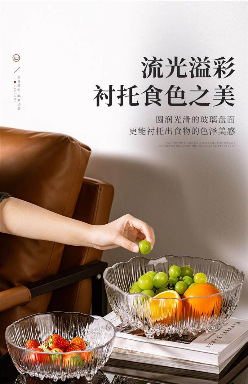 Light Luxury Glass Fruit Plate for Living Room Coffee Table, High-End Exquisite Home-Use High-Value Salad Bowl, Candy and Snack Display Basket