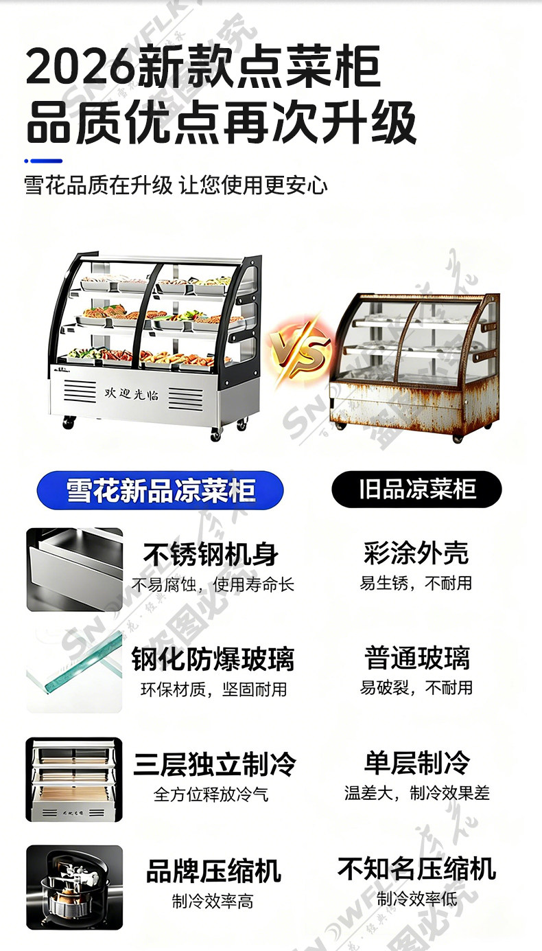 Snowflake Three-Layer Deli Cold Food Display Cabinet, Skewered Braised Food Refrigerated Fresh-Keeping Refrigerator, Duck Neck Food Barbecue Ordering Cabinet