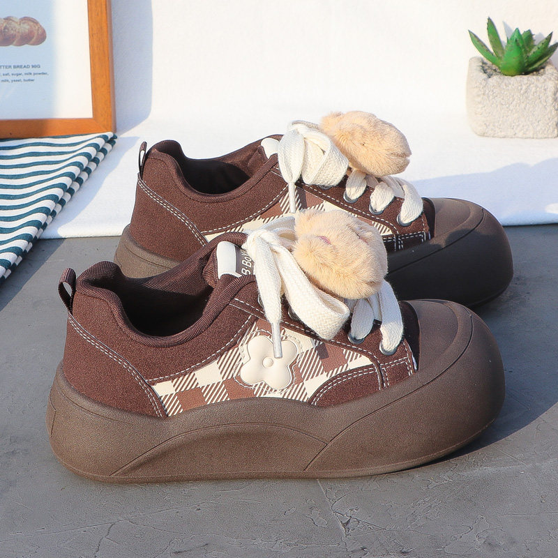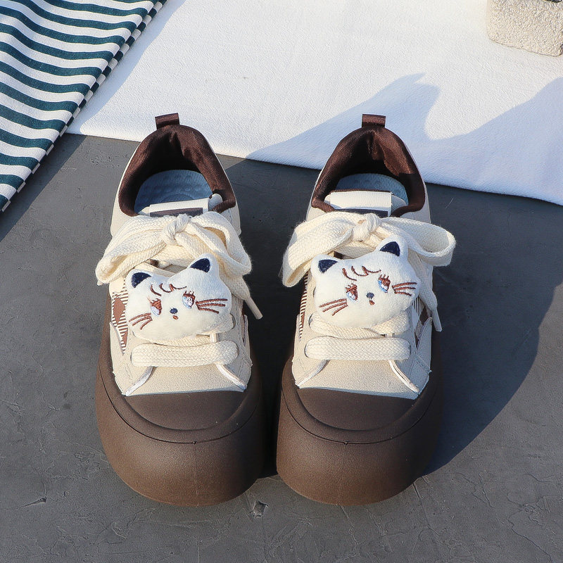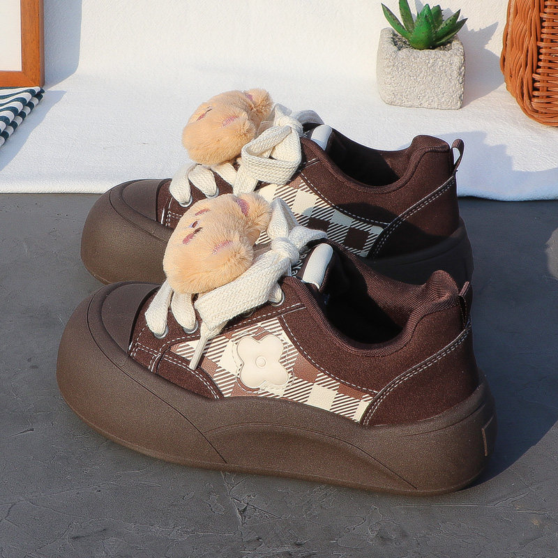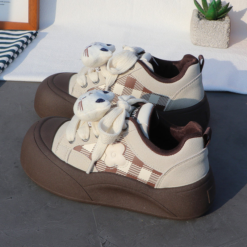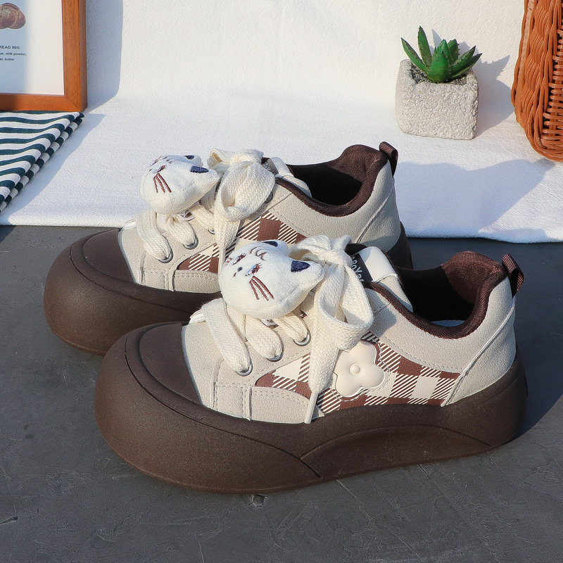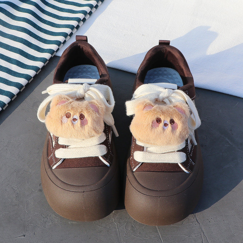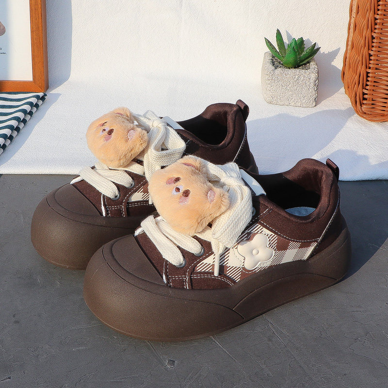 2026 Spring New Style Cute and Quirky Big-Toe Thick-Soled Cartoon Sneakers for Women, Fleece-Lined Casual Shoes for Students