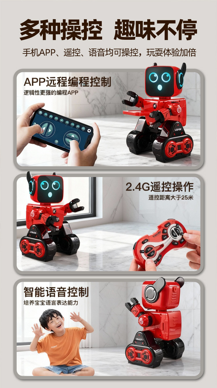 | Color Classification | ăClassic Remote Control VersionăRed - Touch Interaction + Programming + Singing & Storytelling + Gesture Control + Lighting Effects,ăClassic Remote Control VersionăWhite - Touch Interaction + Programming + Singing & Storytelling + Gesture Control + Lighting Effects,ăUpgraded Voice-Activated Dialogue Version + Mobile AppăRed - Voice Control Sensing + Touch Interaction + Programming + Singing Stories + Gesture Control + Lighting Effects,ăUpgraded Voice-Activated Dialogue Version + Mobile AppăWhite - Voice Control Sensing + Touch Interaction + Programming + Singing Stories + Gesture Control + Lighting Effects,ăUpgraded Voice-Activated Dialogue Edition + Mobile AppăPink - Voice Control Sensing + Touch Interaction + Programming + Singing Stories + Gesture Control + Lighting Effects,ăBasic Remote Control VersionăFollow Light Driving + Carrying Items + Cool Sound Effects + Dazzling Light Effects |