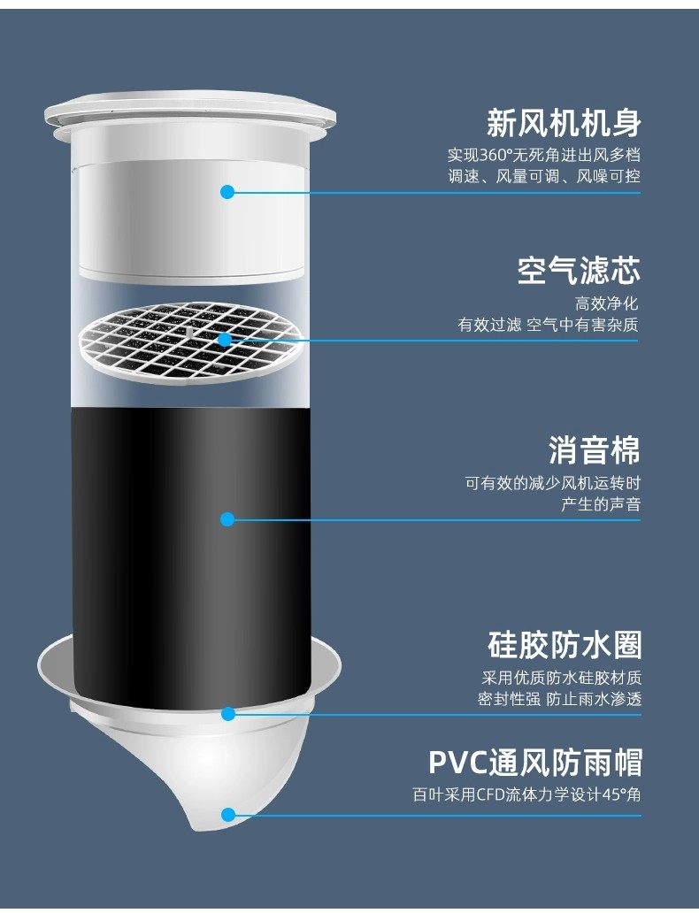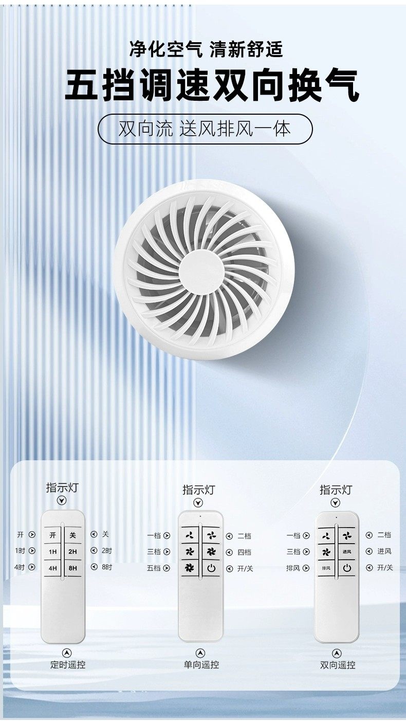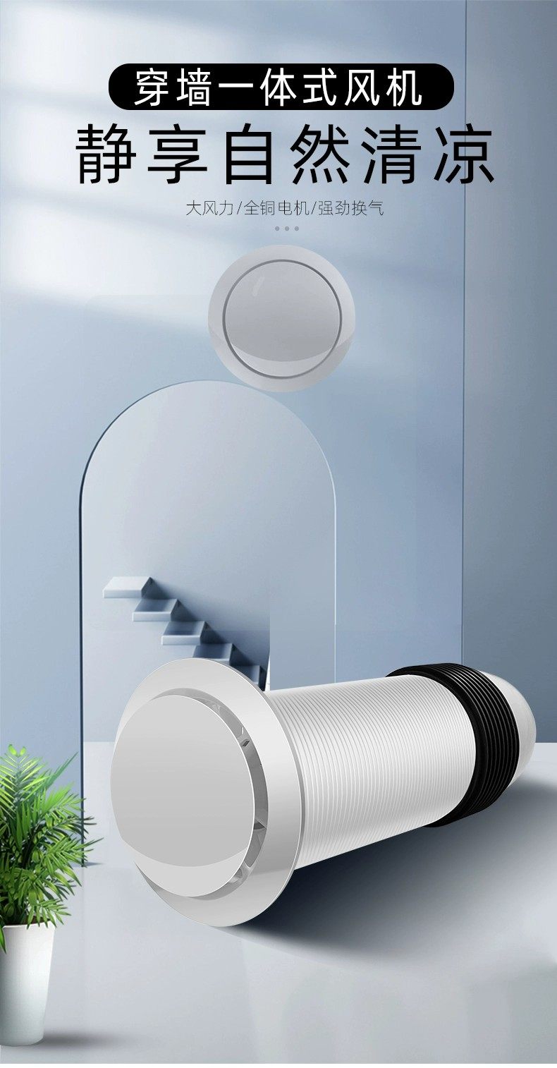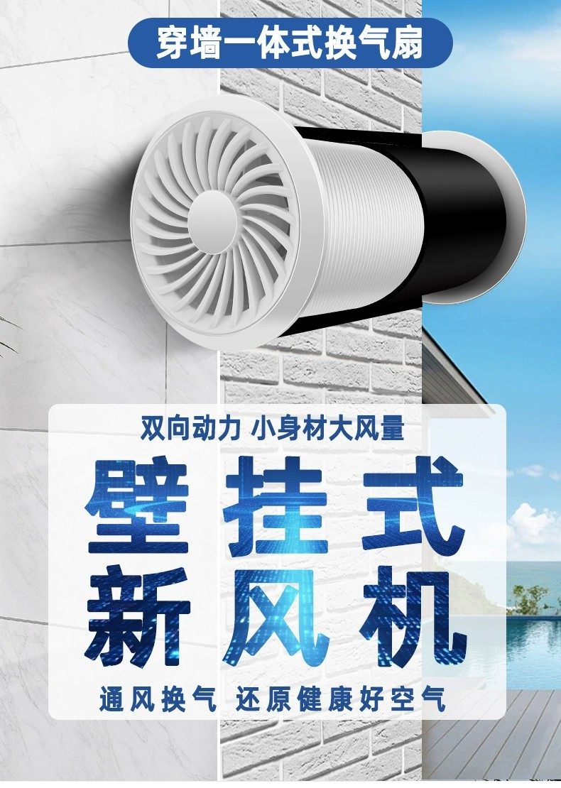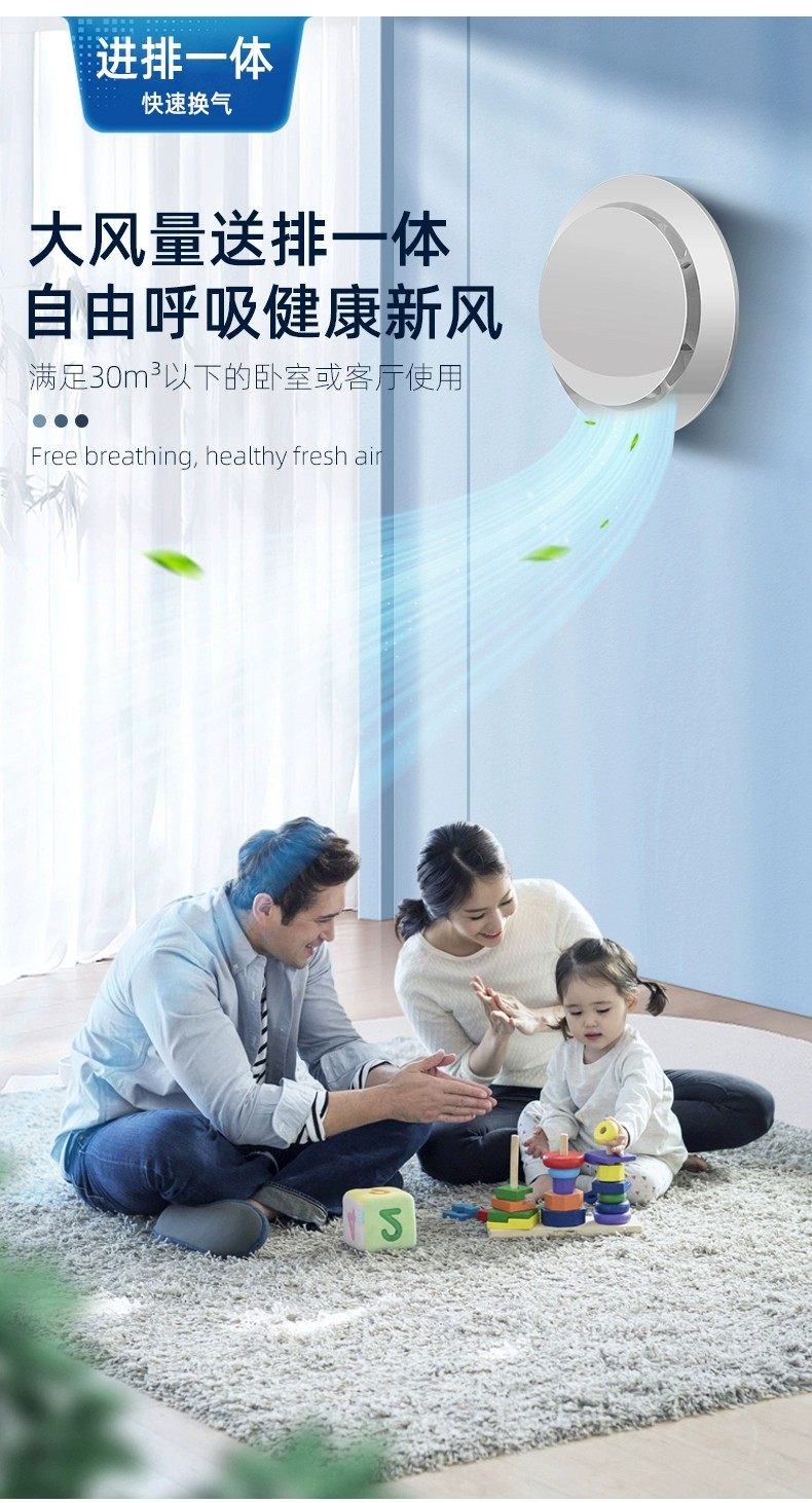 Fresh Air System Through-Wall Integrated Duct Exhaust Fan Silent Ventilation Two-Way Fresh Air Machine for Air Intake, Exhaust, and Smoke Removal