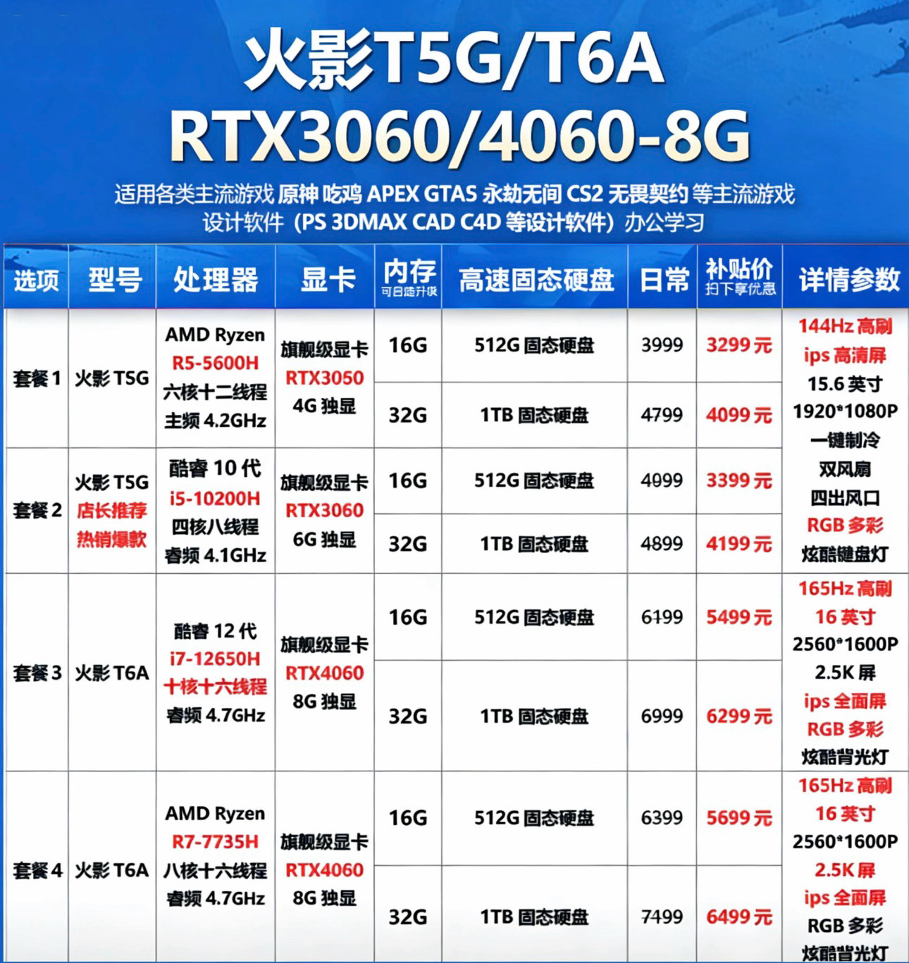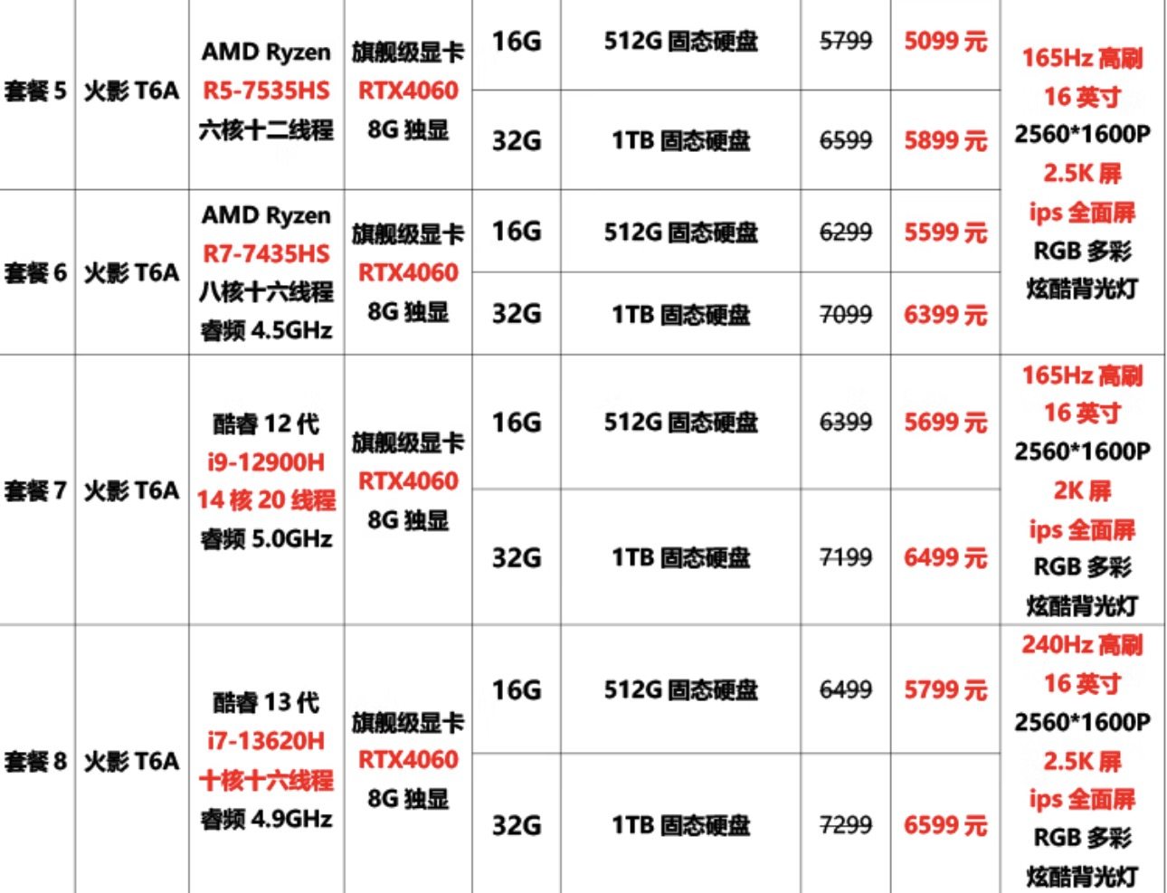 | Color Classification | 1】R5-5600 RTX3050-4G,2】i5-10200 RTX3060-6G,3】i7-12650 RTX4060-8G,4】R7-7735 RTX4060-8G,5】R5-7535 RTX4060-8G,6】R7-7435 RTX4060-8G,7】i9-12900 RTX4060-8G,8】i7-13620 RTX4060-8G |