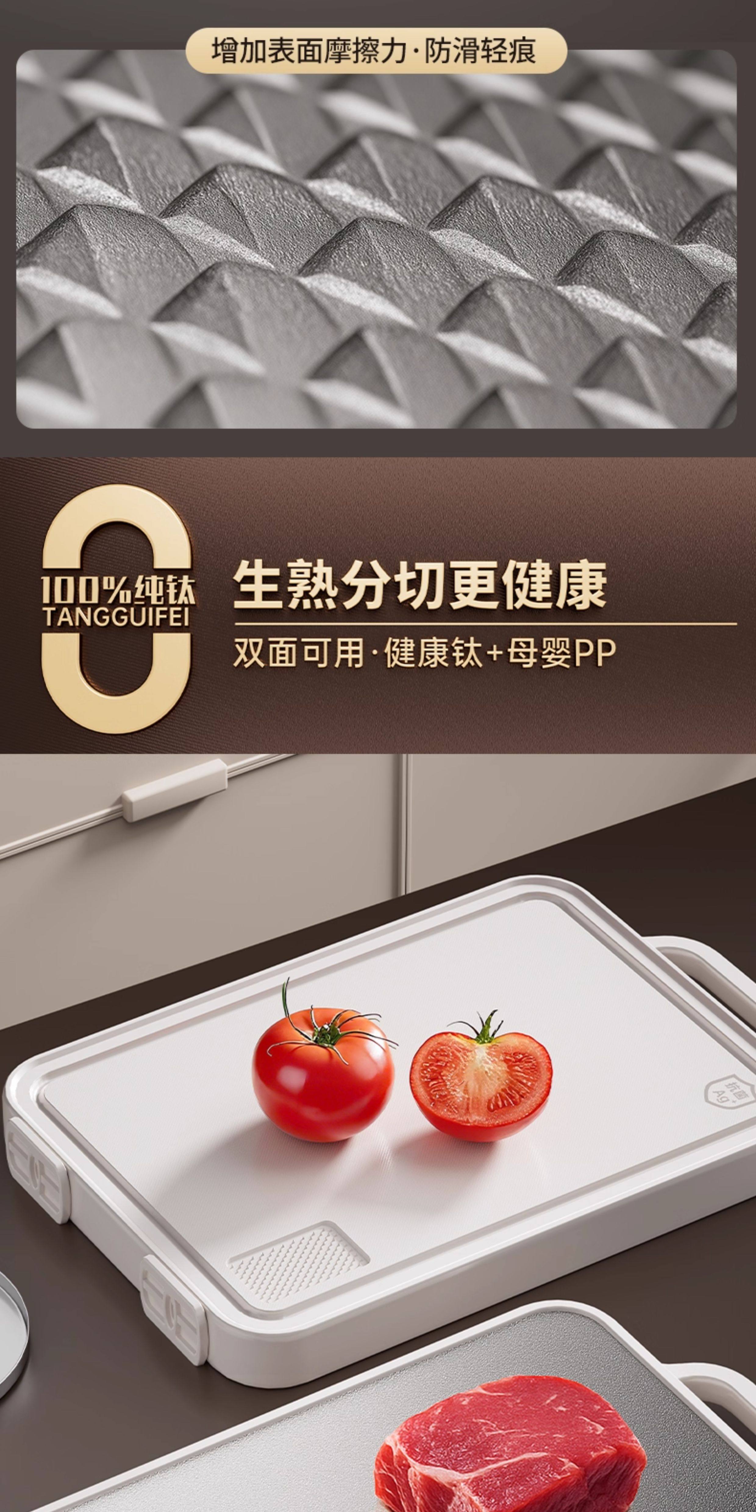 100% Pure Titanium Antibacterial and Mildew-Proof Double-Sided Cutting Board for Home Use, Food-Grade Kitchen Knife Board, Chopping Board