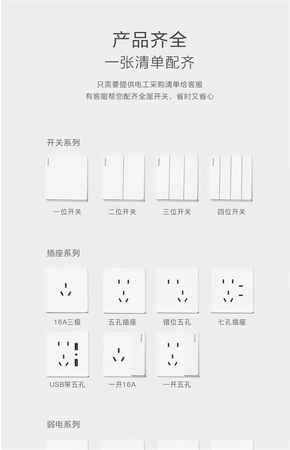 International Electrician 86 Type Switch Socket Panel, White Concealed Five-Hole Socket, Single Switch Single Control Socket for Home Use