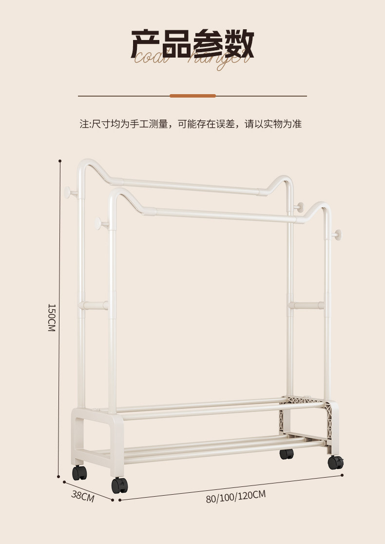 | Color Classification | [Classic Style - Single Pole] 80cm Black + Double Layer Storage,[Classic Style - Single Pole] 80cm White + Double Layer Storage,[Classic Style - Single Pole] 80cm Gold + Double Layer Storage,[Classic Style - Single Pole] 100cm Black + Double Layer Storage,【Classic - Single Rod】100 White + Double-Layer Storage,[Classic Style - Single Pole] 100cm Gold + Double Layer Storage,【Upgraded Mobile - Double Rod】80Cm Black + Double-Layer Storage + Universal Wheels,【Upgraded Mobile - Double Rod】80Cm White + Double-Layer Storage + Universal Wheels,【Upgraded Mobile - Double Rod】80Cm Gold Finish + Double-Layer Storage + Universal Wheels,【Upgraded Mobile - Double Rod】100Cm Black + Double-Layer Storage + Universal Wheels,【Upgraded Mobile - Double Rod】100Cm White + Double-Layer Storage + Universal Wheels,【Upgraded Mobile - Double Rod】100Cm Gold Finish + Double-Layer Storage + Universal Wheels,【Upgraded Mobile - Double Rod】120Cm Black + Double-Layer Storage + Universal Wheels,【Upgraded Mobile - Double Rod】120Cm White + Double-Layer Storage + Universal Wheels,【Upgraded Mobile - Double Rod】120Cm Gold Finish + Double-Layer Storage + Universal Wheels |