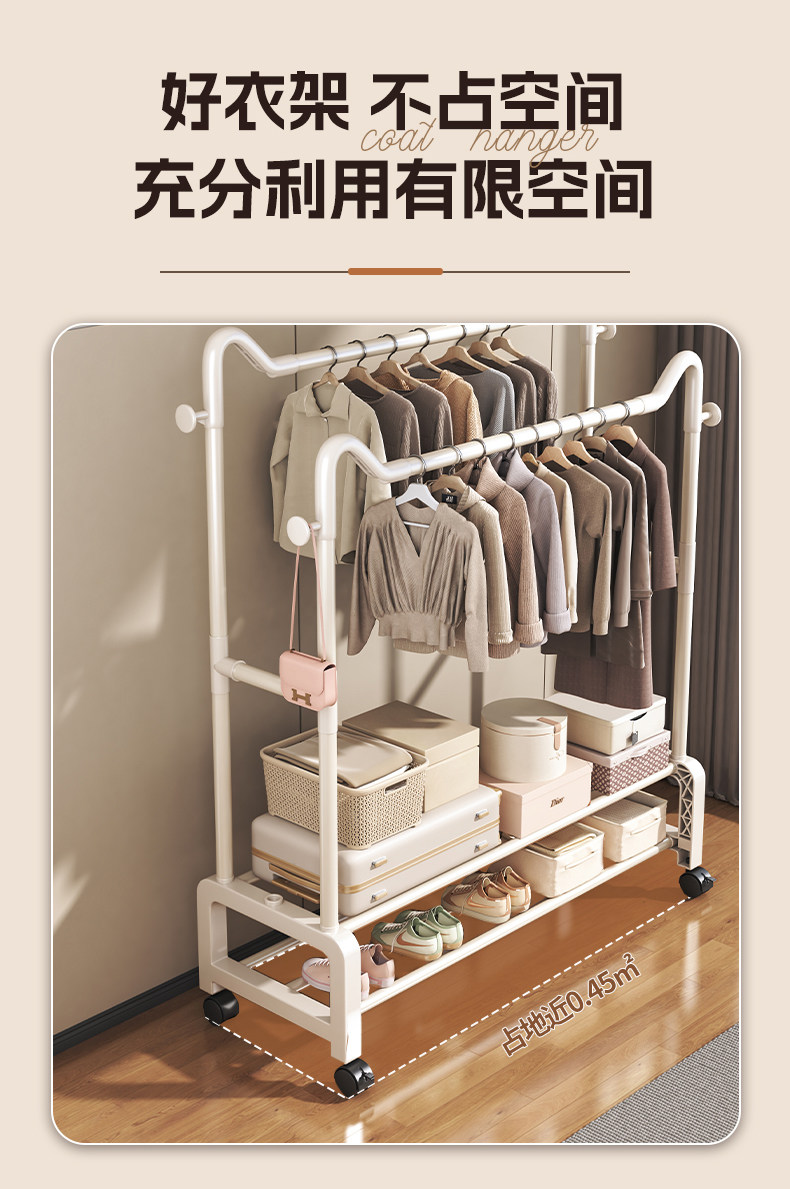 Clothes Rack, Floor-Standing Clothes Rack, Hanging Clothes Rack, Bedroom Movable Clothes Storage Rack, Simple Household Balcony Clothes Drying Rack