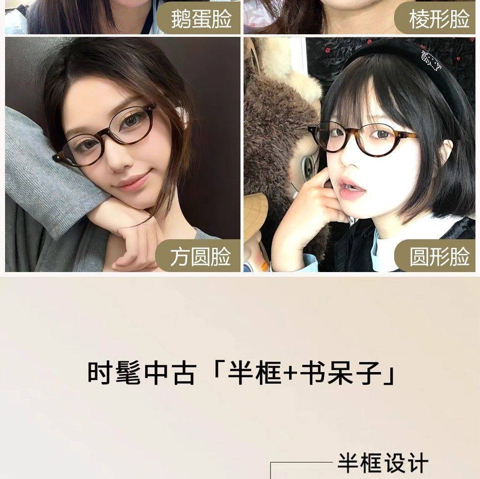 Retro Tortoiseshell Bookish Style Half-Rim Glasses for Women with Myopia, Customizable Prescription, Japanese Style Oval Small Frame Eyeglass Frames
