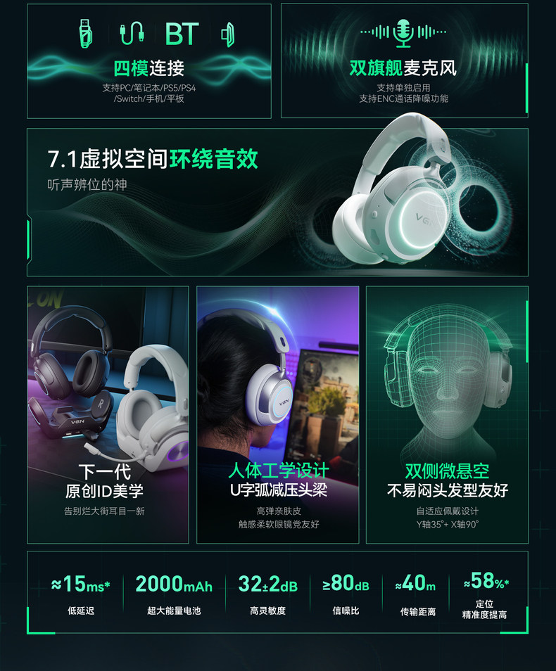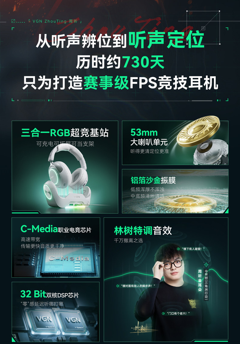 Vgn Zhou Ting Pro Max [Same Model as Lin Shu] Over-Ear Gaming Headset Delta Noise-Cancelling Four-Mode