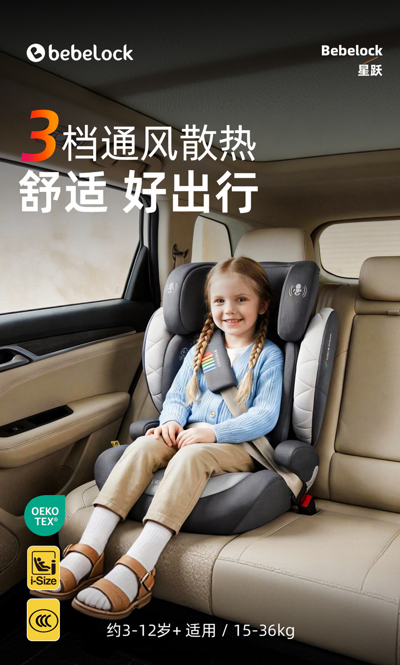 Bebelock Xingyue Kids Safety Seat for Cars, Suitable for Children over 3 Years Old, Portable Booster Seat with Heating