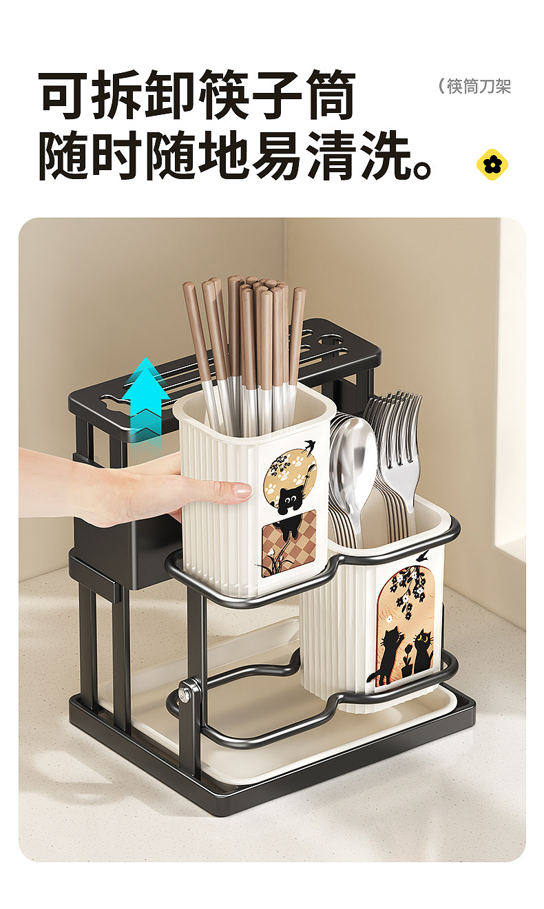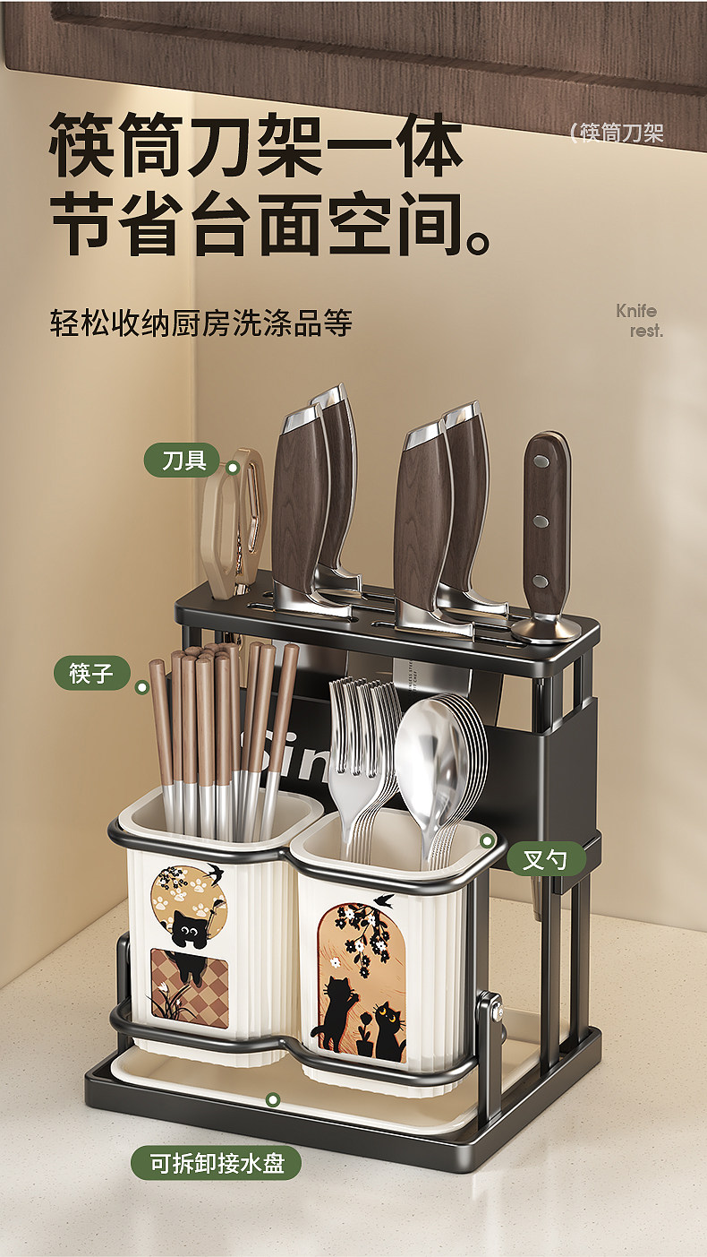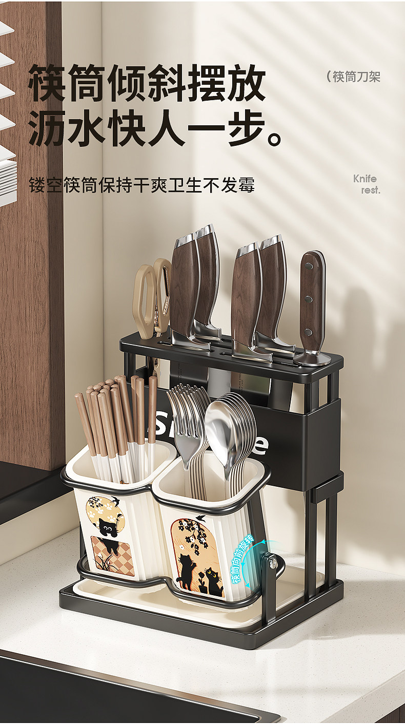 New Rotating Chopstick Holder Knife Rack Kitchen Countertop Multifunctional Knife Storage Rack Draining Shelf Wall-Mounted Chopstick Holder