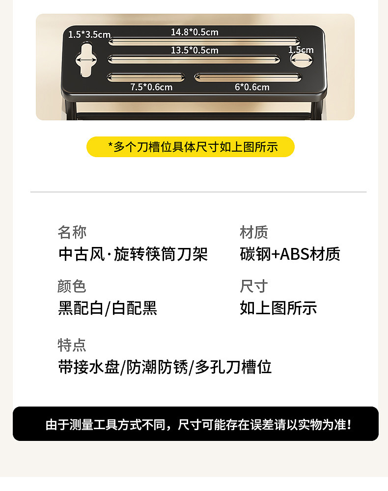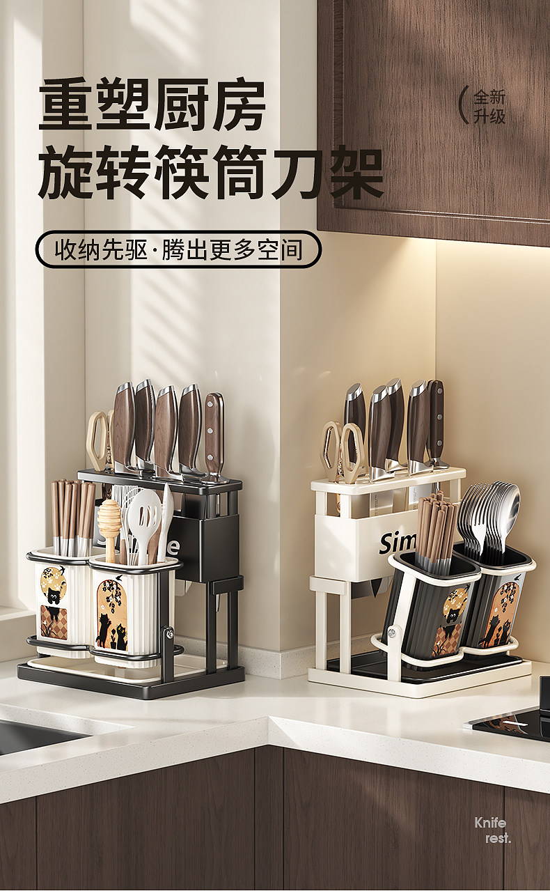 | Color Classification | Rotating Chopstick Holder & Knife Block [Jet Black] with Drain Tray,Rotating Chopstick Holder & Knife Block [Cream White] with Drain Tray |