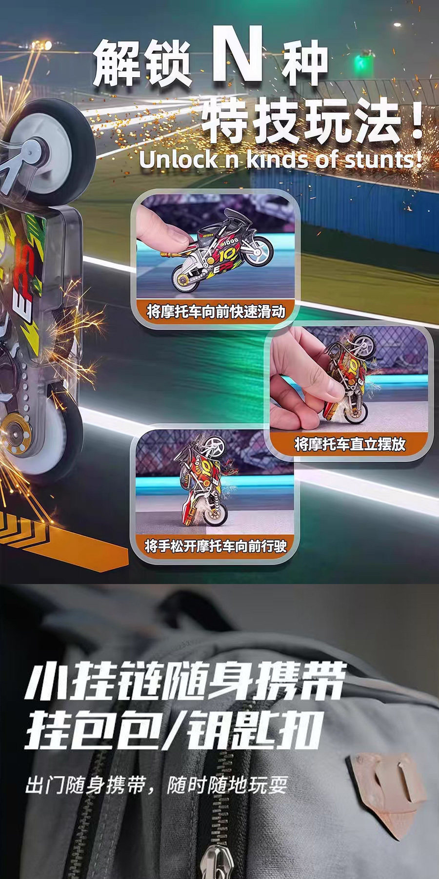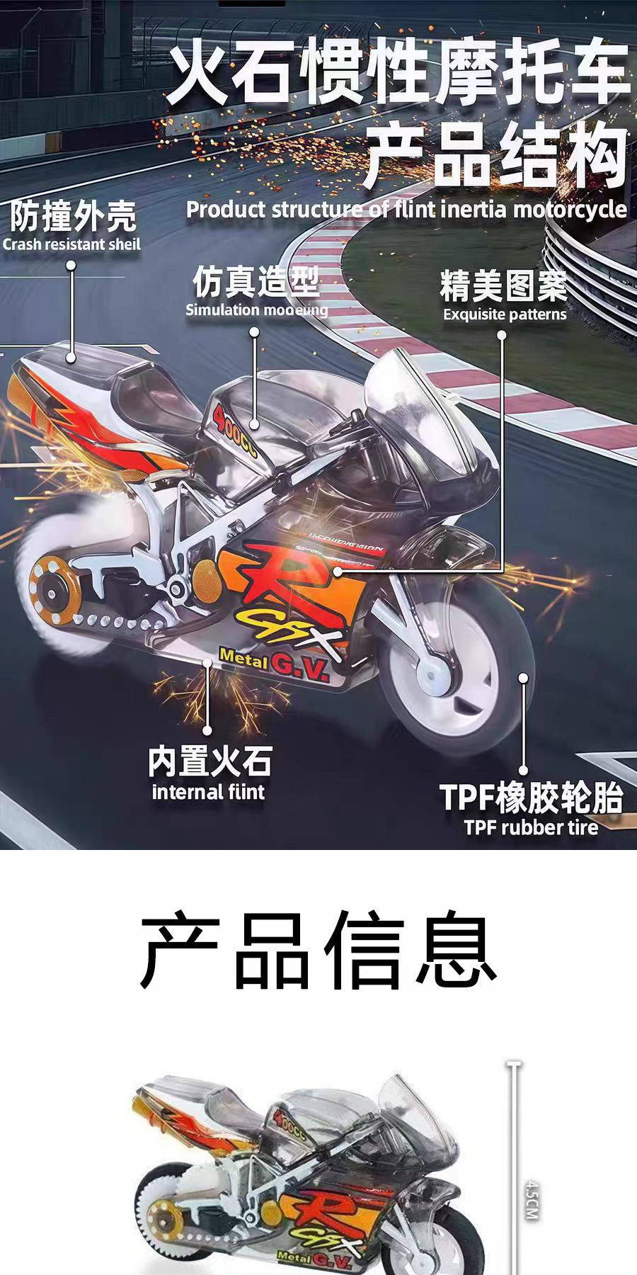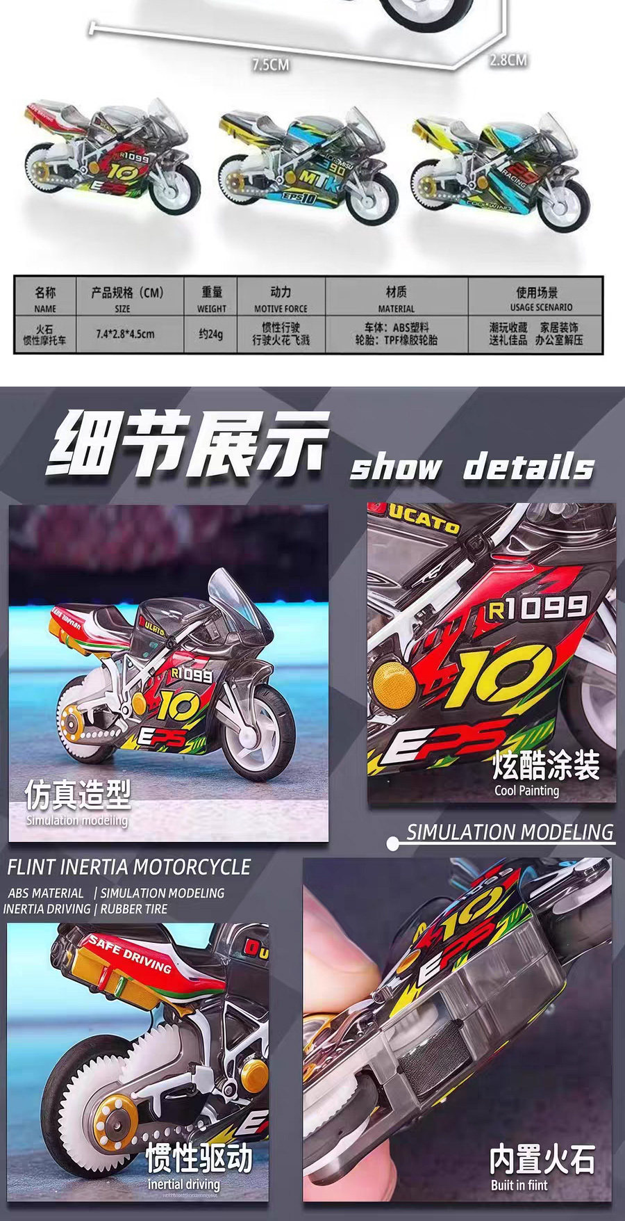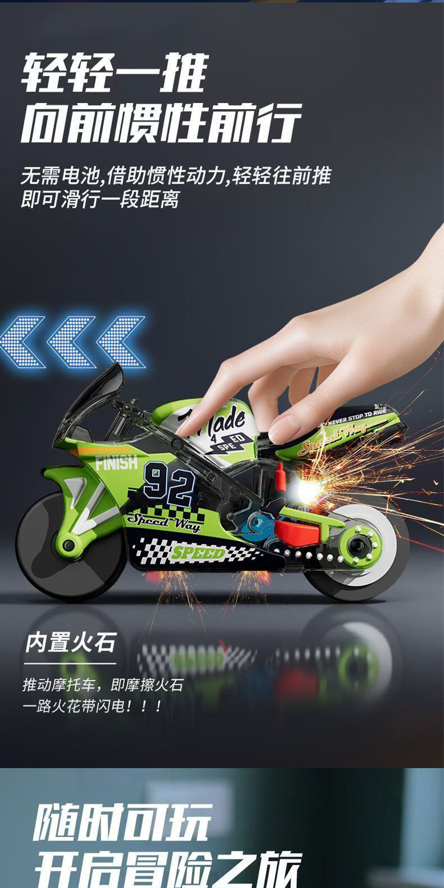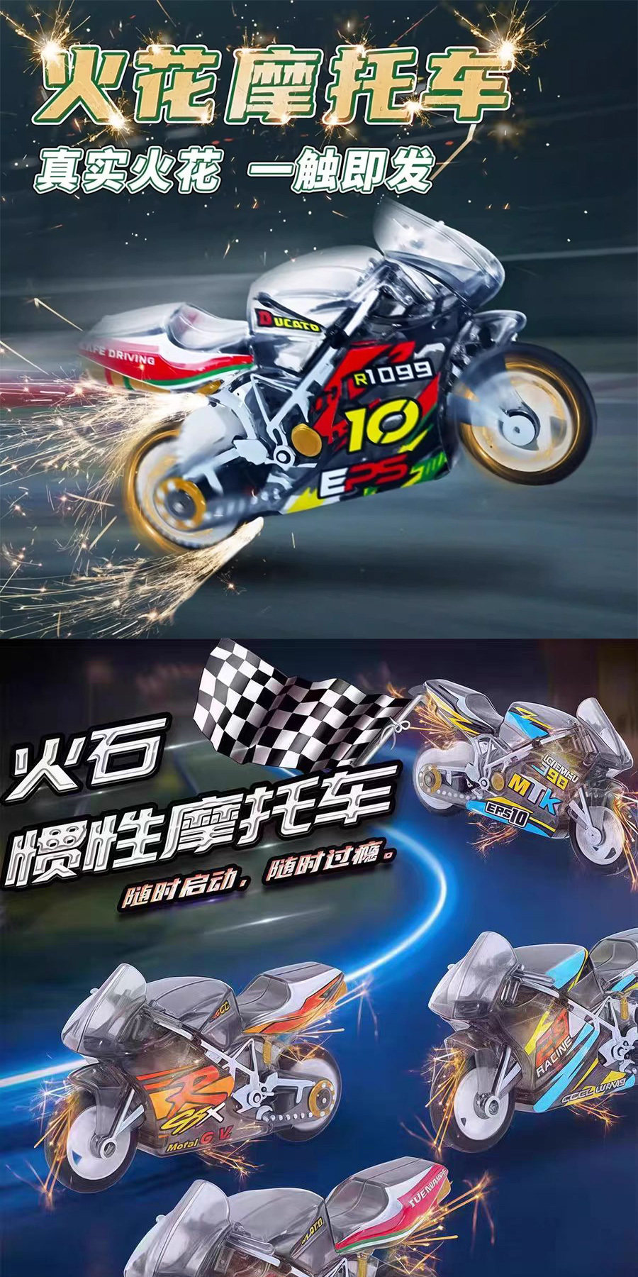 Spark Motorcycle, Super Cool Stunt Flint Inertia Motorcycle, Pull-Back Sliding Motorcycle, Mini Simulation Toy