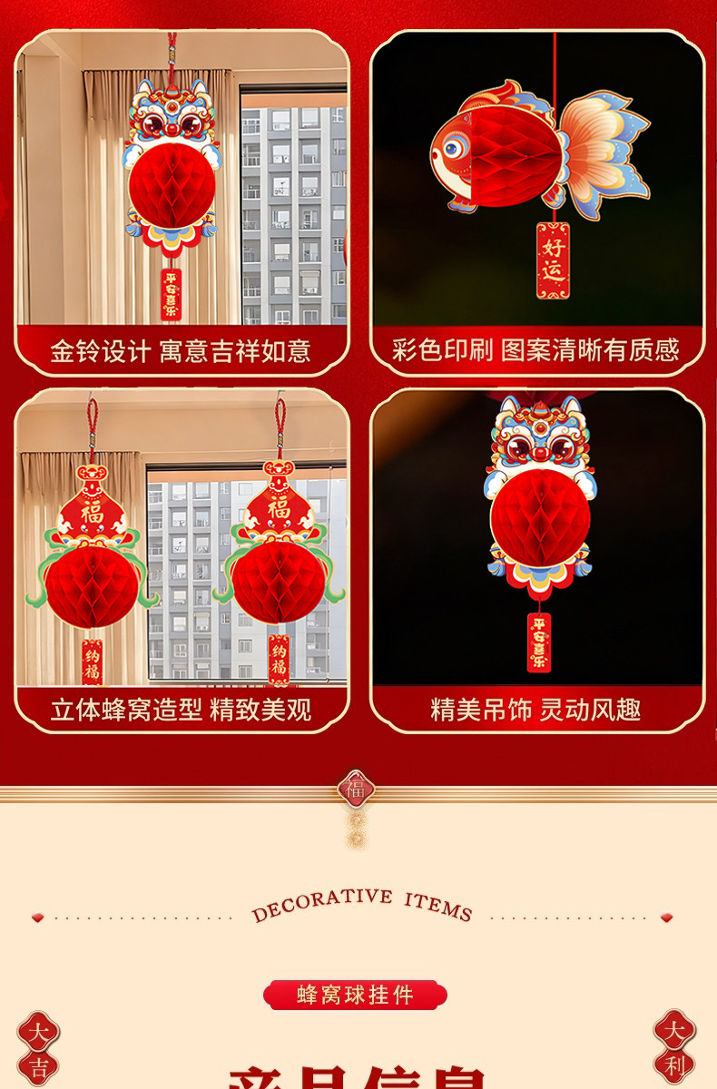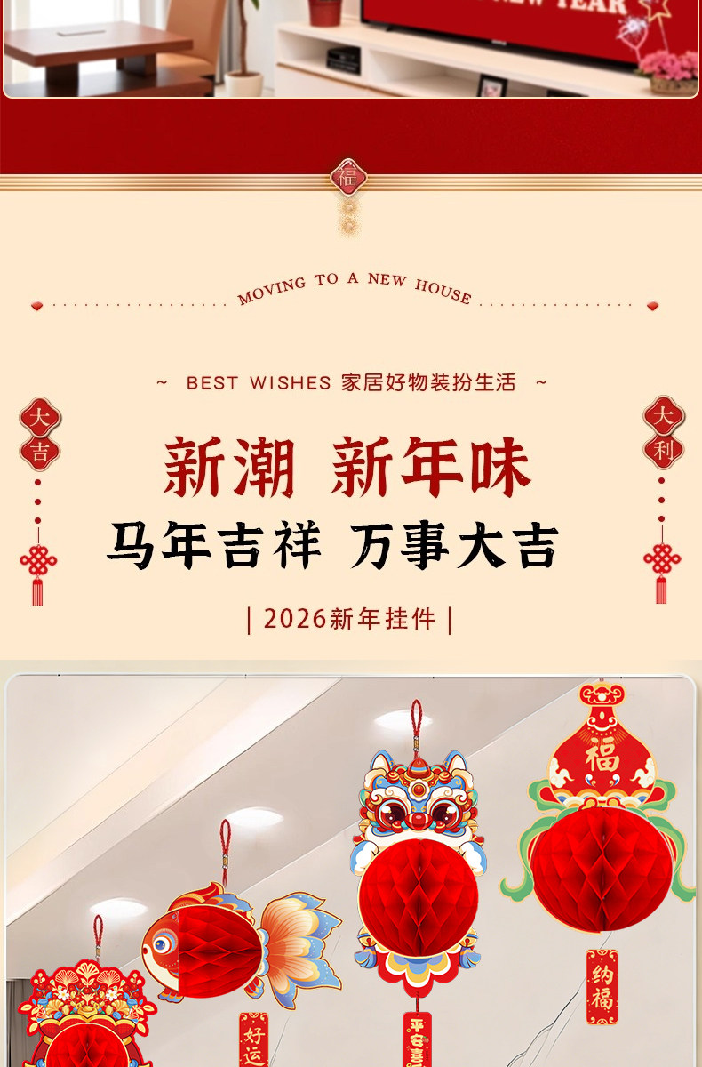 New Year Spring Festival Decoration Lion Plush Hanging Ornament 2026 New Model Entrance Door Hanging Arrangement New Year Scene Decoration
