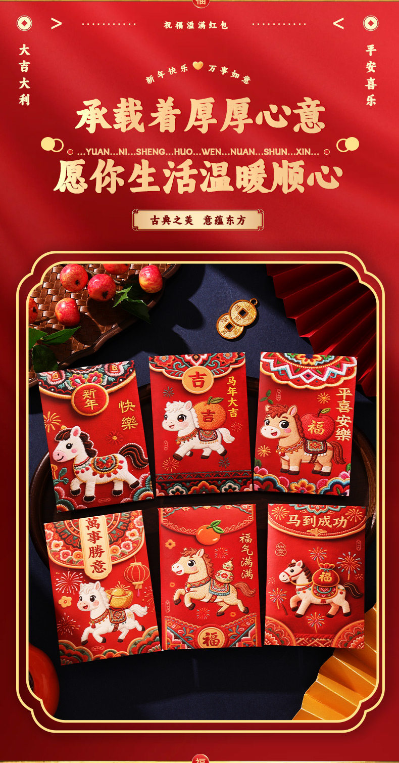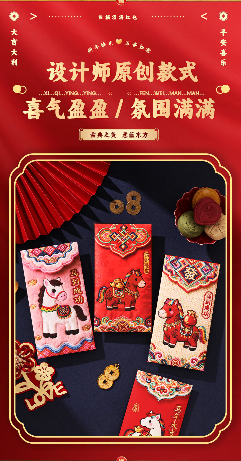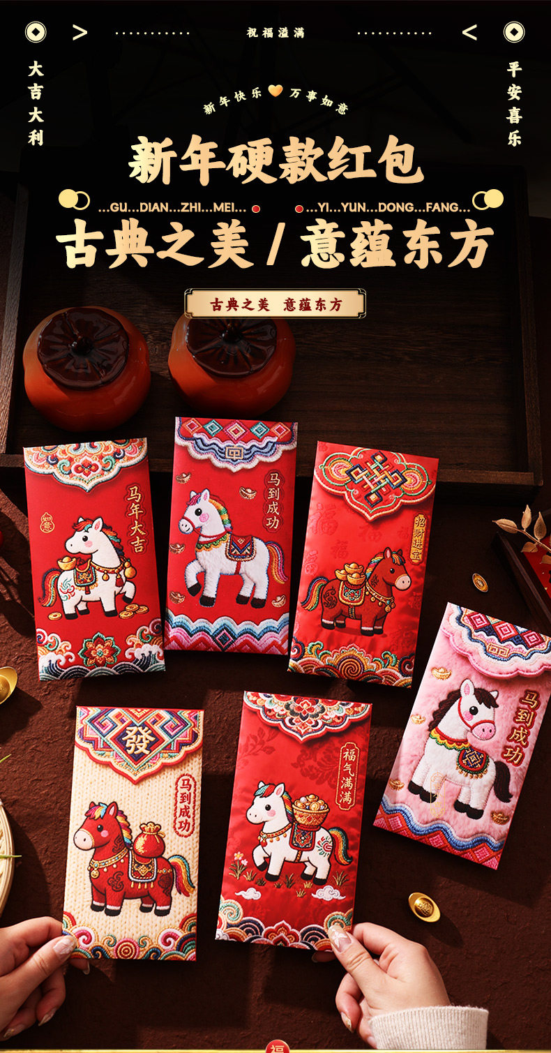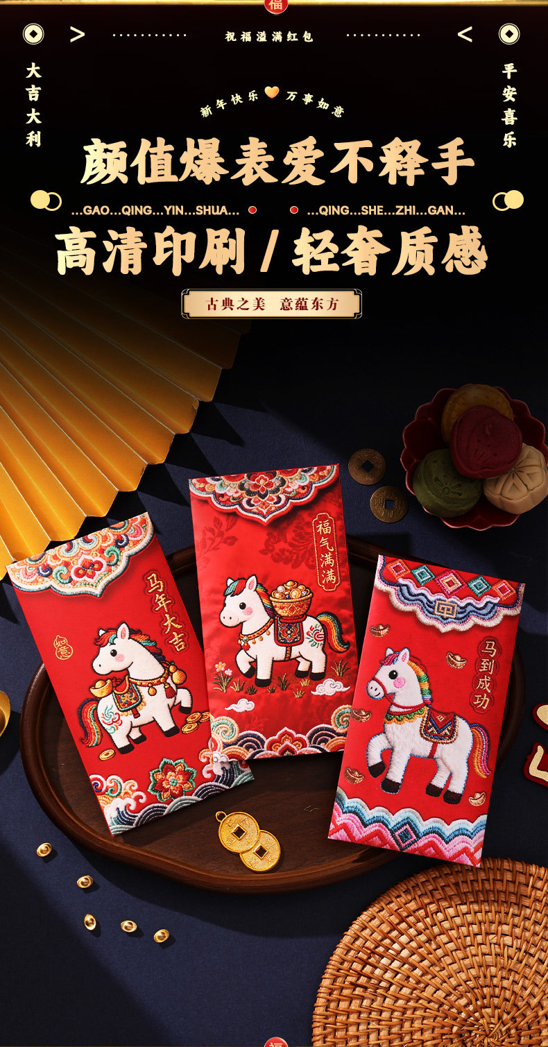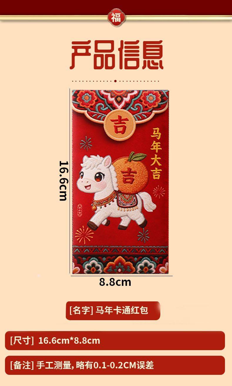 2026 Year of the Horse 3D Embroidered Red Envelope Creative Children's Spring Festival New Year Money Bag General Use Red Packet