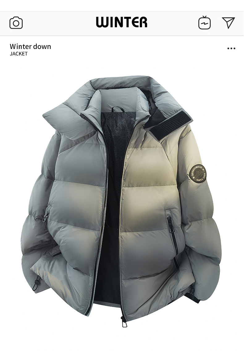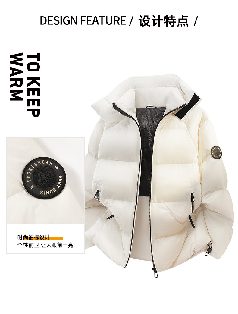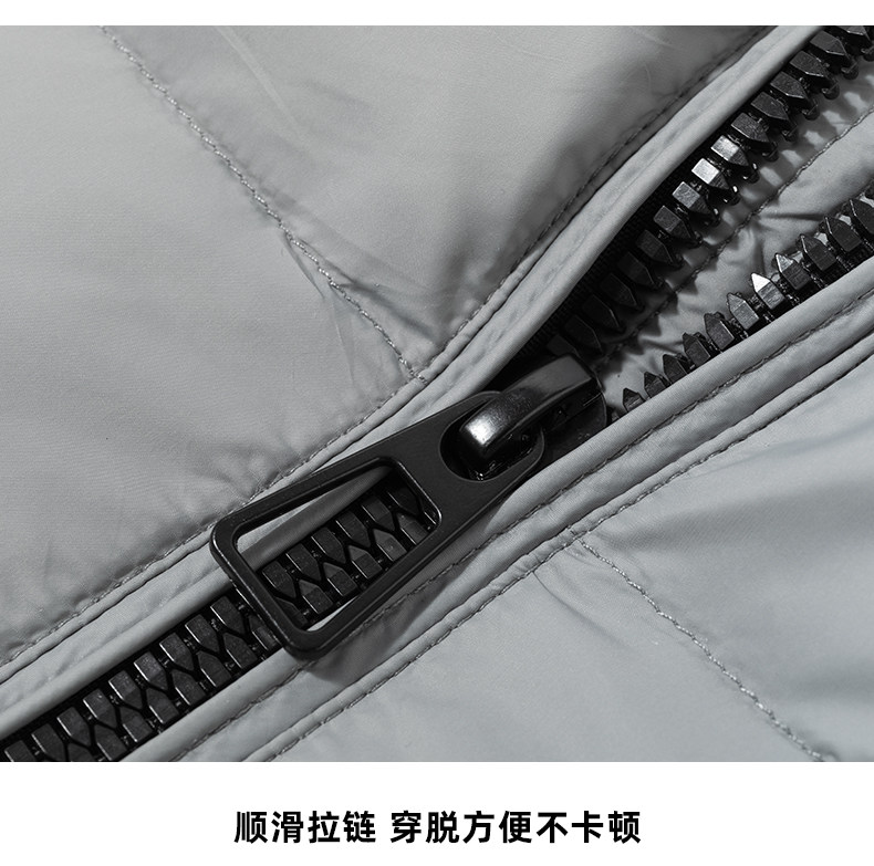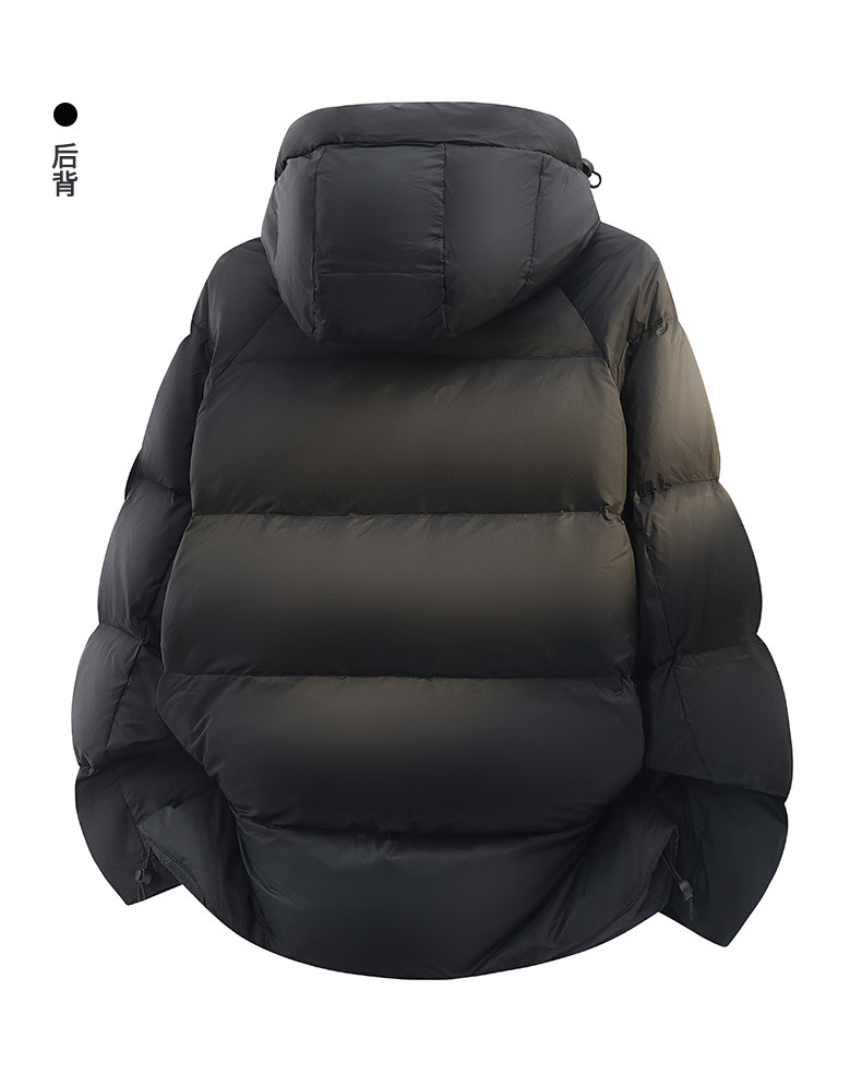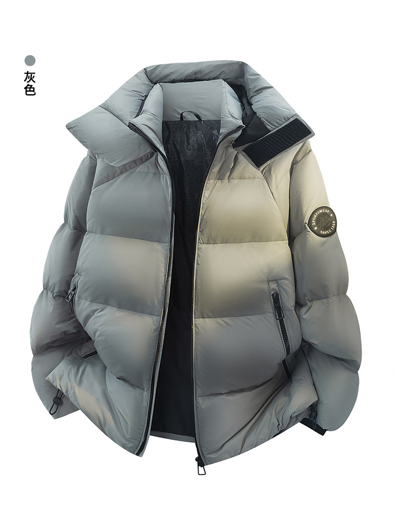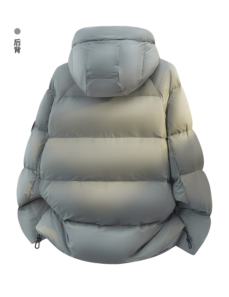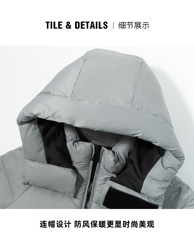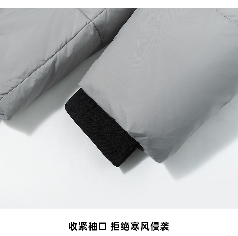Geniolamode Gray down Jacket Unisex Winter Hooded Jacket with Armband Design Trendy Puffer Jacket