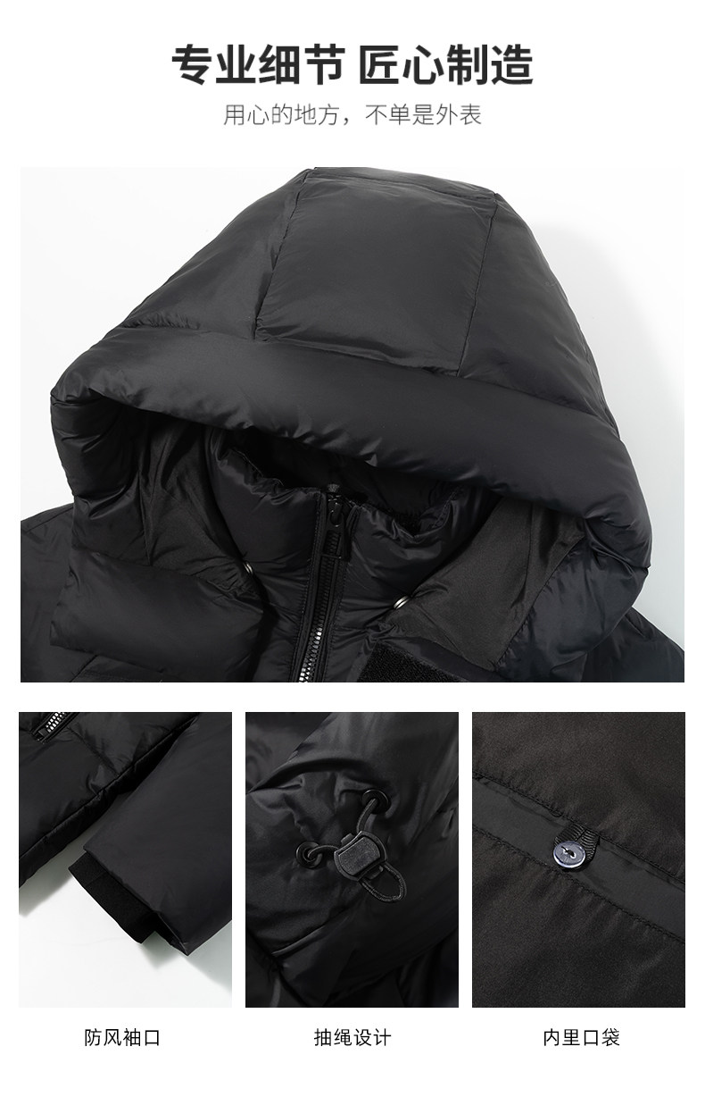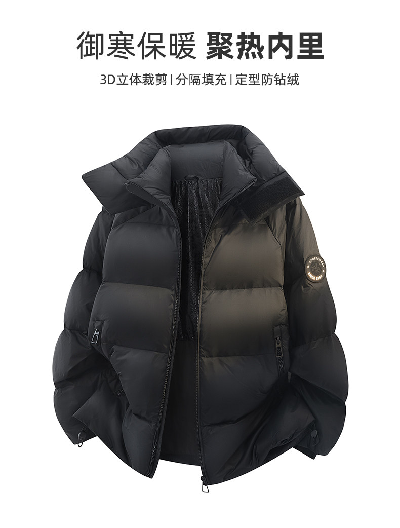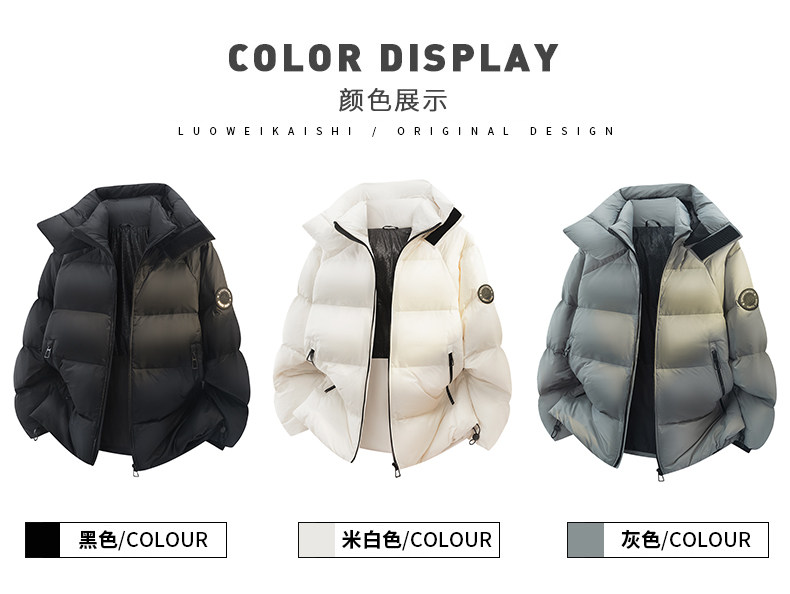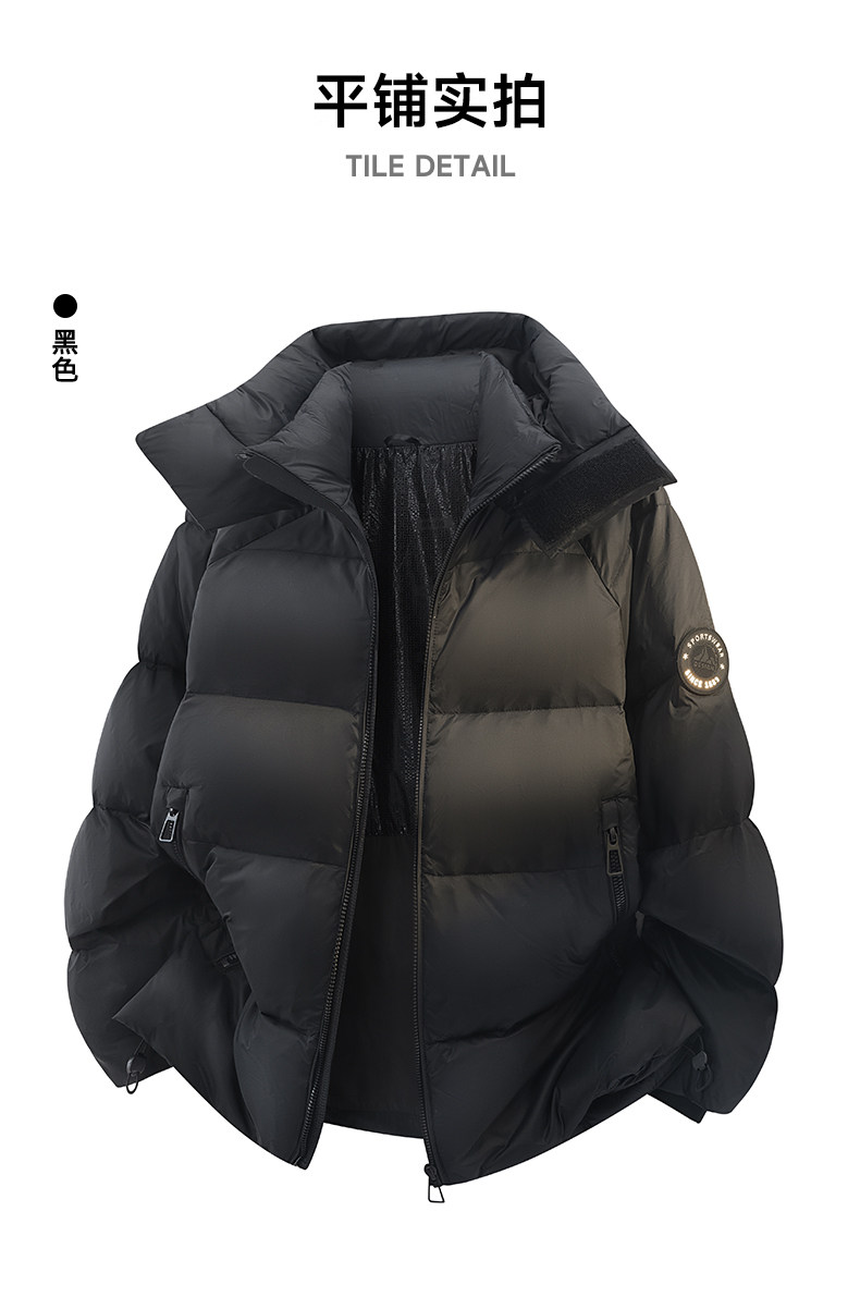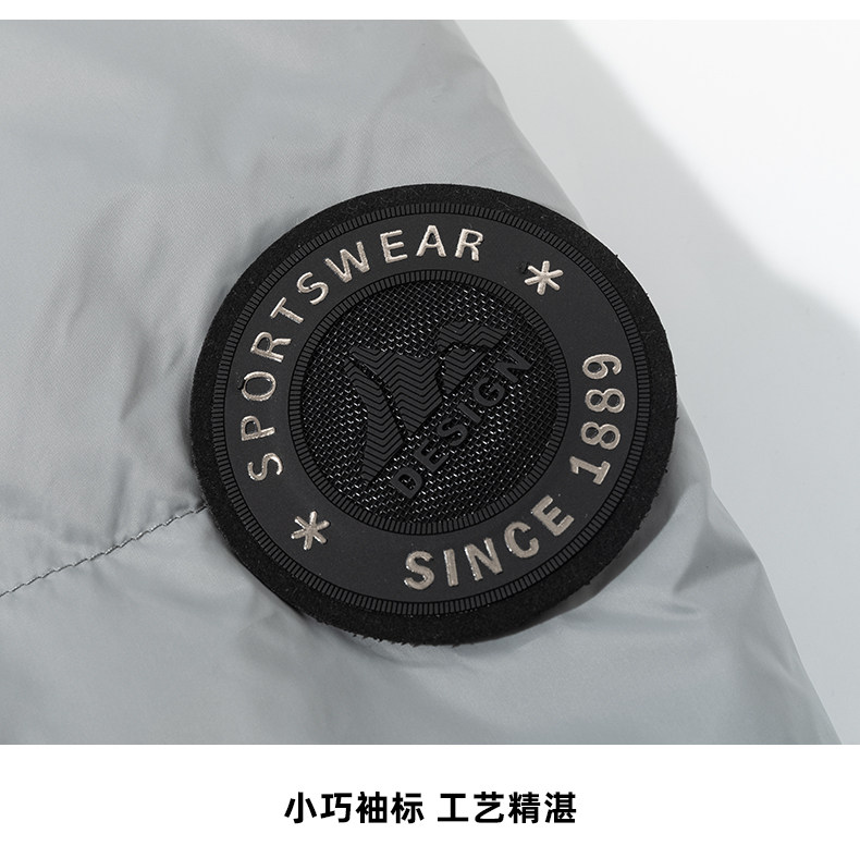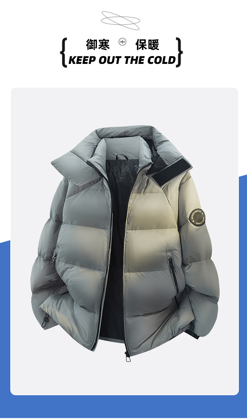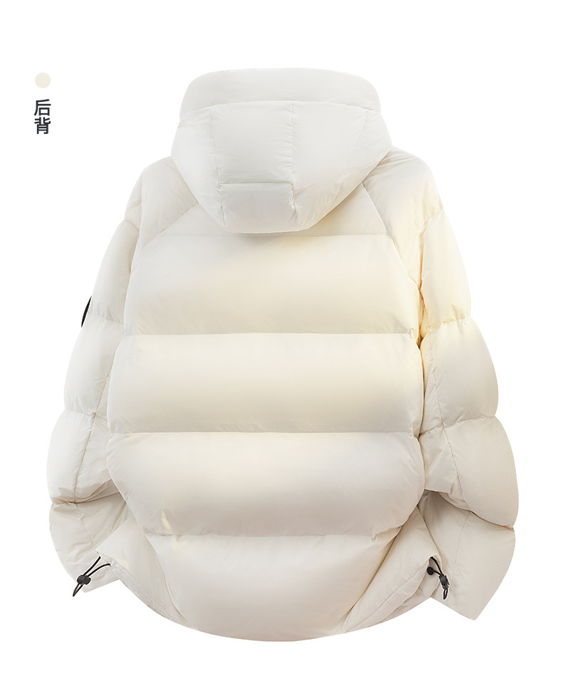 Geniolamode Gray down Jacket Unisex Winter Hooded Jacket with Armband Design Trendy Puffer Jacket