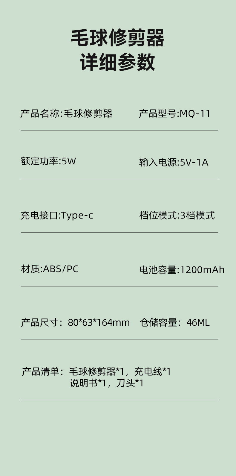 | Model | Mq-11 Hair Ball Trimmer |