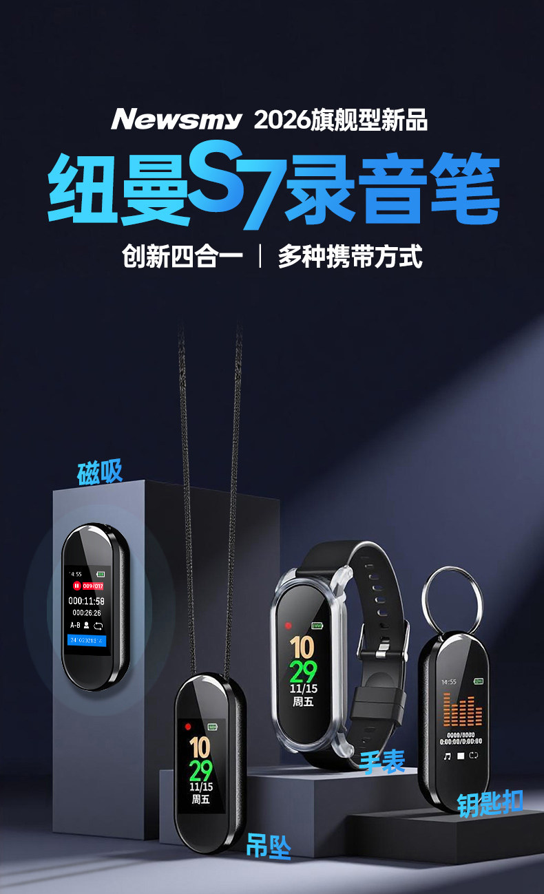 Newman S7 Smart Ai Voice Recorder Professional Device 2025 New Model High-Definition Noise Reduction Portable Wristband Recording Equipment