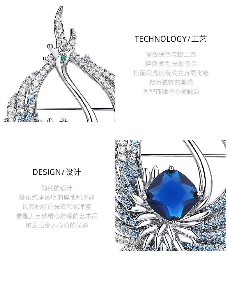 | Color Classification | Brooch - Phoenix Dawn, White Gold Tone |