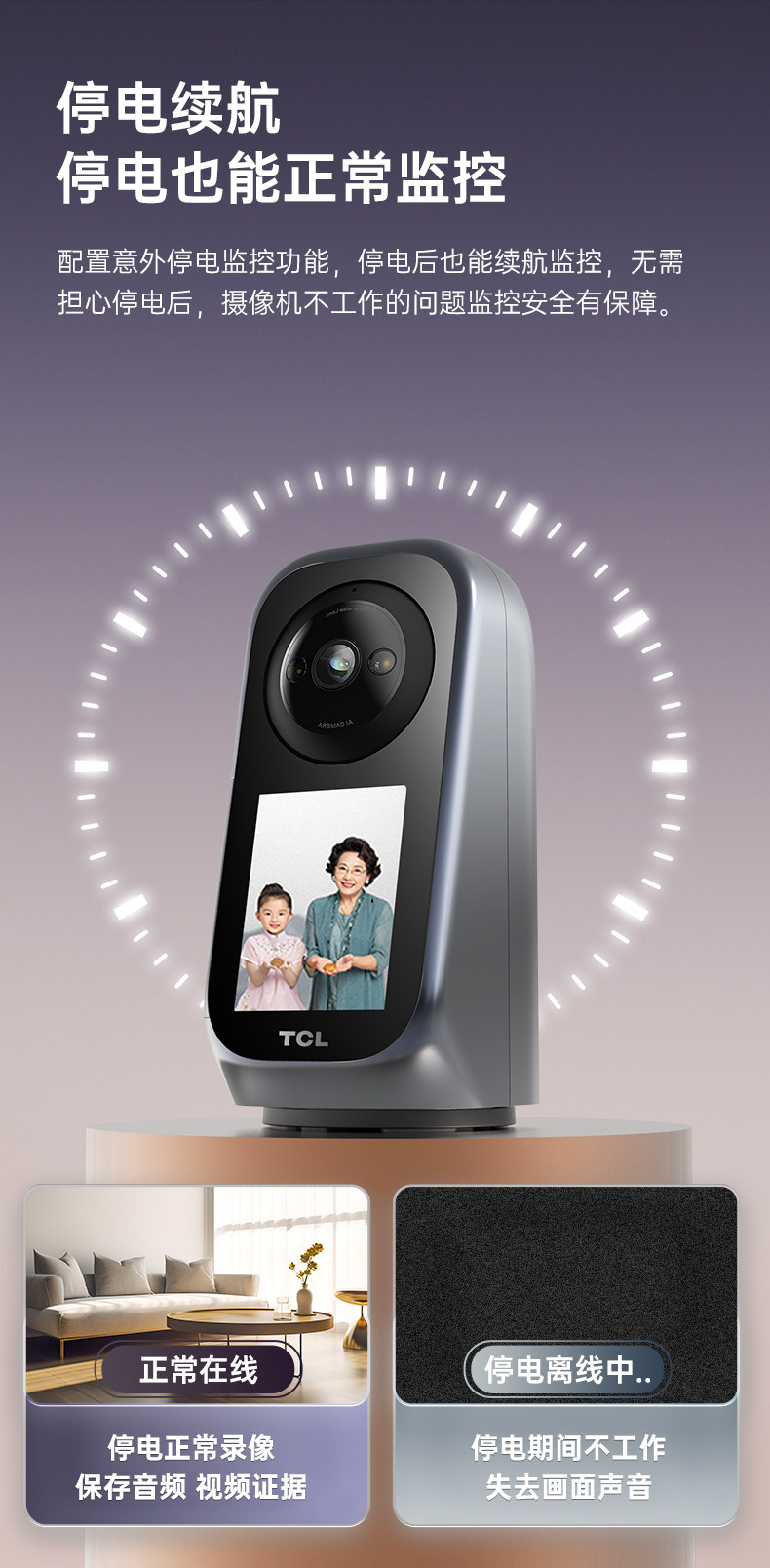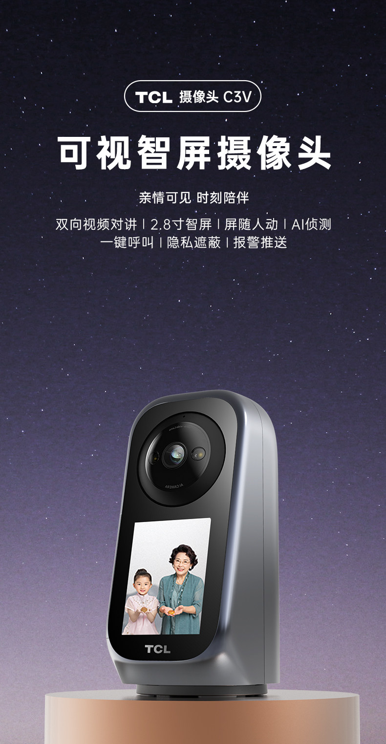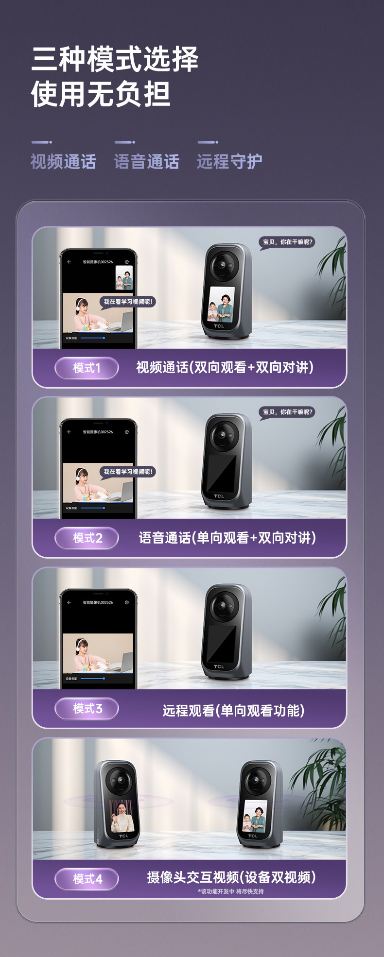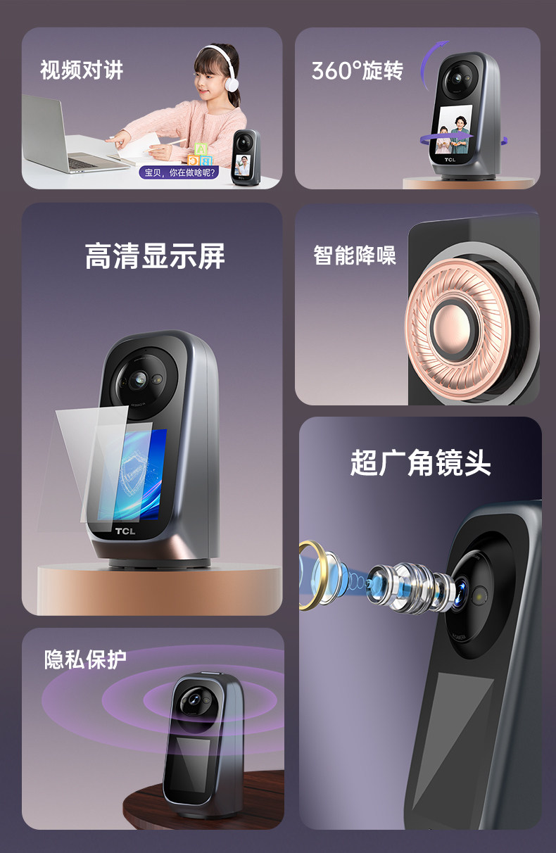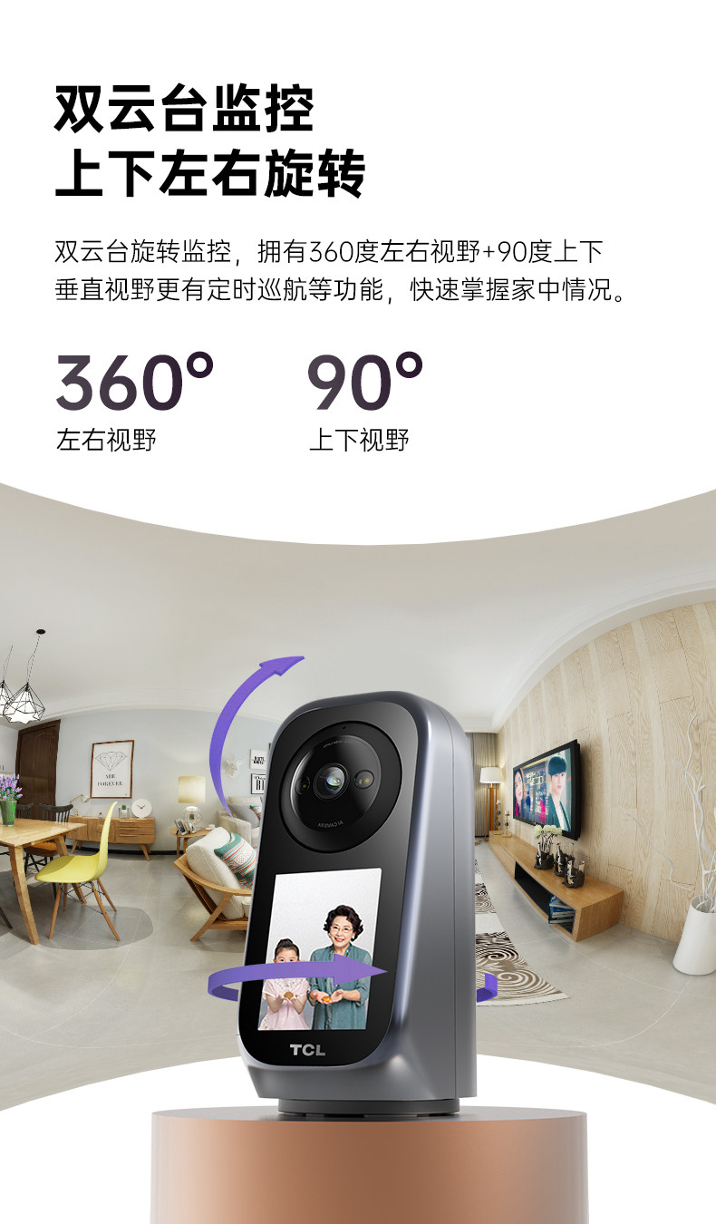 Tcl Two-Way Video Call Camera for Home Use, Indoor 360-Degree No Blind Spots, Mobile Phone Remote with Screen Monitor