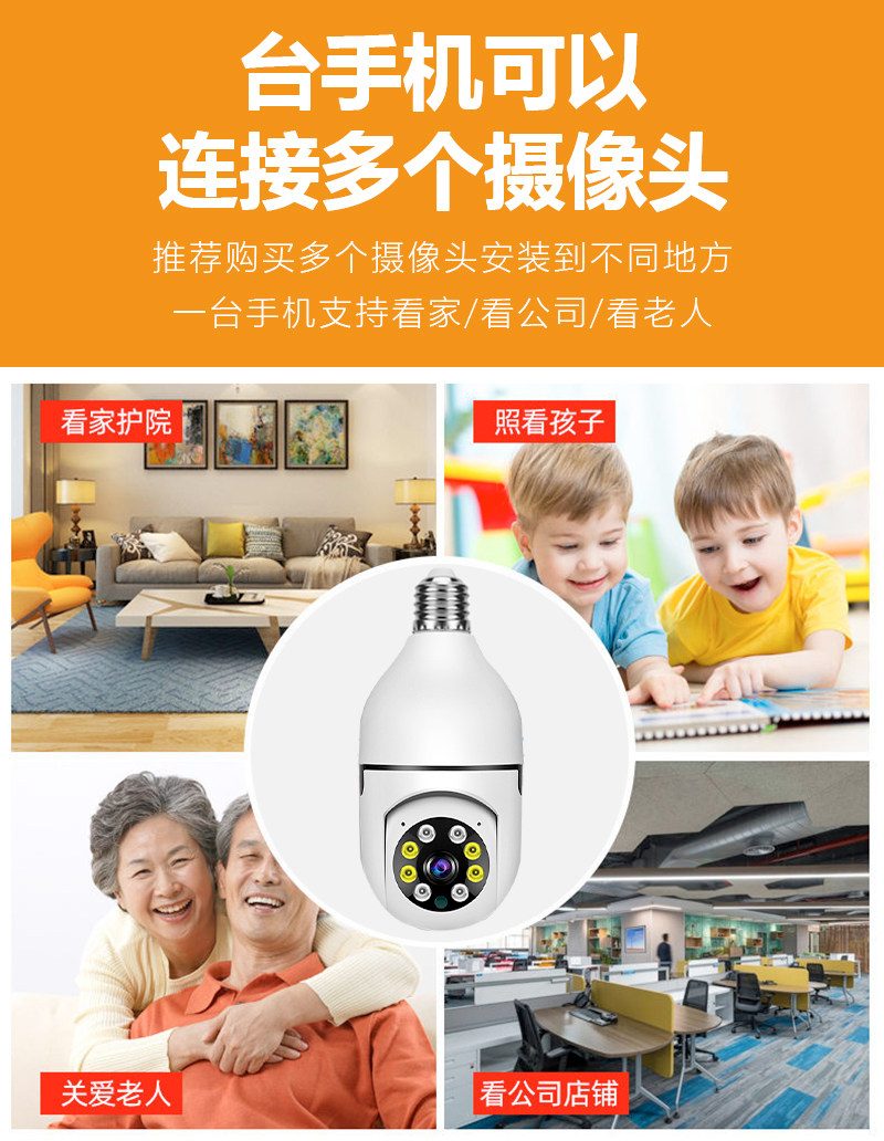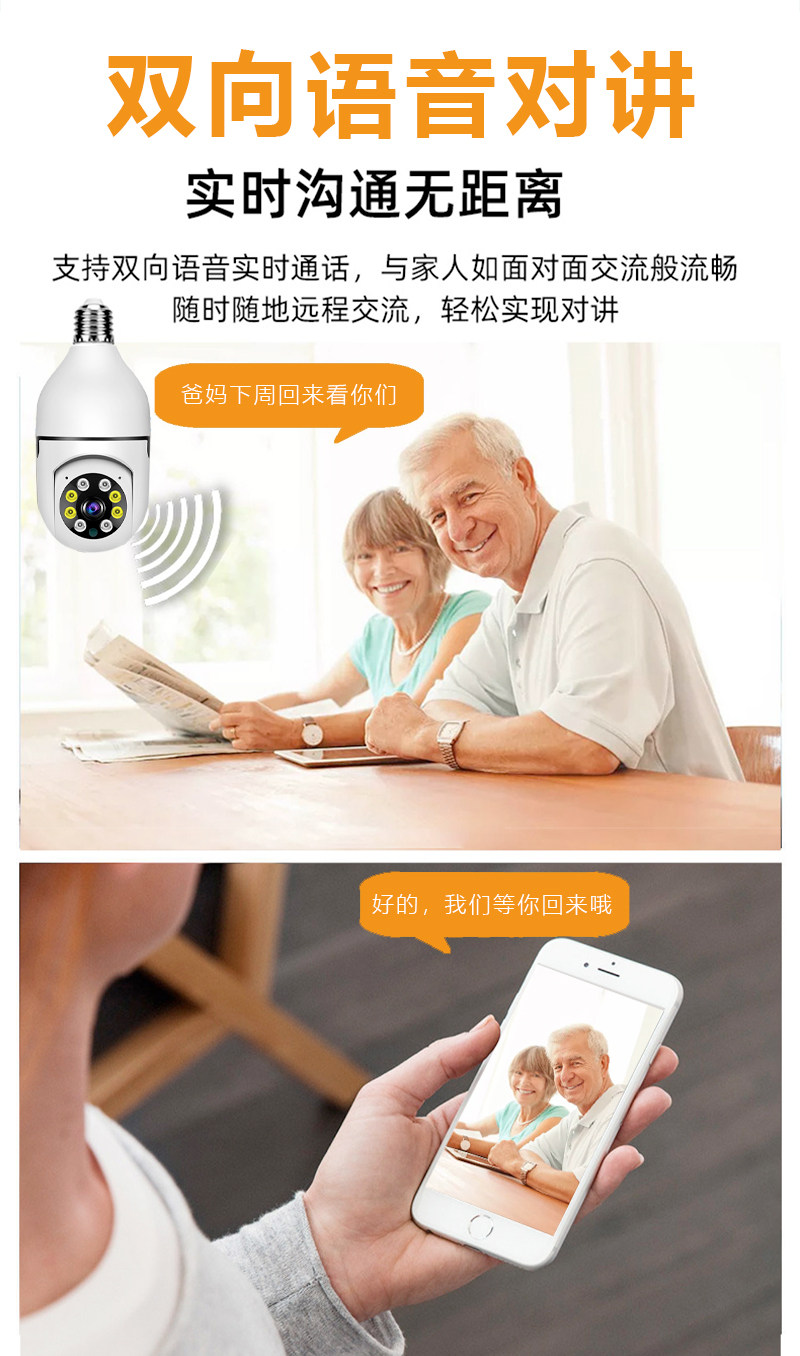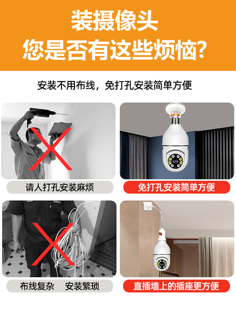 Ultra-Clear Wireless Light Bulb Camera, No Need for Power Plug, Outdoor Use, No Need for Wifi Network, Home Use, No Dead Angle Lens Surveillance Camera