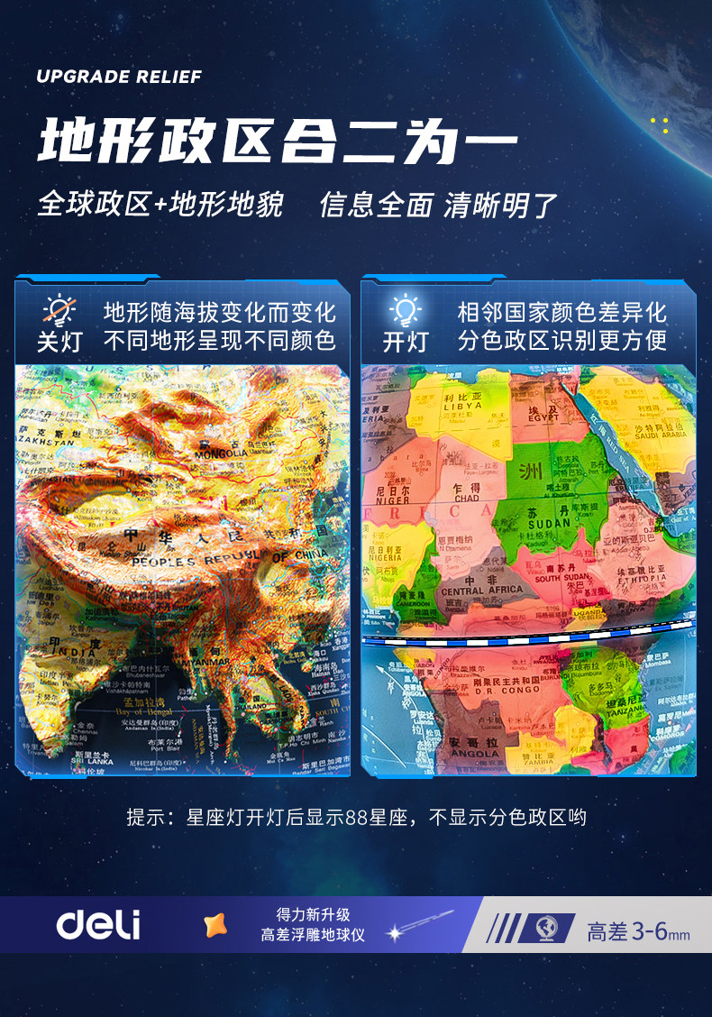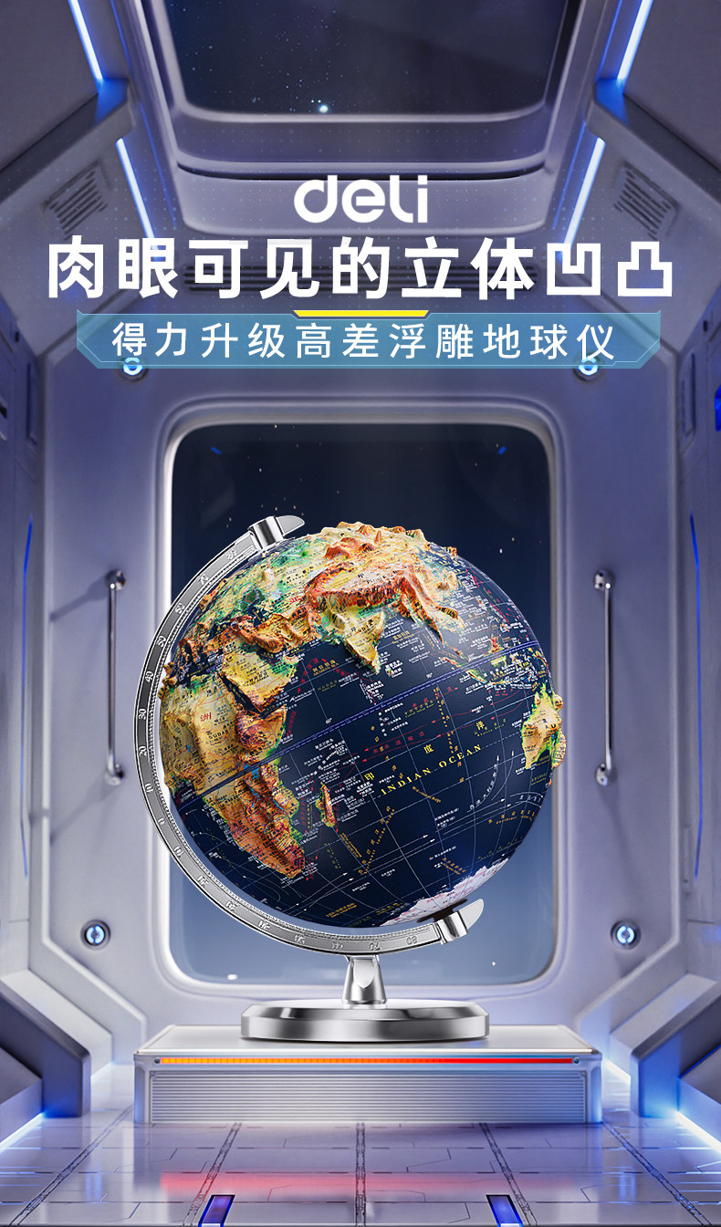 Deli 3D Floating Globe, Authentic, for Students, Junior High School Students, 2026 New Model, Children's Enlightenment 3D Relief Ornament, Light Luxury, High-End, Boys' Birthday Gift