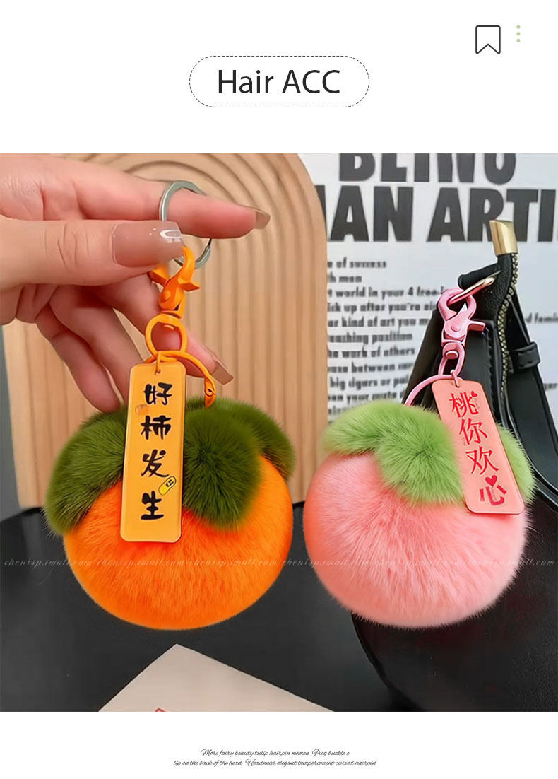 Cute Plush Persimmon Bag Pendant, Mobile Phone Car Keychain, Peach Backpack Pendant, Car Decoration