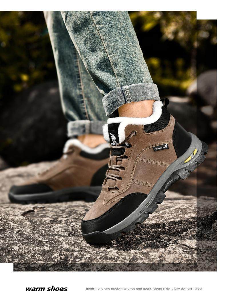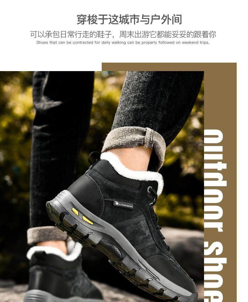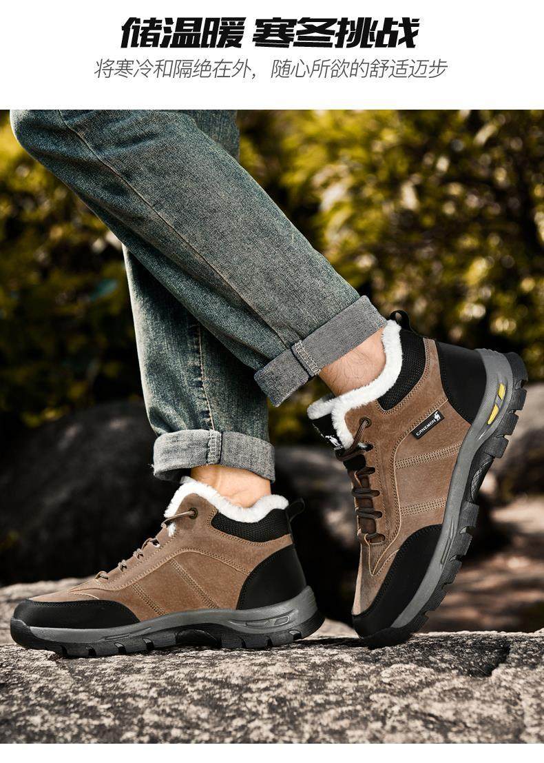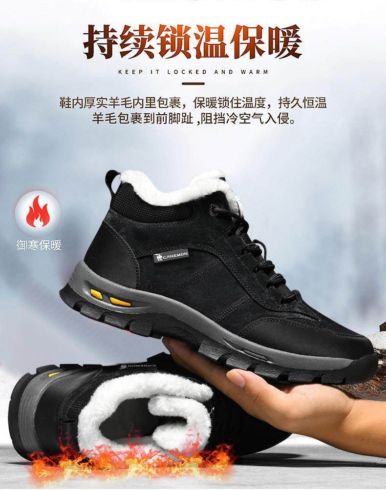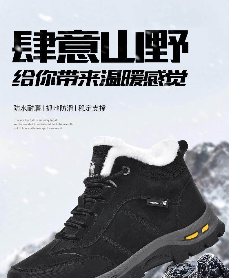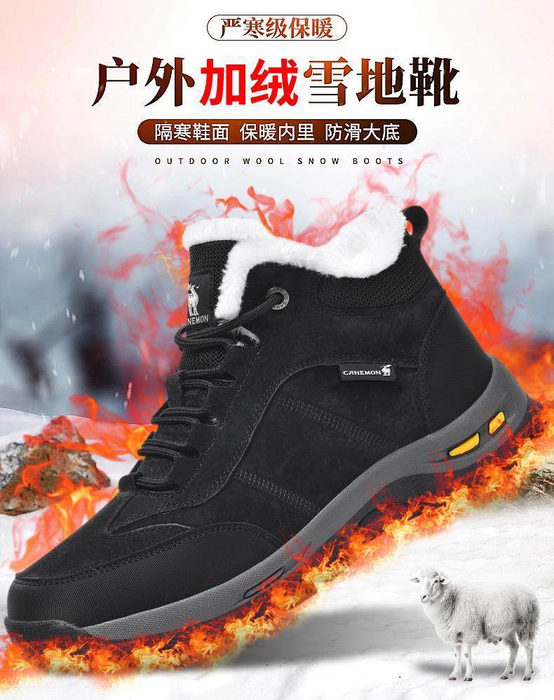 Paul Camel Winter Men's Shoes with Plush Lining, Thickened High-Top, Cold-Resistant, Warm Work Shoes, Height-Increasing Trendy Snow Boots