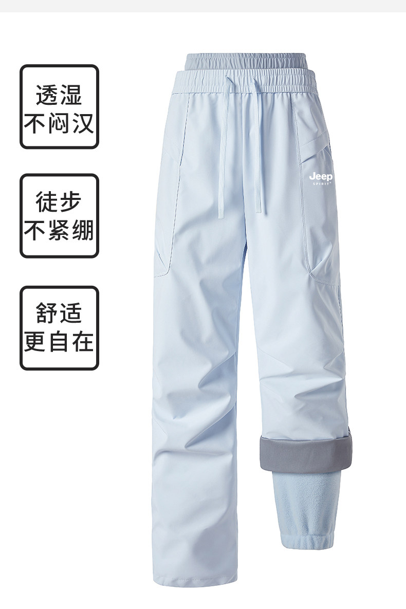 Jeep Three-In-One Ski Pants for Women, Winter Waterproof, Windproof, Fleece-Lined, Northeast Harbin Down-Proof Cold-Resistant Softshell Pants
