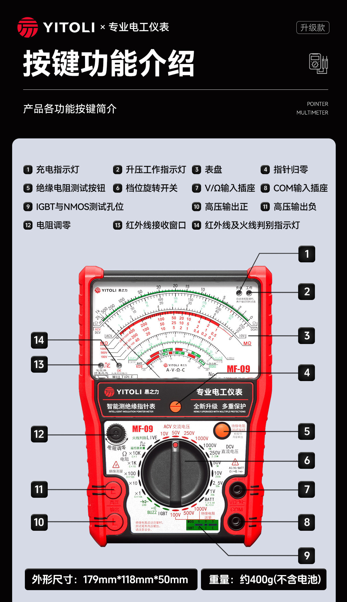 Yizhili Mf09 Multimeter Mechanical Pointer Type Insulation Resistance Tester Anti-Burn Igbt Tester Megohmmeter