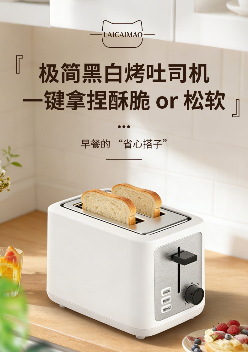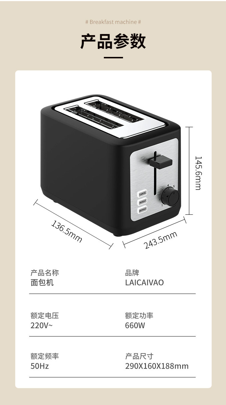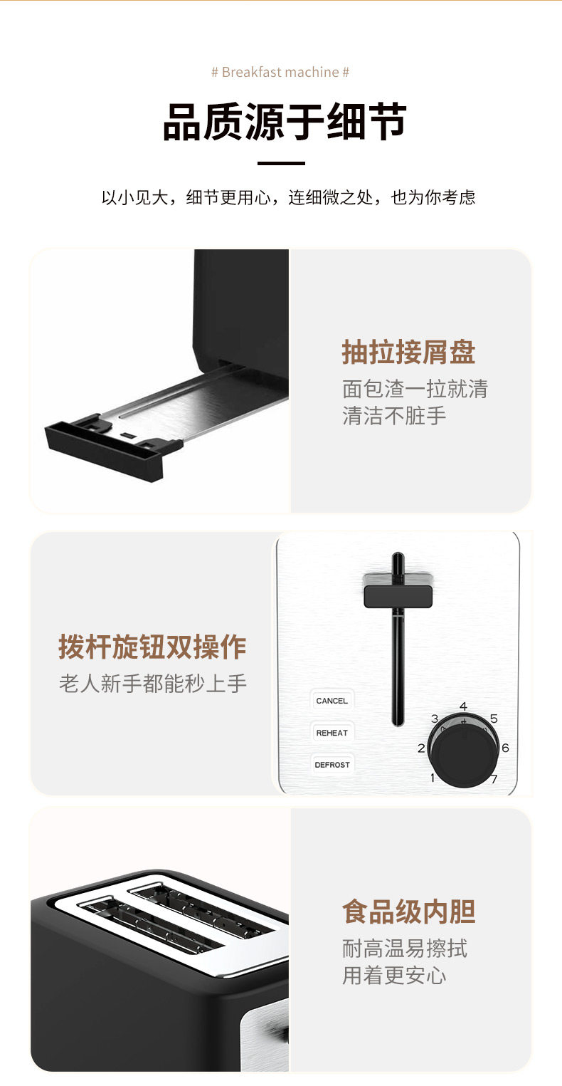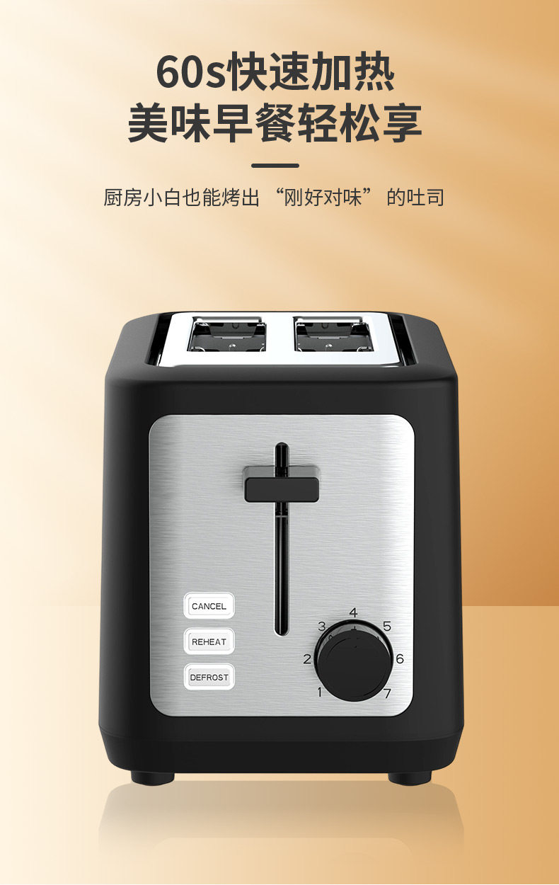 Toaster for Home Use, Fully Automatic Bread Toaster, Double-Sided Fast Baking Breakfast Appliance, Seven-Level Temperature Adjustment, Multi-Functional