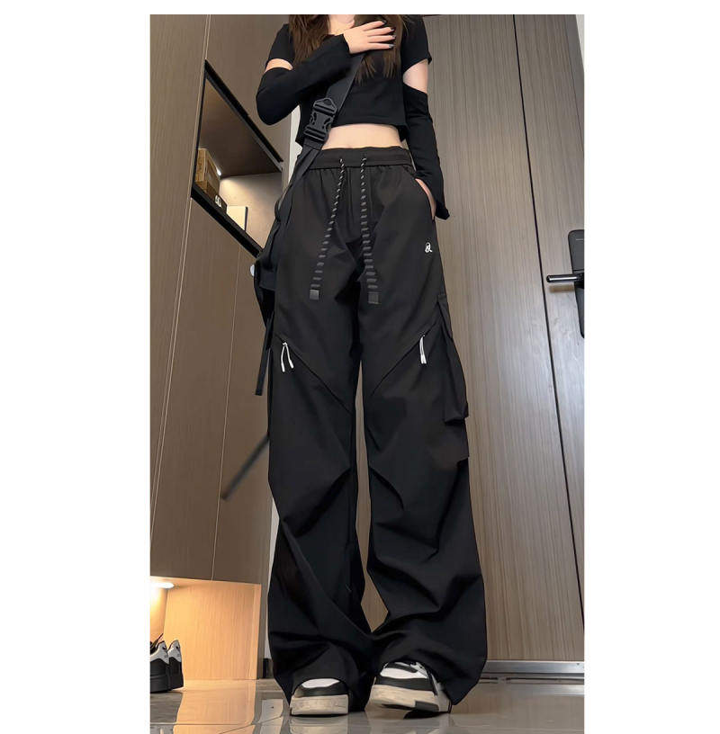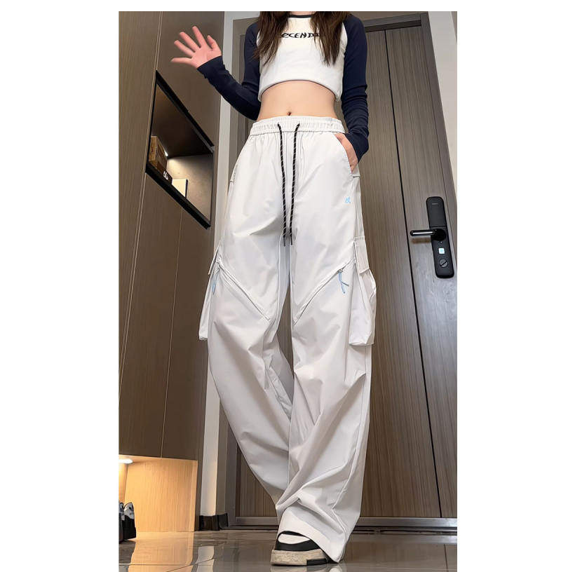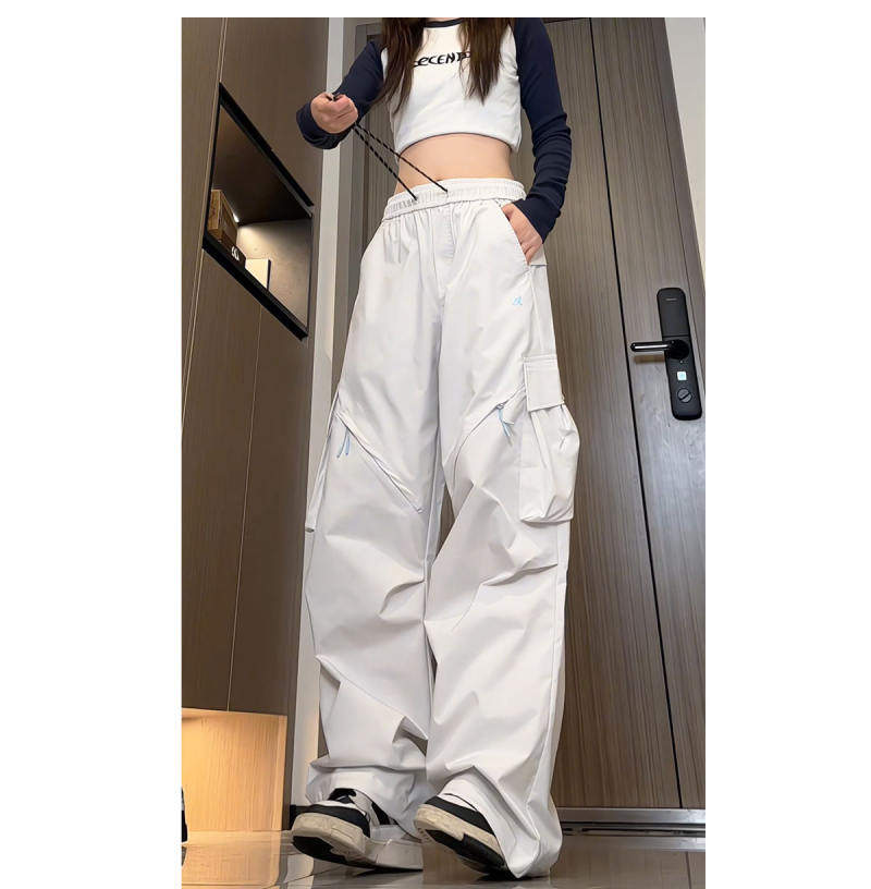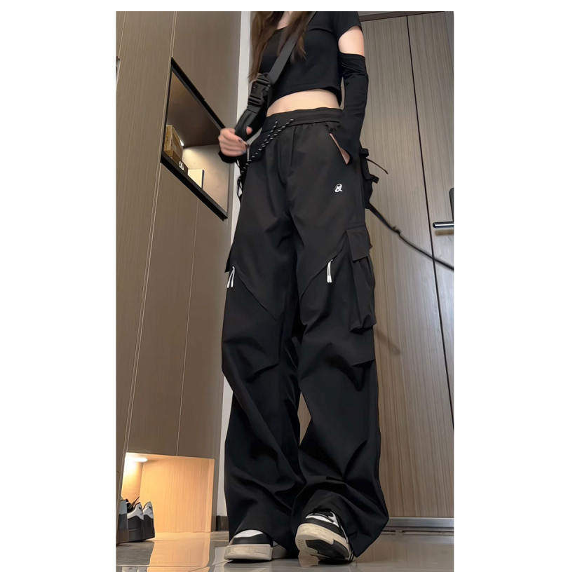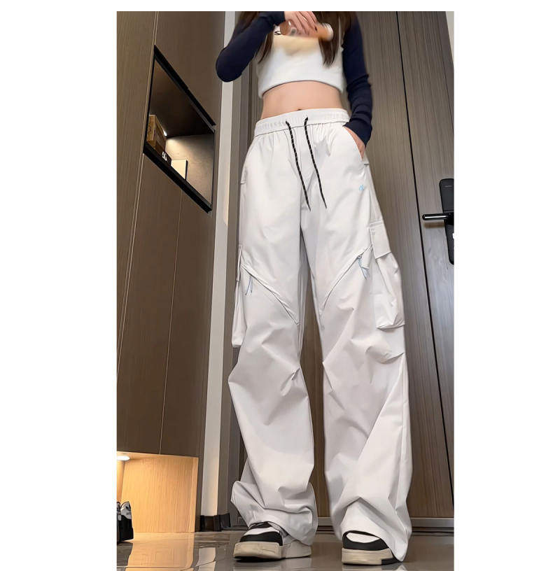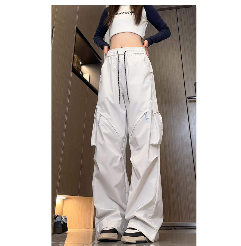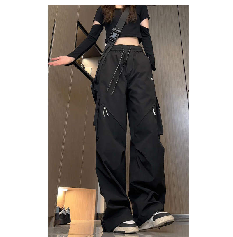 Spring and Autumn Cargo Pants, American-Style Functional Wide-Leg Pants for Women, Mid-High Waist, Loose, Slimming, Workwear Pants, Outdoor Casual Pants, Trendy