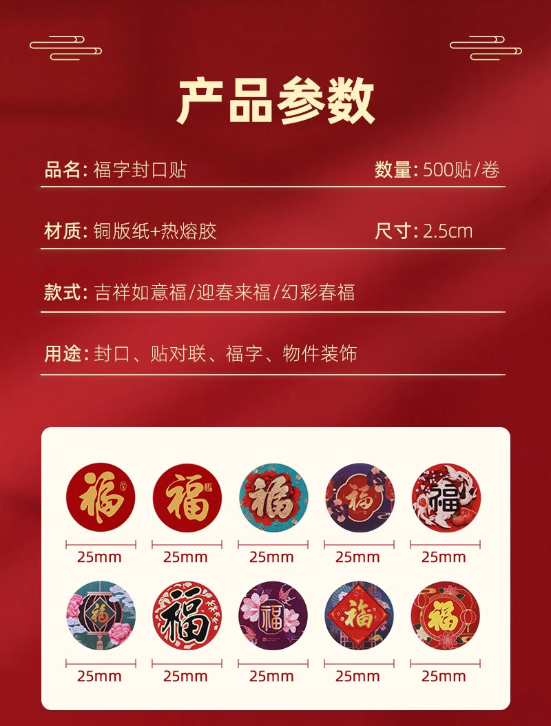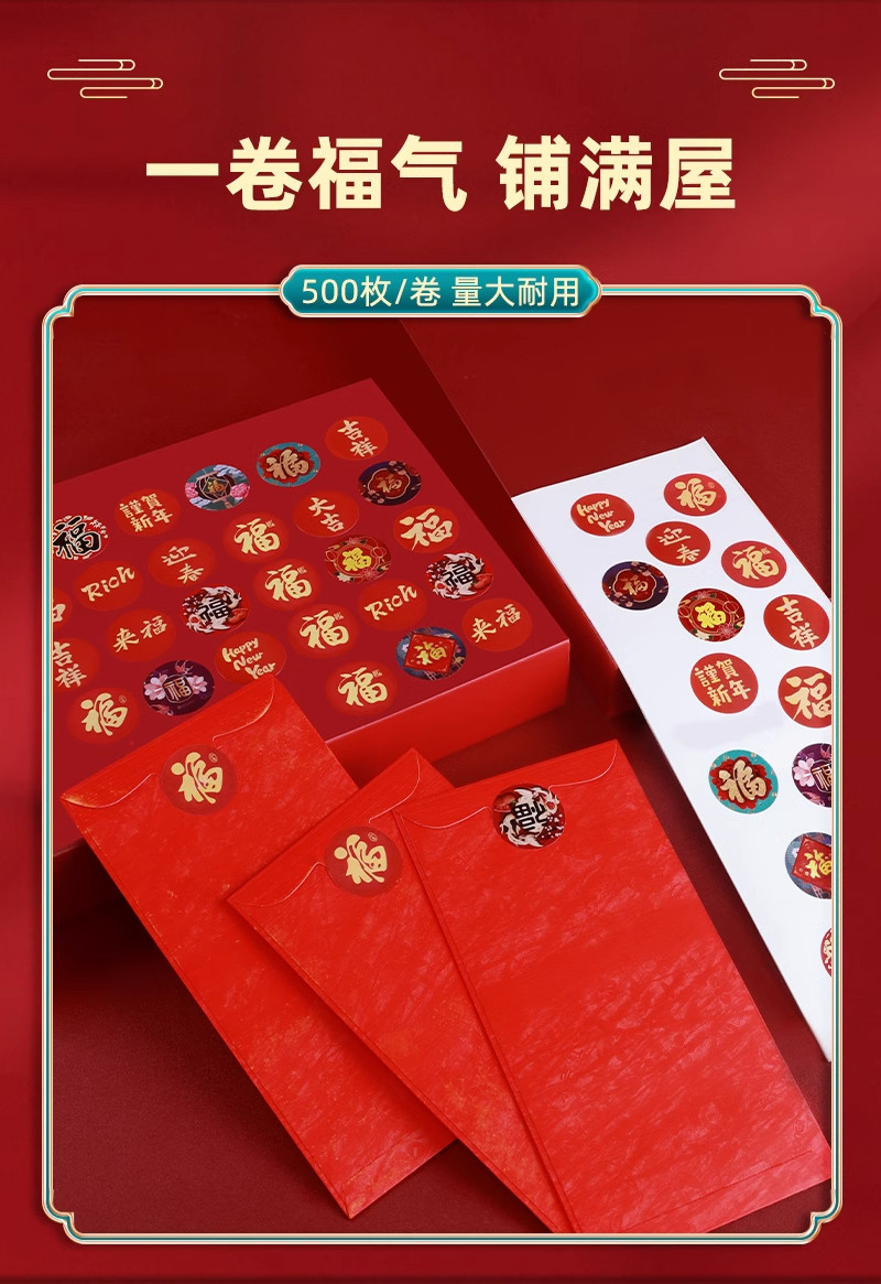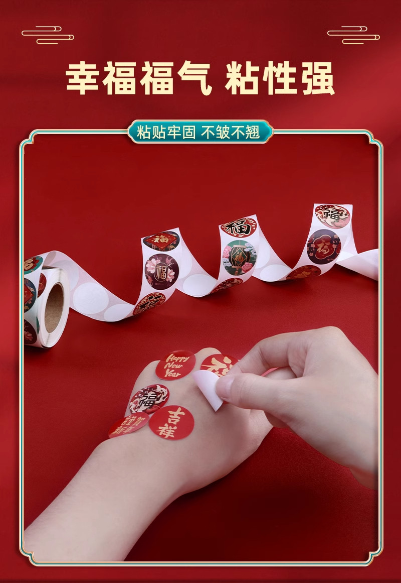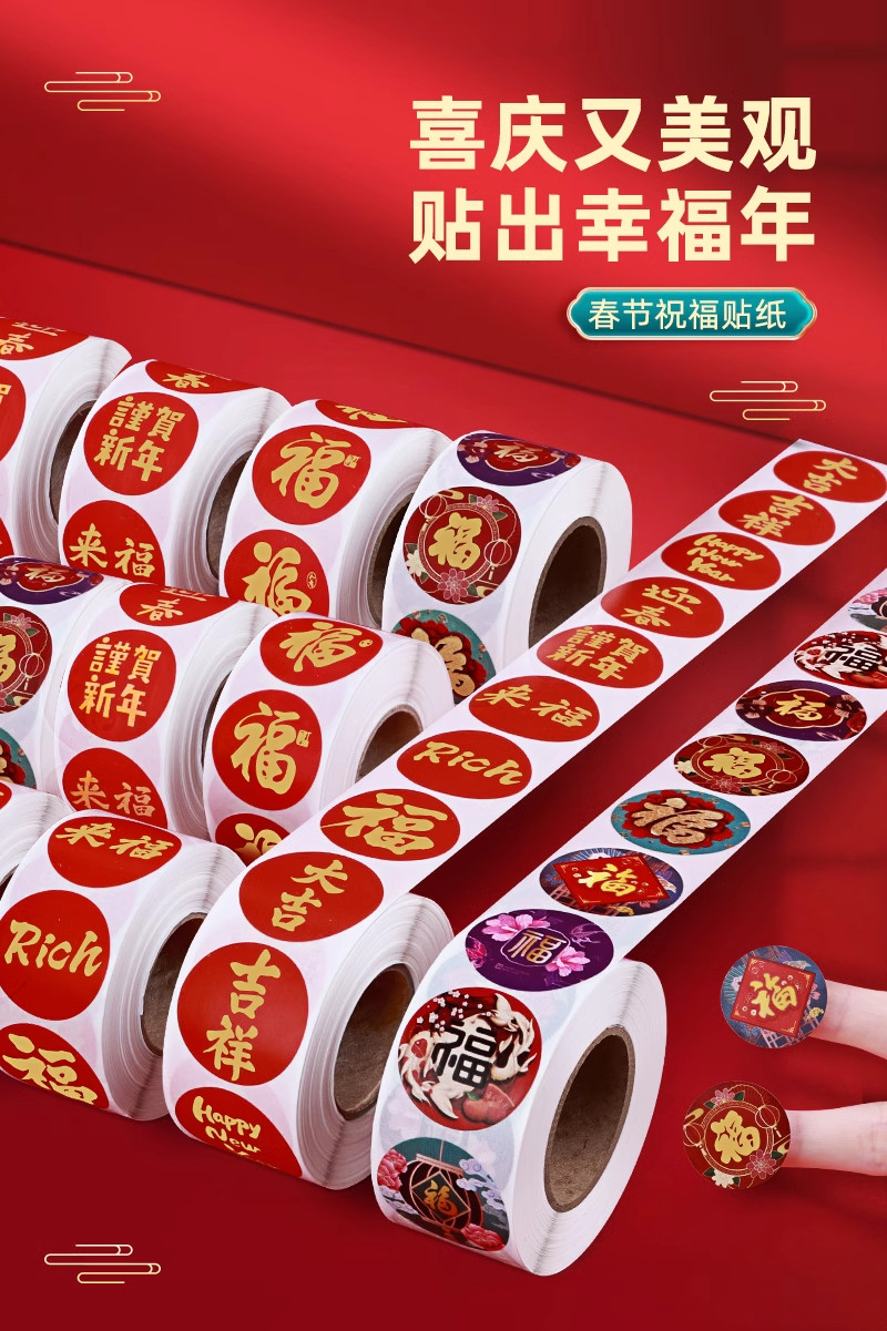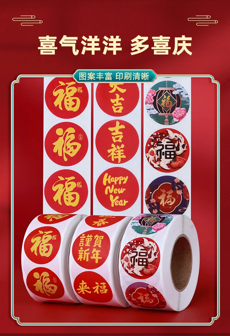 | Color Classification | New Year's Sealing Stickers - "Double Fortune" (Black Text) - 500 Stickers/Roll,New Year's Sealing Stickers - "Good Fortune & Great Profit" - 500 Stickers/Roll,New Year's Sealing Stickers - "Welcoming Spring and Good Fortune" - 500 Stickers/Roll |
