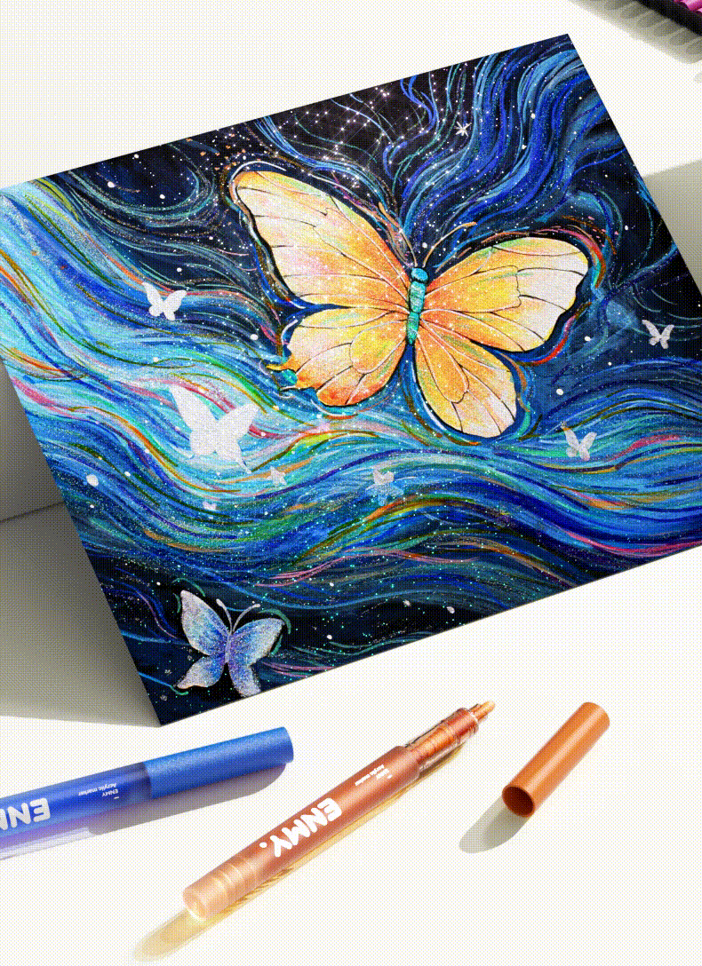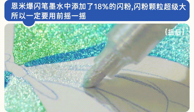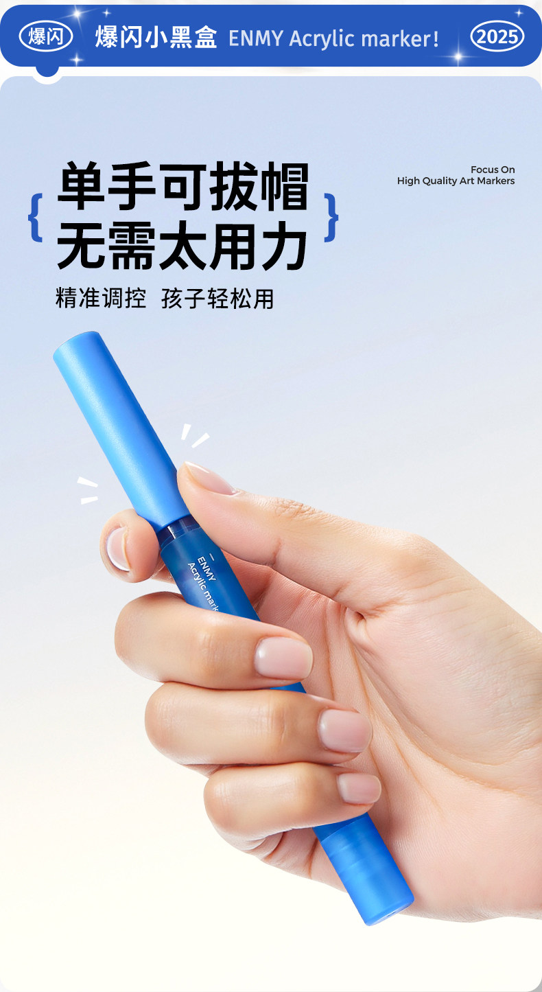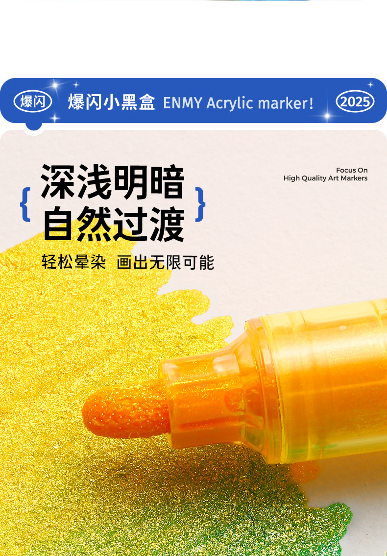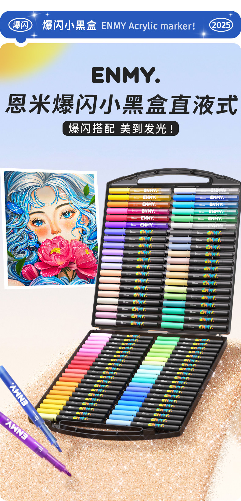 Enmi Little Black Box Flashing Acrylic Marker Pen, Liquid Type, Soft Tip, 12 Colors, Colorful Glitter, Special for Elementary School Art Students, Drawing Pen, Kindergarten Colors, Non-Toxic Watercolor Pen for Children, Enmy