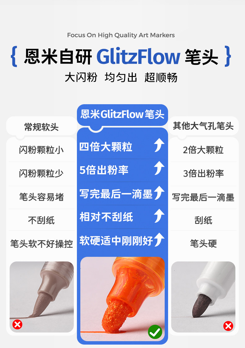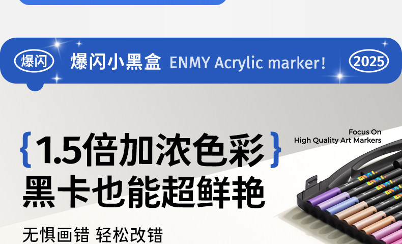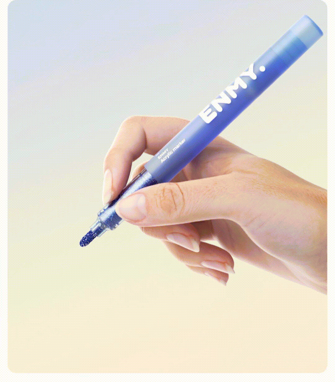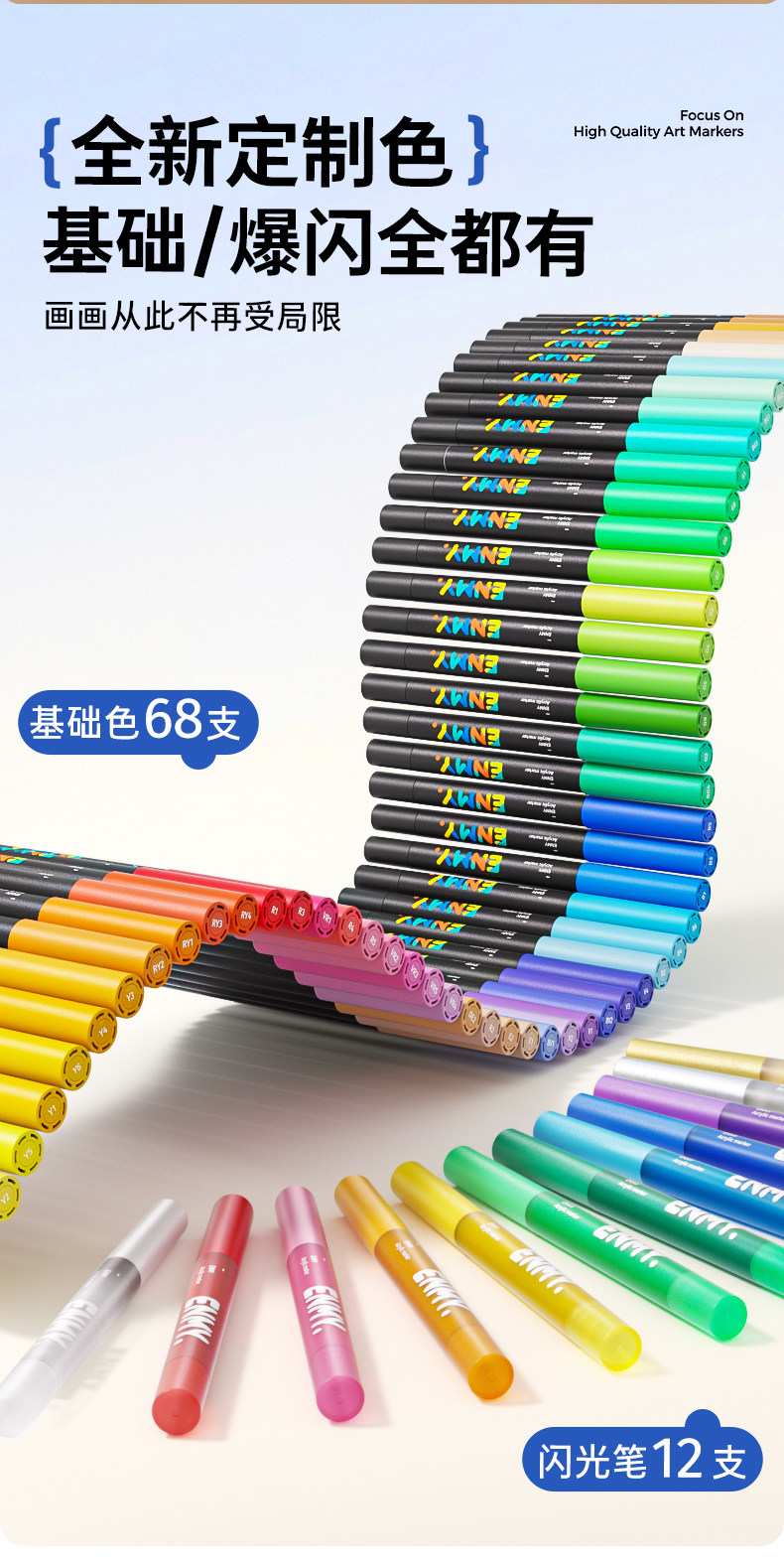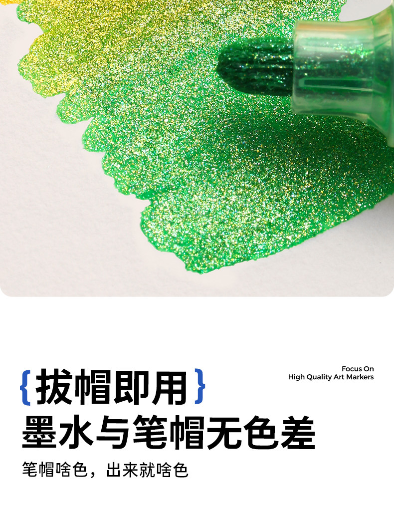 Enmi Little Black Box Flashing Acrylic Marker Pen, Liquid Type, Soft Tip, 12 Colors, Colorful Glitter, Special for Elementary School Art Students, Drawing Pen, Kindergarten Colors, Non-Toxic Watercolor Pen for Children, Enmy