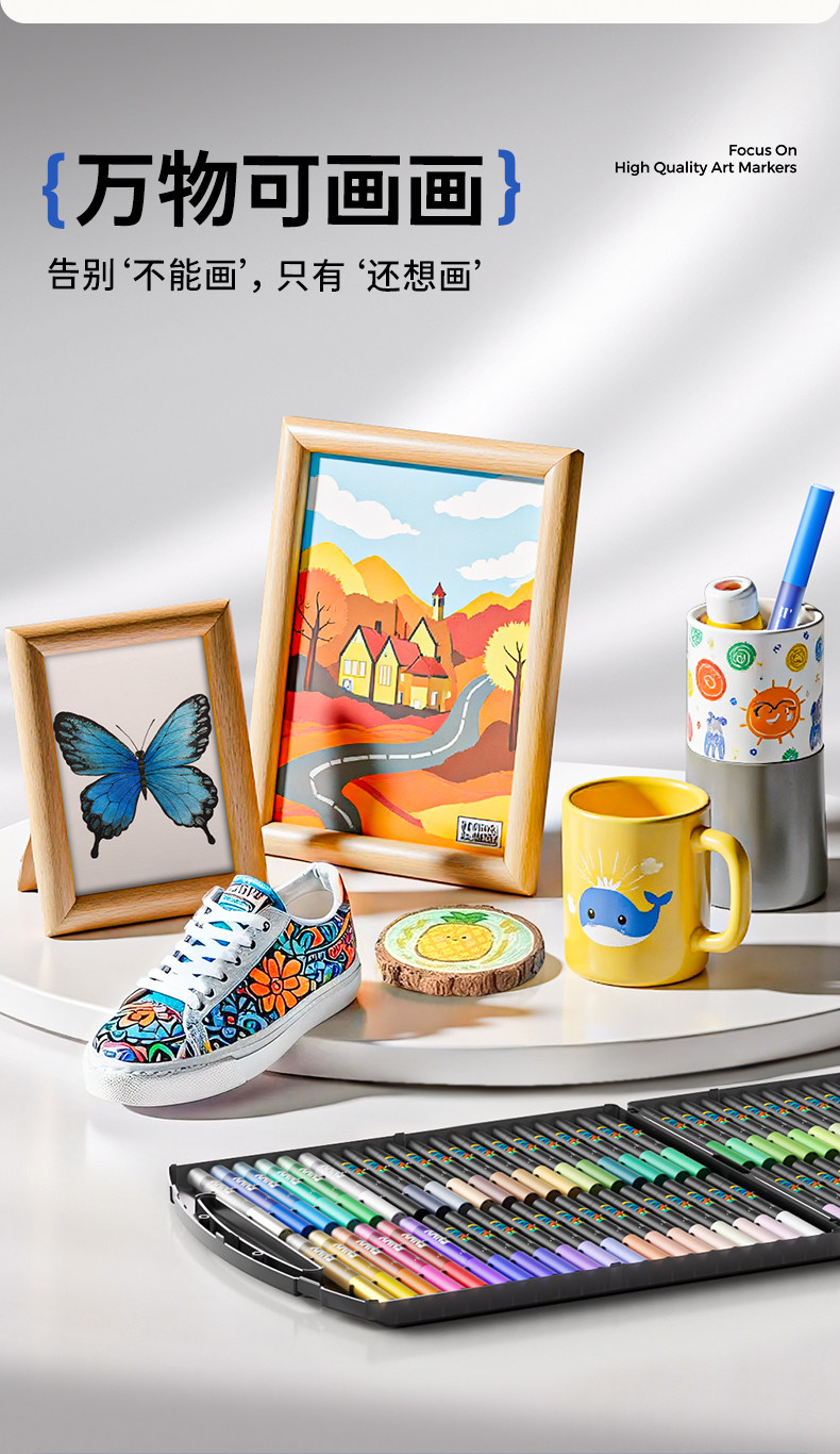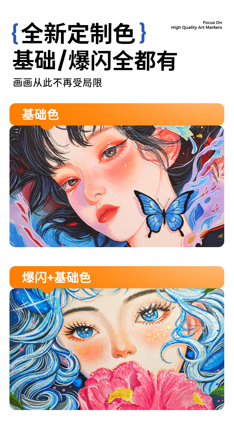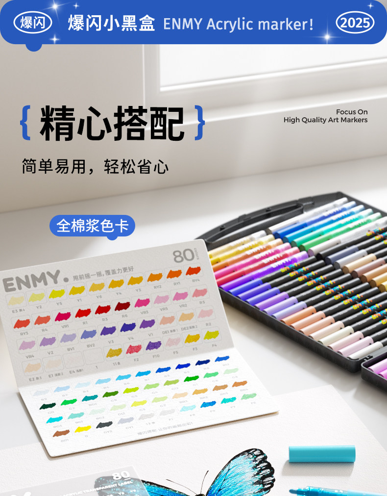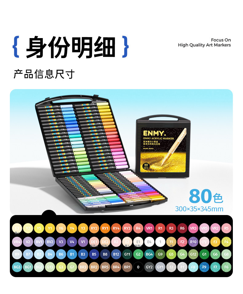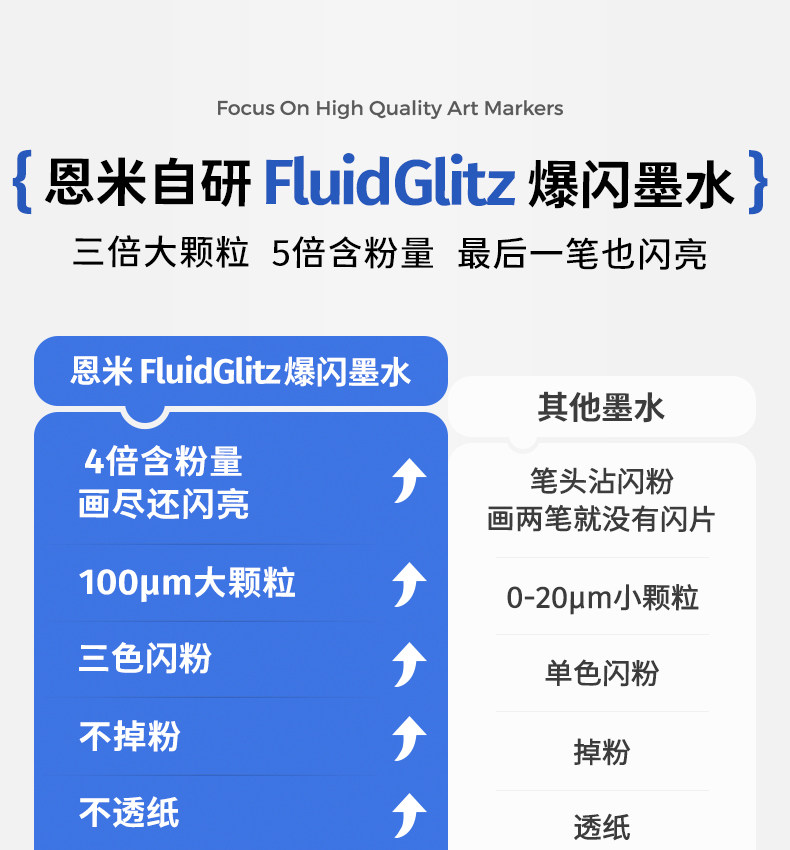 Enmi Little Black Box Flashing Acrylic Marker Pen, Liquid Type, Soft Tip, 12 Colors, Colorful Glitter, Special for Elementary School Art Students, Drawing Pen, Kindergarten Colors, Non-Toxic Watercolor Pen for Children, Enmy