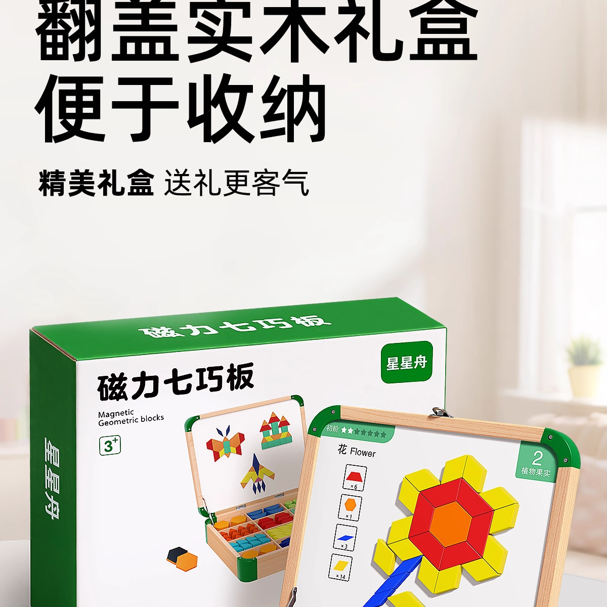 Tangram Magnetic Puzzle for Children Aged 3 to 6, Magnetic Educational Toy for Toddlers Aged 2 to 3, Baby Educational Wooden Christmas Gift