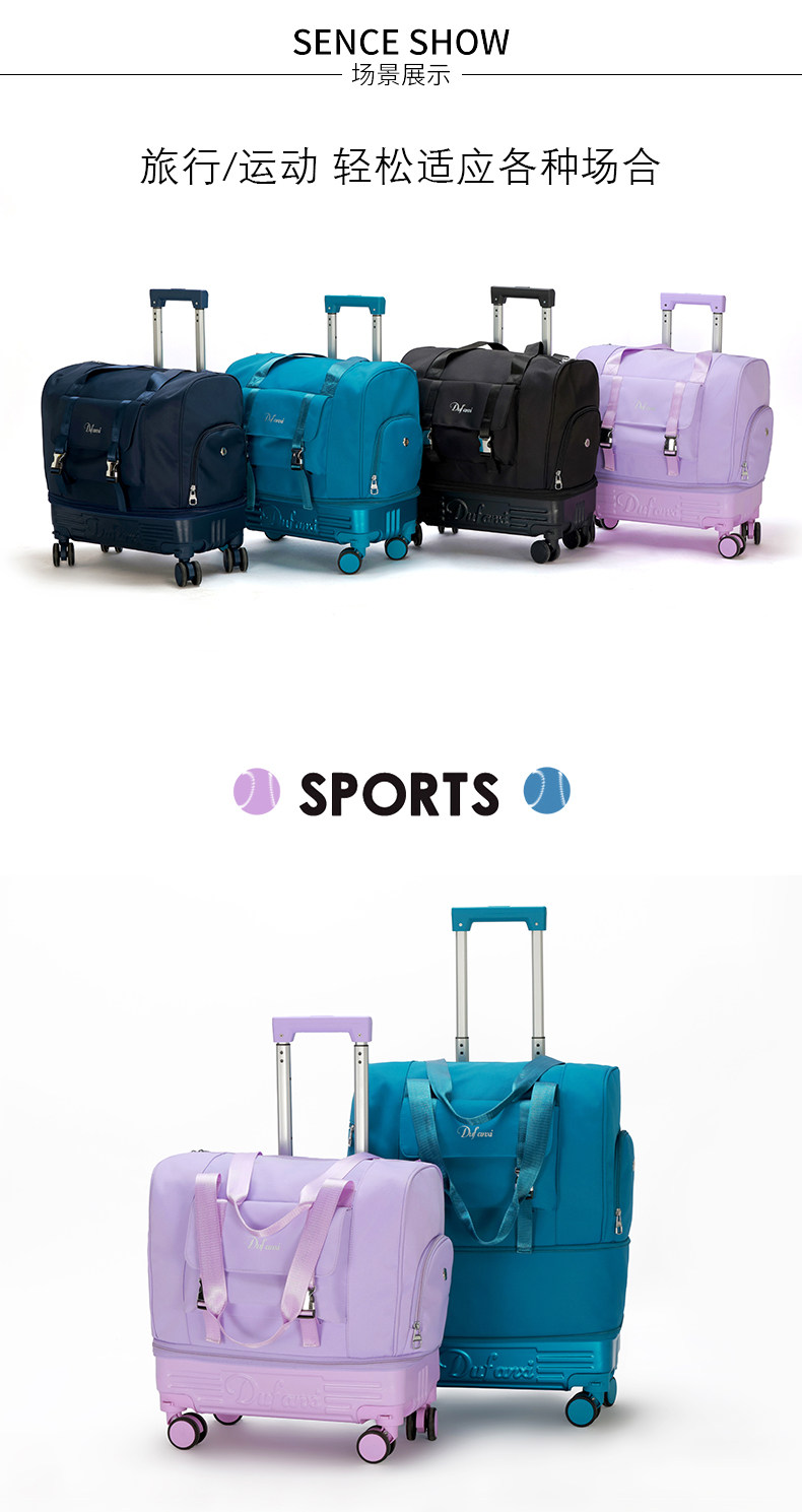 Short-Distance Travel Bag with Wheels, Lightweight Travel Bag with Dry and Wet Separation, Large-Capacity Storage Bag, Portable Trolley Bag, Luggage Bag