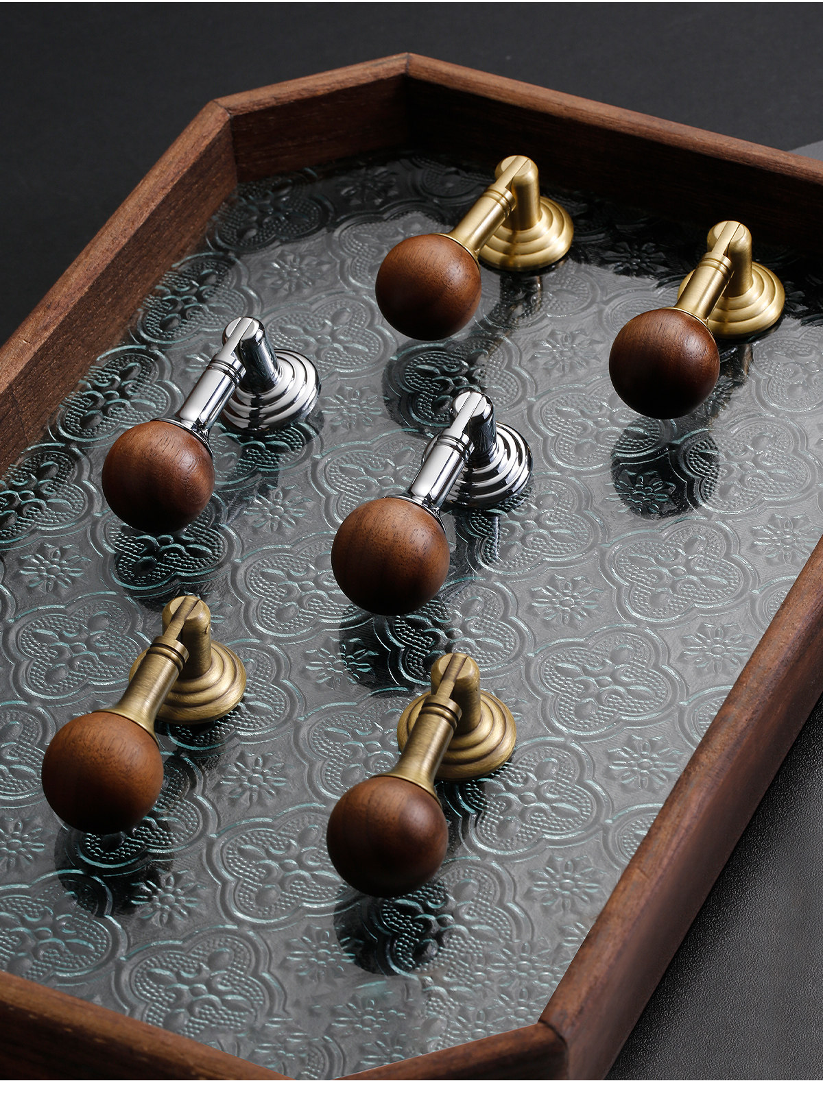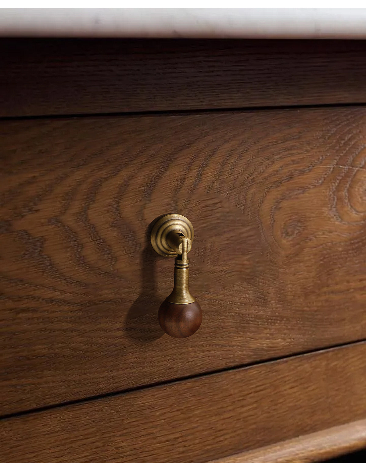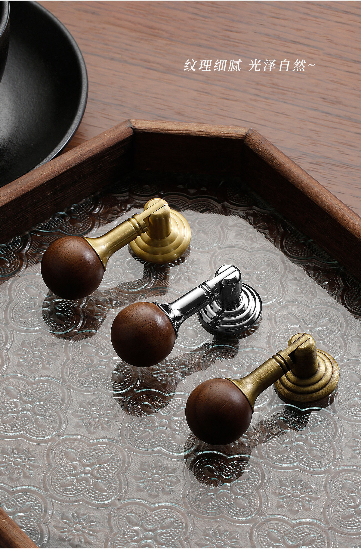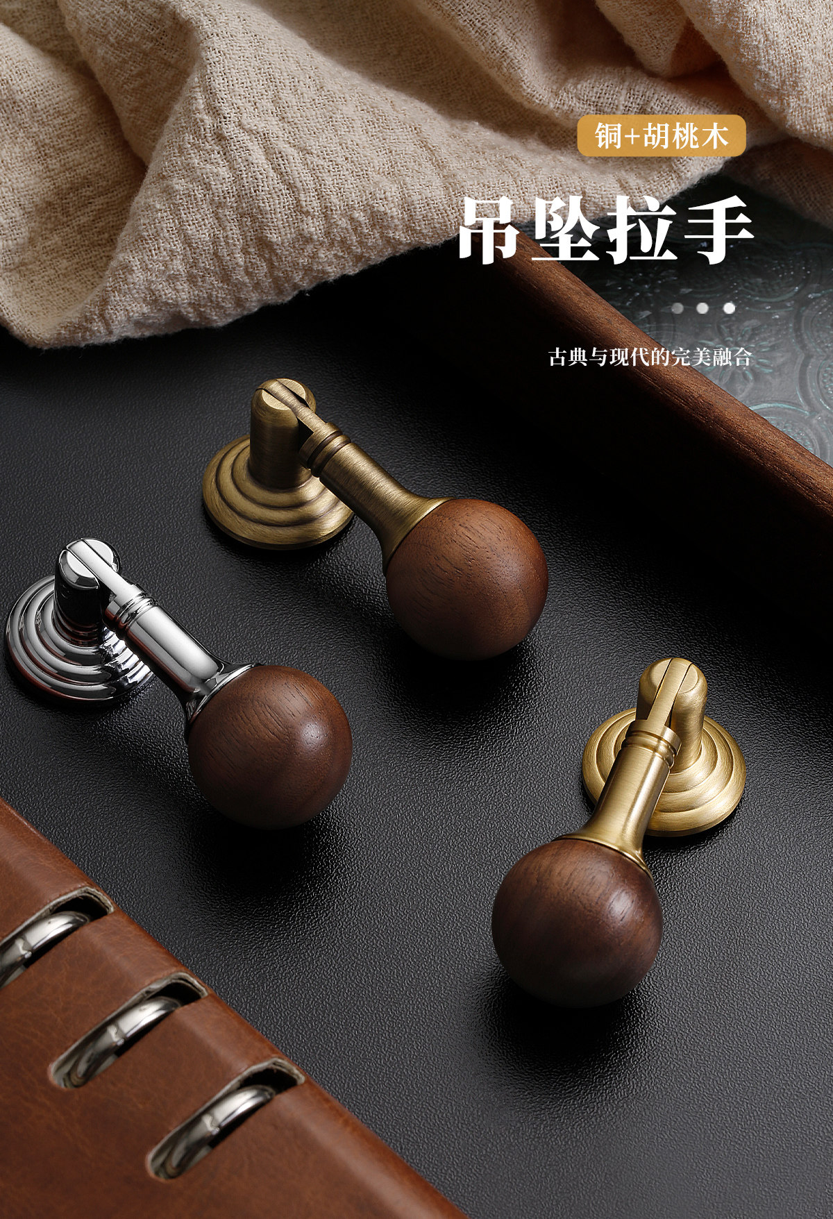 Medieval-Style Brass Handle Pendant, Vintage Walnut Solid Wood Single-Hole Wardrobe Cabinet Door, Light Luxury French-Style Drawer Handle