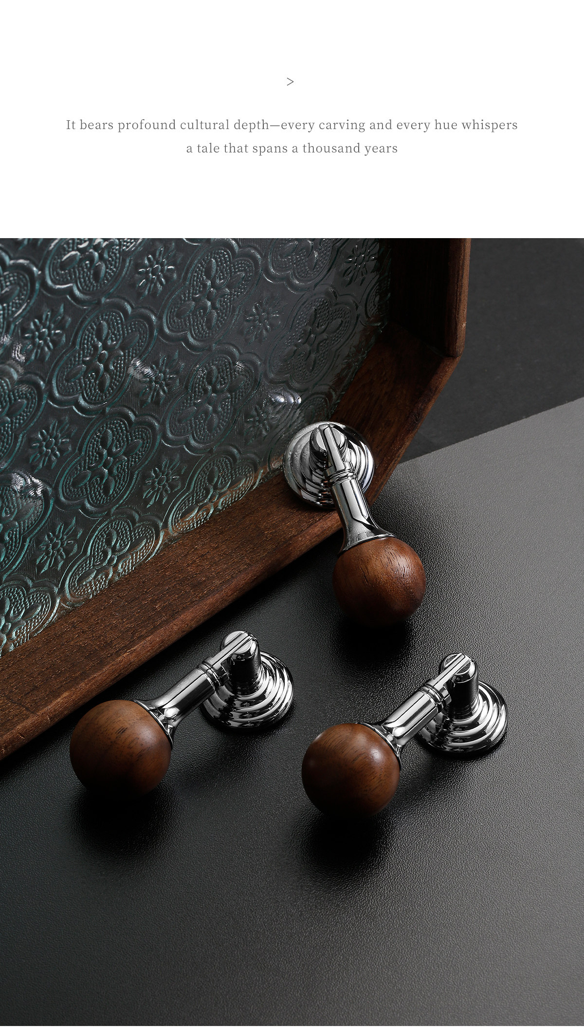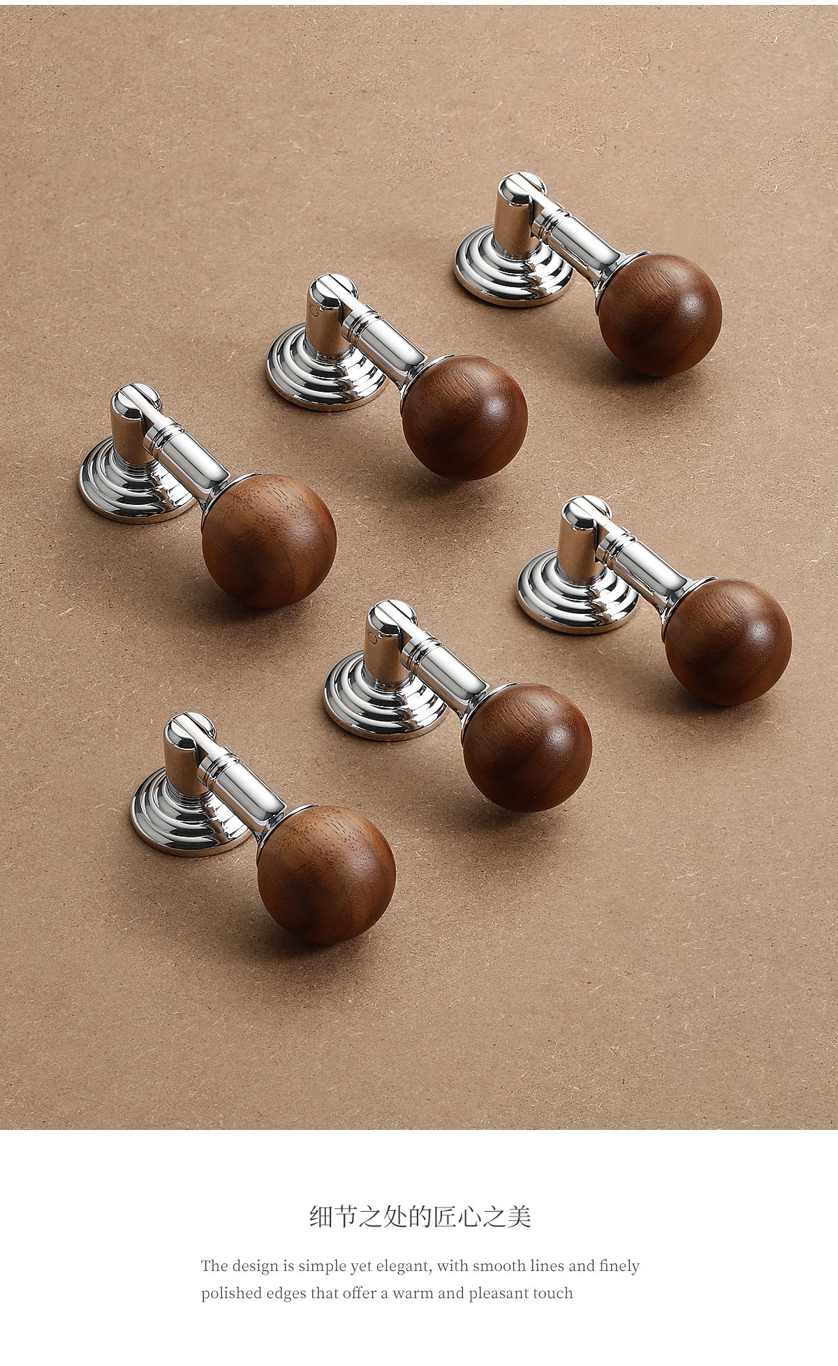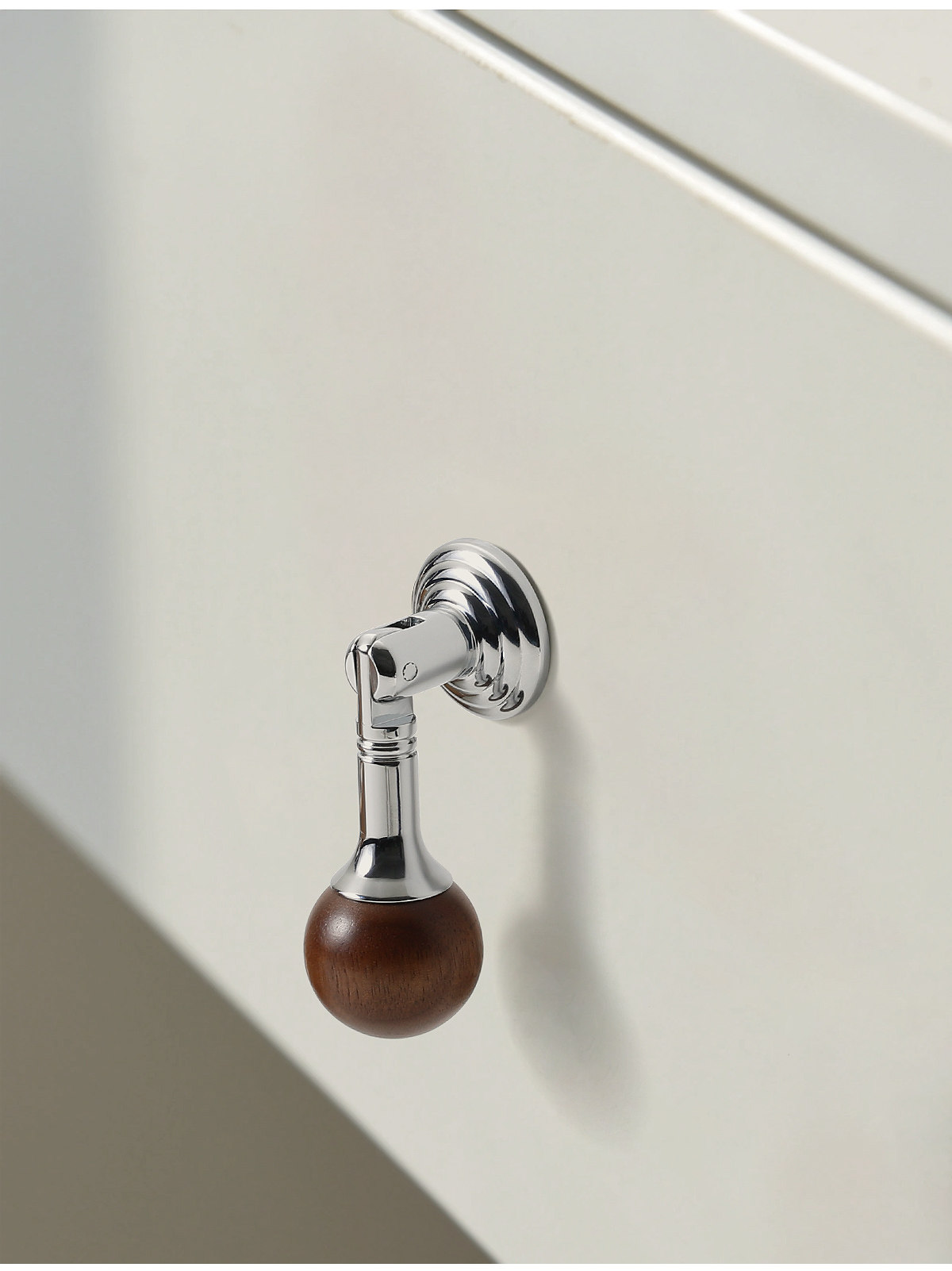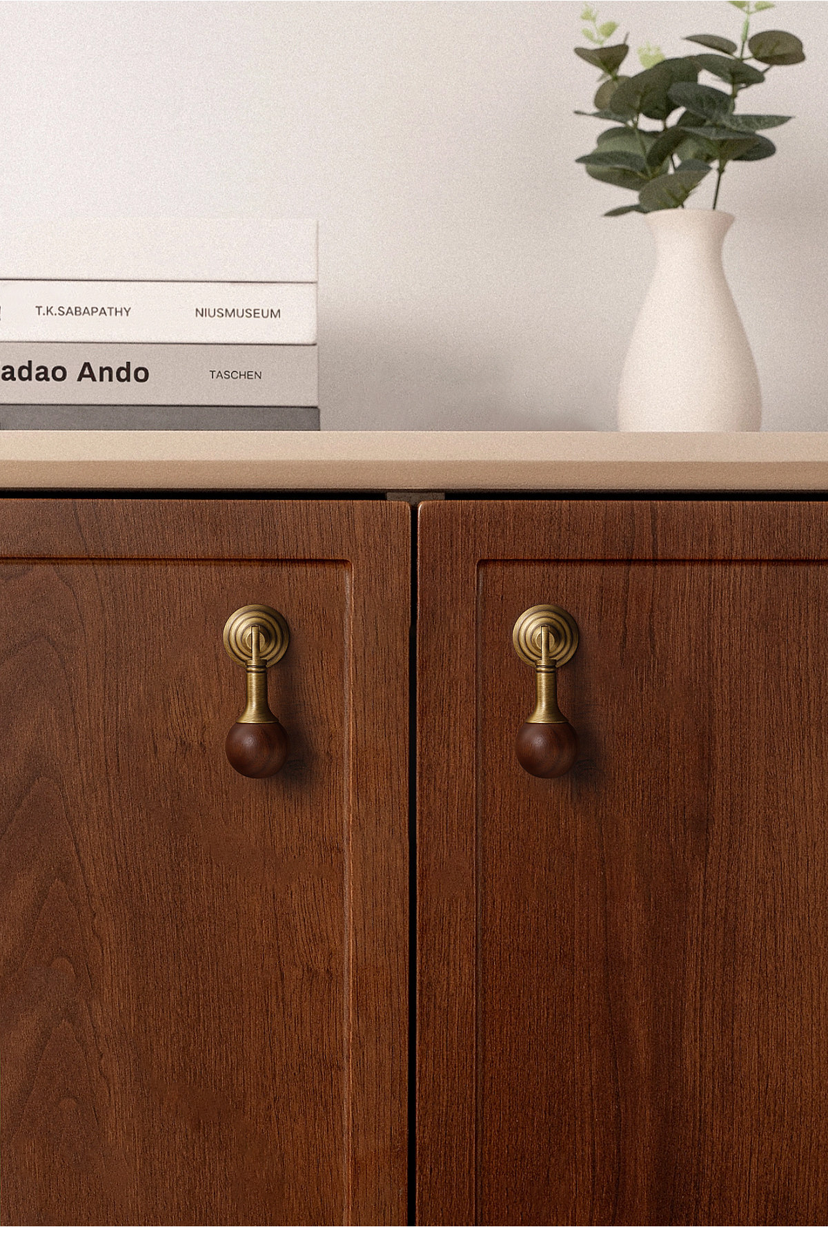 Medieval-Style Brass Handle Pendant, Vintage Walnut Solid Wood Single-Hole Wardrobe Cabinet Door, Light Luxury French-Style Drawer Handle