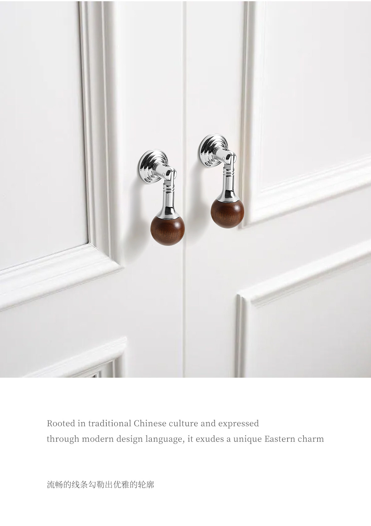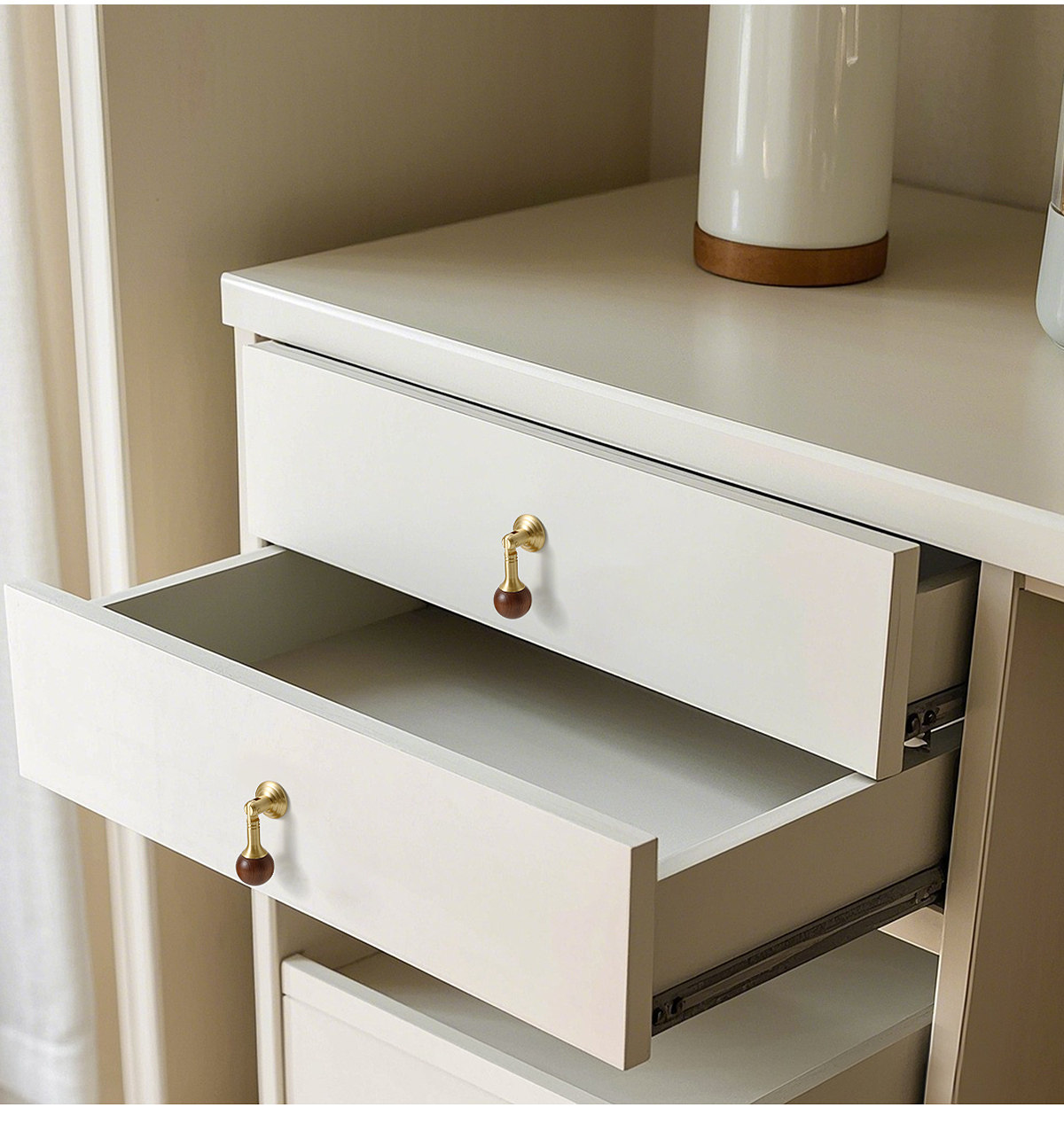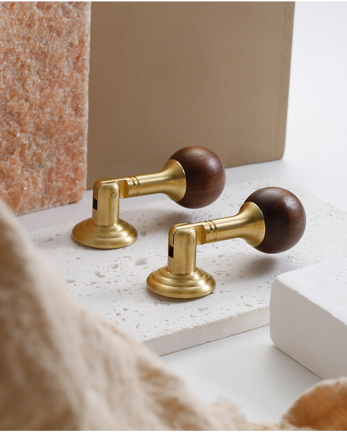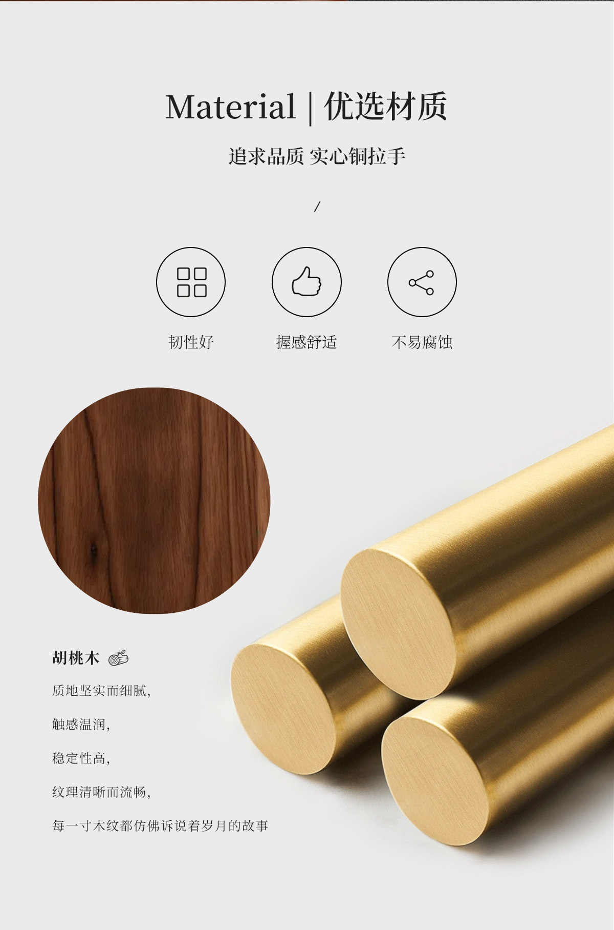 Medieval-Style Brass Handle Pendant, Vintage Walnut Solid Wood Single-Hole Wardrobe Cabinet Door, Light Luxury French-Style Drawer Handle